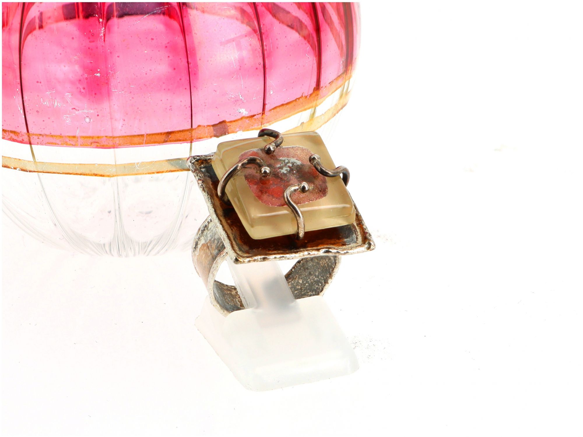 Lote 051 - Anel ajustável elaborado em Prata 925 com pedra decorativa. Contraste: Cabeça de Águia virada à esquerda 925 (1985-2020 - ao abrigo do Decreto Lei 120/2017, artigo 3.º, alínea y). Tam.: 14. Peso Total: 7.52g.