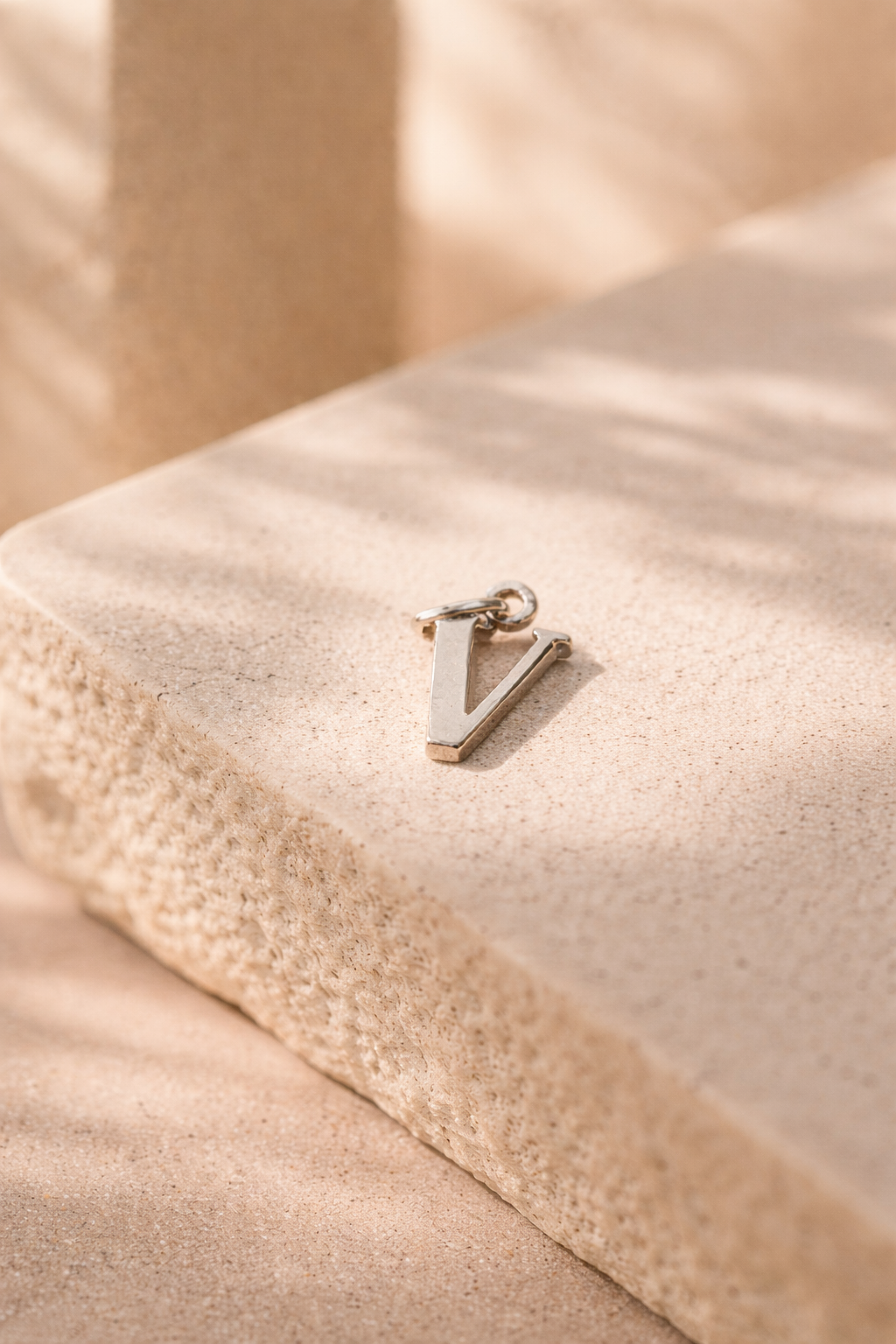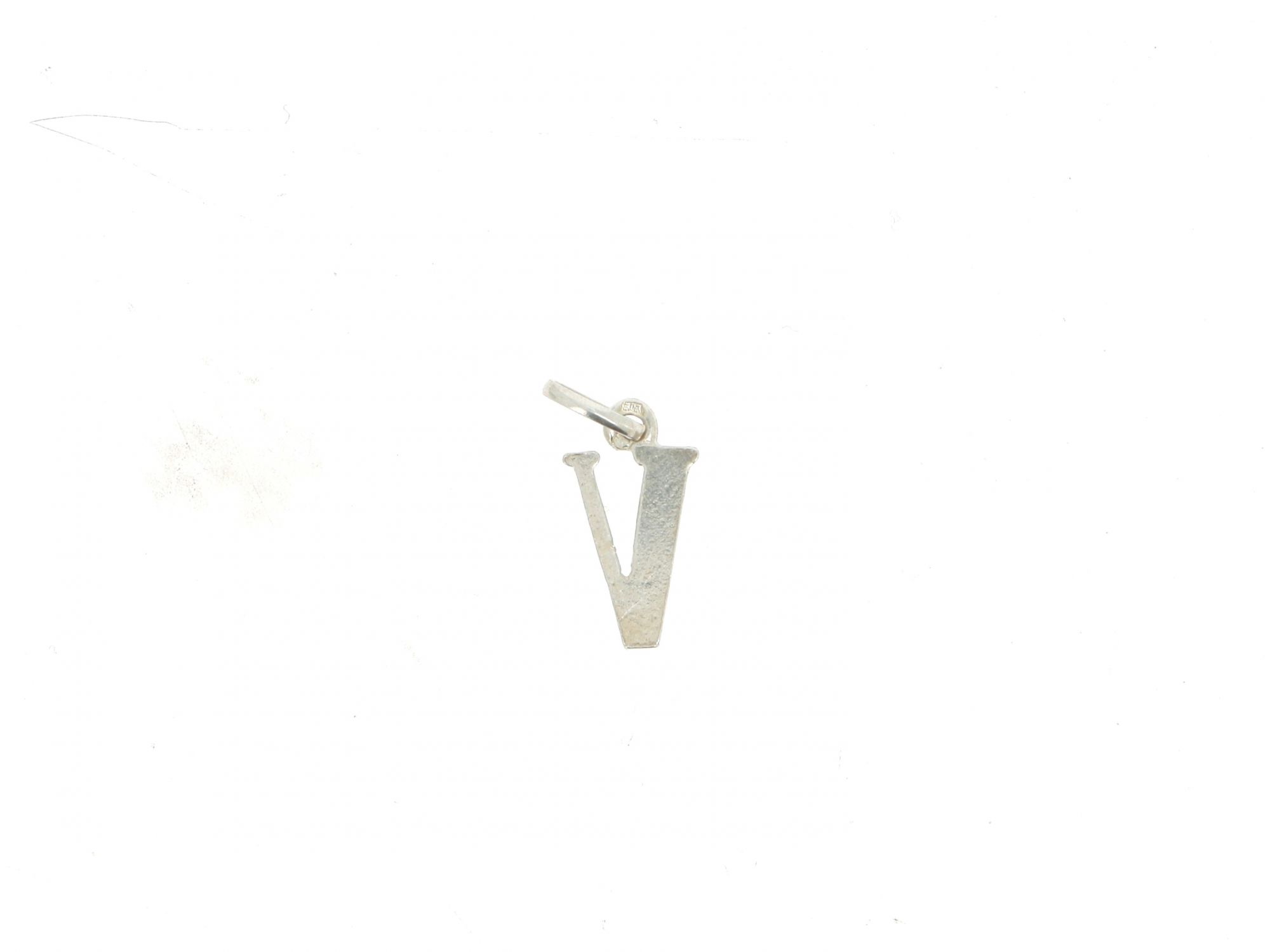 Lote 012 - Pendente elaborado em prata 835 no formato da letra "V". Estado de Conservação: Muito Bom. Contraste: Cabeça de Águia virada à direita 835 (1985-2020 - ao abrigo do Decreto Lei 120/2017, artigo 3.º, alínea y). Medidas (CxL): 1,8*0,9cm. Peso Total: 0,54g.