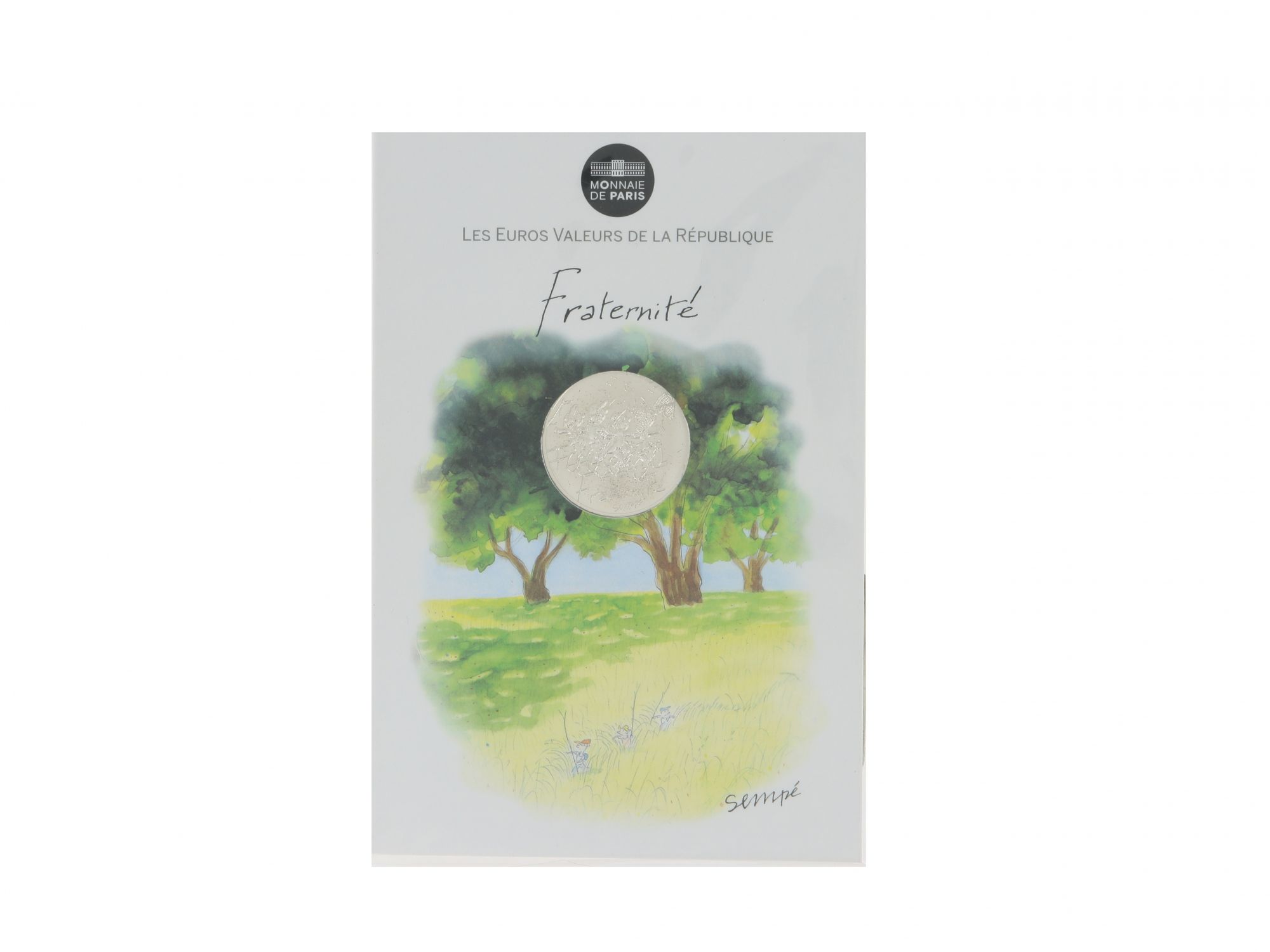 Lote 049 - Moeda de 10€ em Prata da Coleção “LES EUROS VALEURS de la RÉPUBLIQUE”, emitida pela Monnaie de Paris, com design de Jean-Jacques Sempé, elaborado em PRATA 925. O tema da Moeda é FRATERNITÉ e ilustração da embalagem representa quatro amigos a andar de bicicleta, sobre uma paisagem de um belo jardim. Cunhada pela Casa da Moeda Francesa. Estado de Conservação: Muito Bom. Contraste: Marca 925. (PRATA - ao abrigo do Decreto Lei 120/2017, artigo 3.º, alínea x). Medidas (CxL): 19,3*11cm. Peso Total: 63,65g. Peso em Prata: 17.01gr.