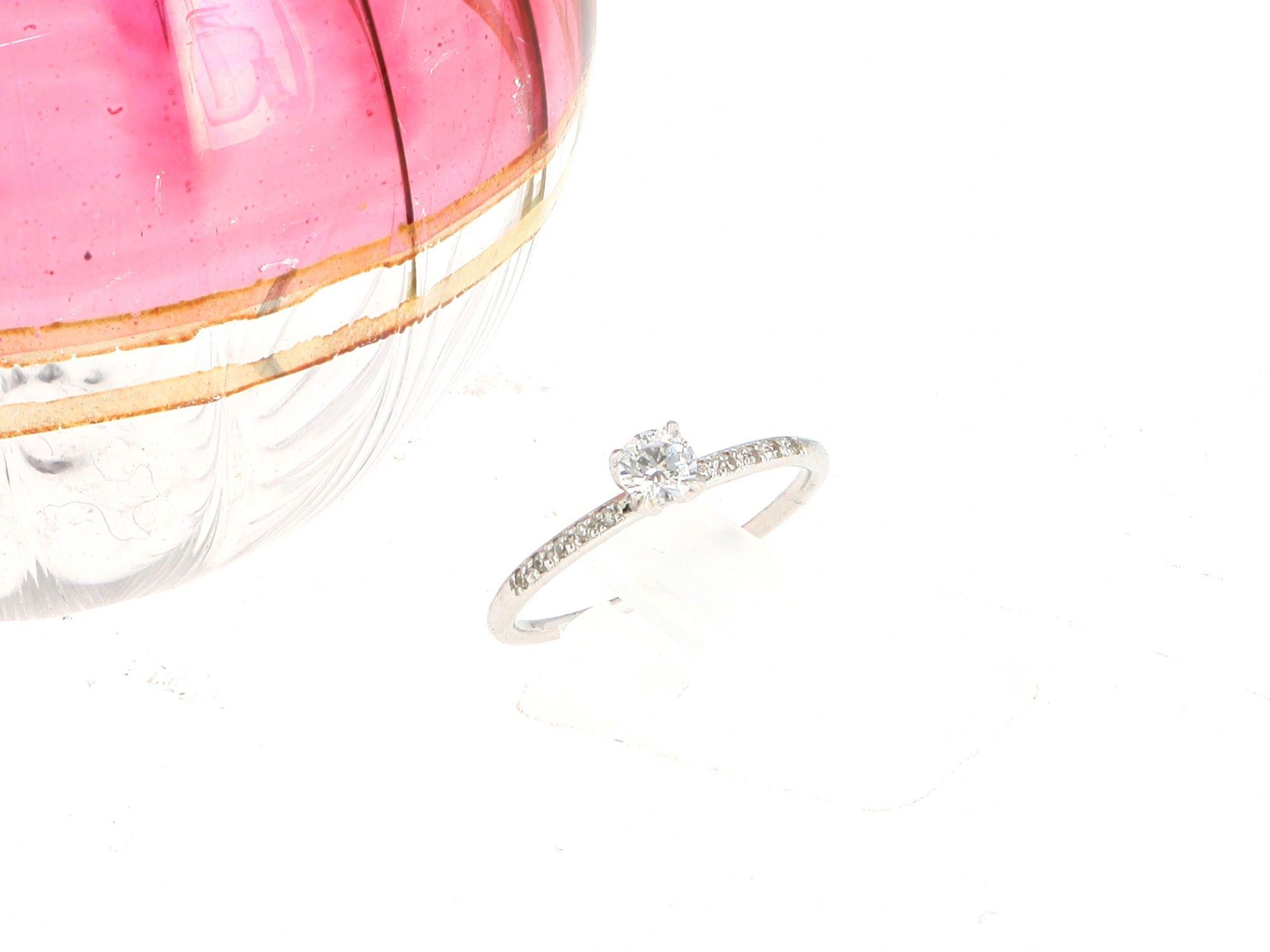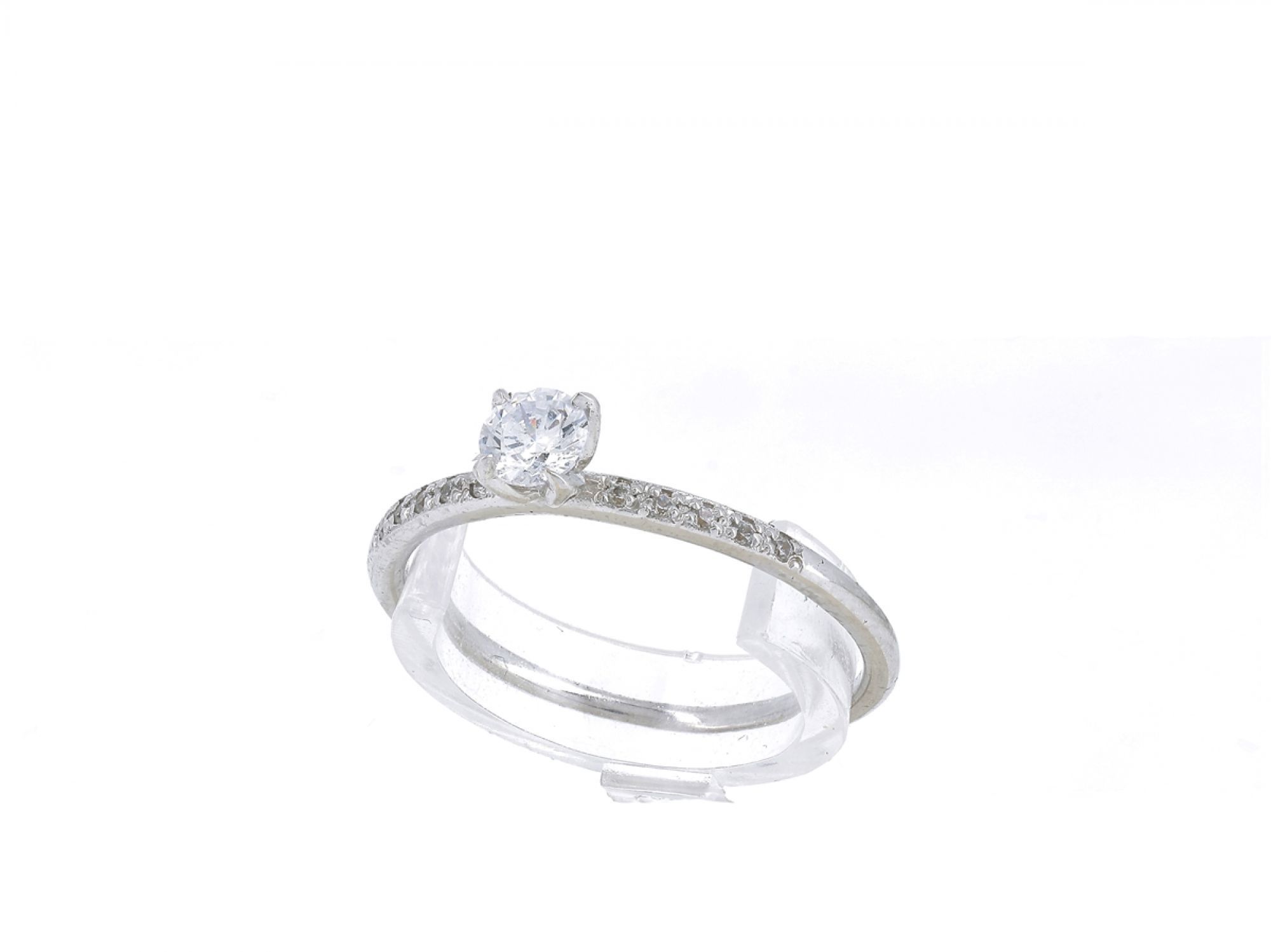 Lote 002 - Anel elaborado em OURO 19,2 Quilates cravejado com pedras incolores. Estado de Conservação: Excelente. Contraste: Cabeça de Carneiro virada à esquerda 800 (pós 2021 - ao abrigo do Decreto Lei 120/2017, artigo 3.º, alínea y). Tam.: 14.5. Medidas (LxA): 0,1x0,4x2,36cm. Peso Total: 1,74g.