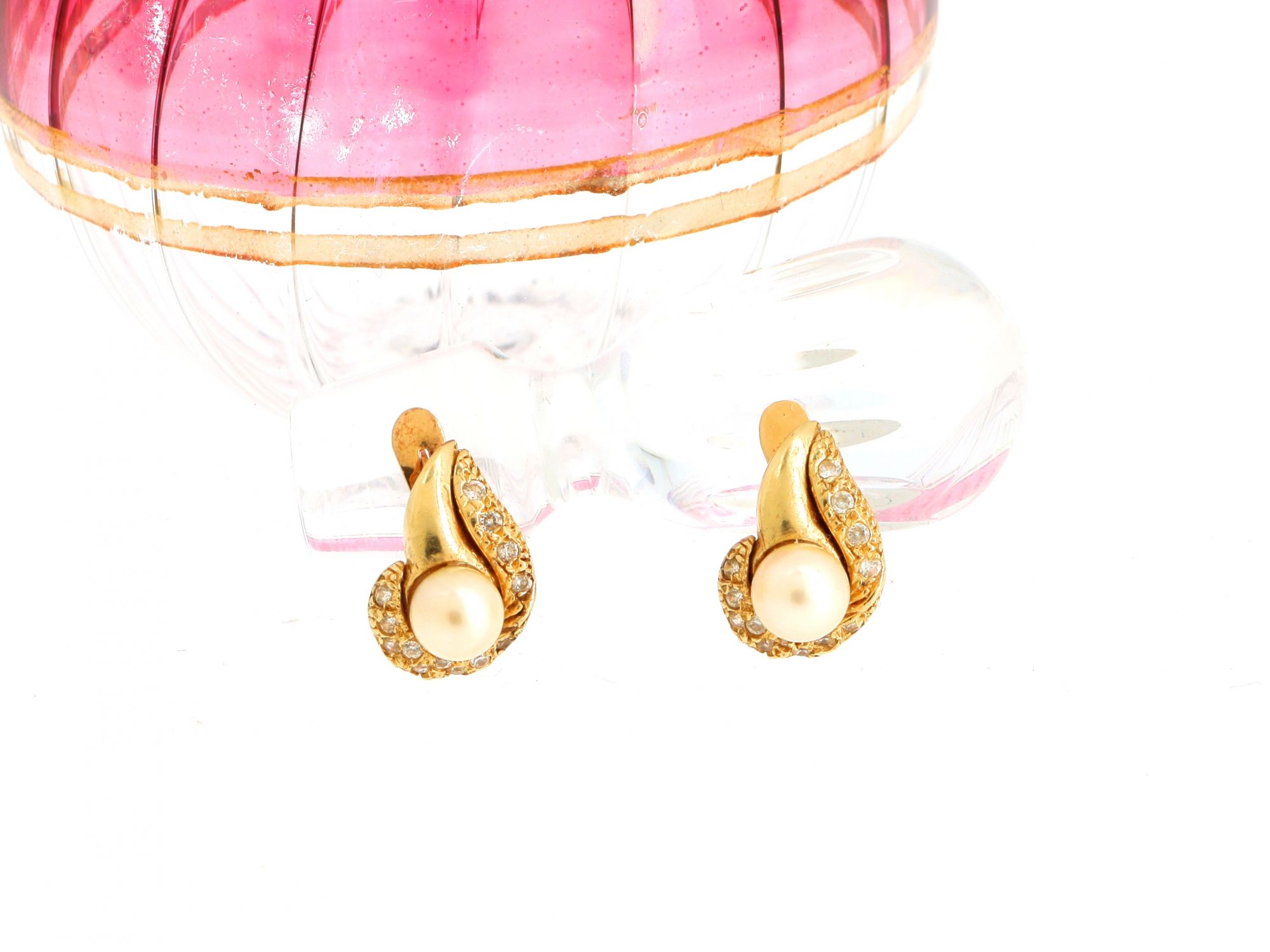 Lote 028 - Brincos elaborados em OURO de 19,2 quilates, cravejados com perolas e zircónias em talhe redondo brilhante Estado de Conservação: Muito Bom. Contraste: sem marcas de contraste, com mais de 50 anos ao abrigo do Decreto Lei 120/2017, artigo 2.º, alínea c). Medidas (CxL): 1,5x1cmcm. Peso Total: 6,45g.