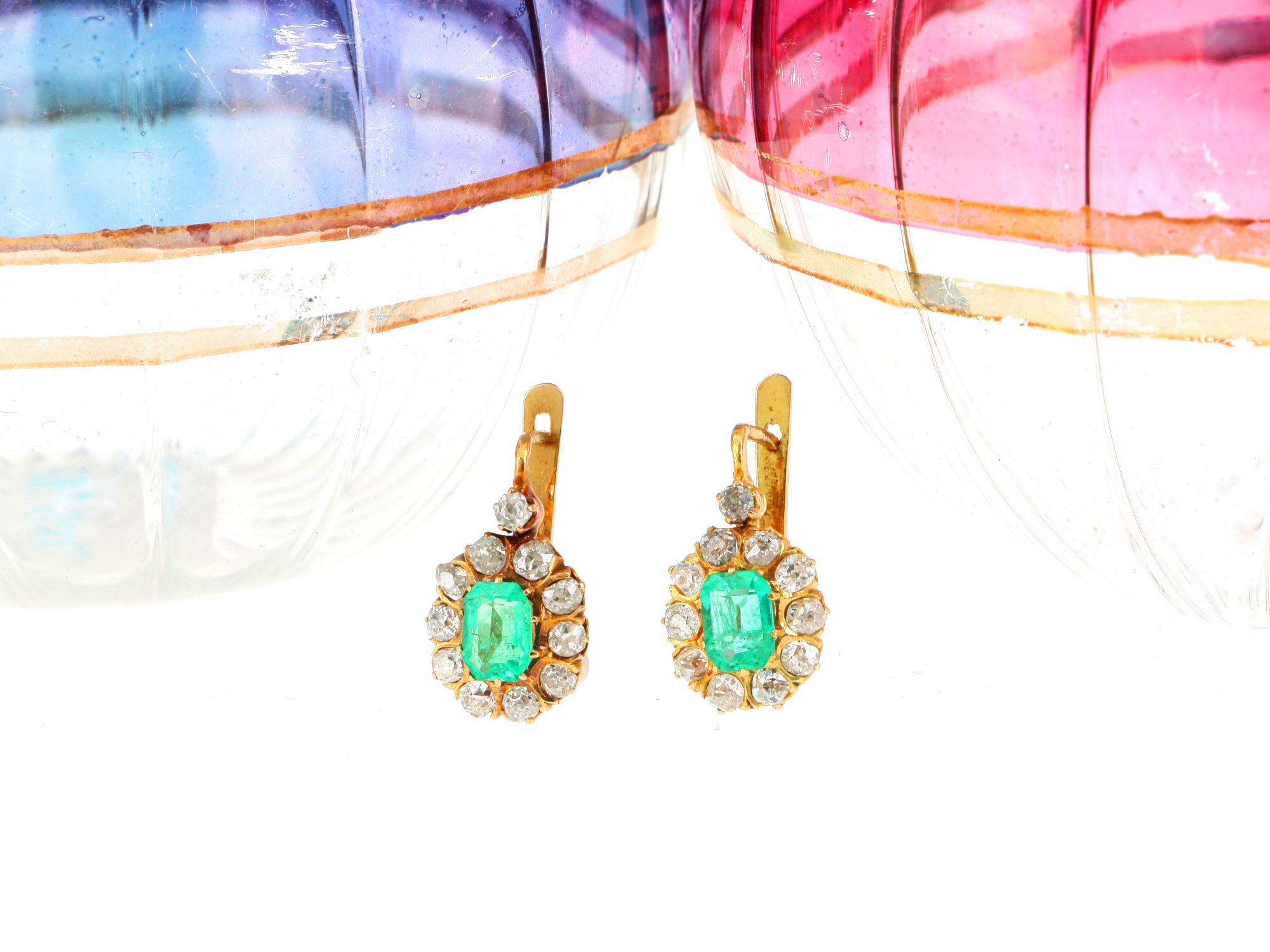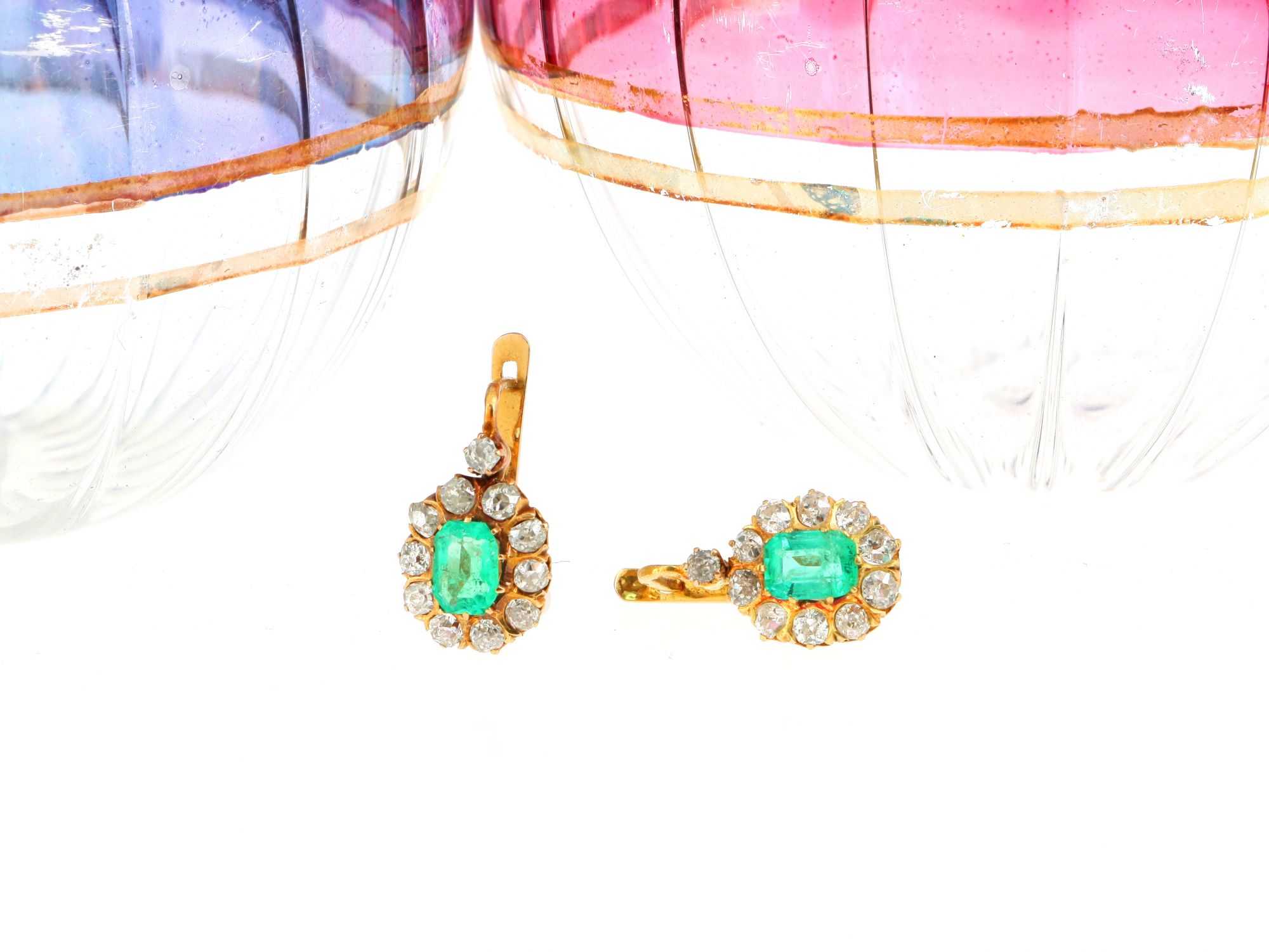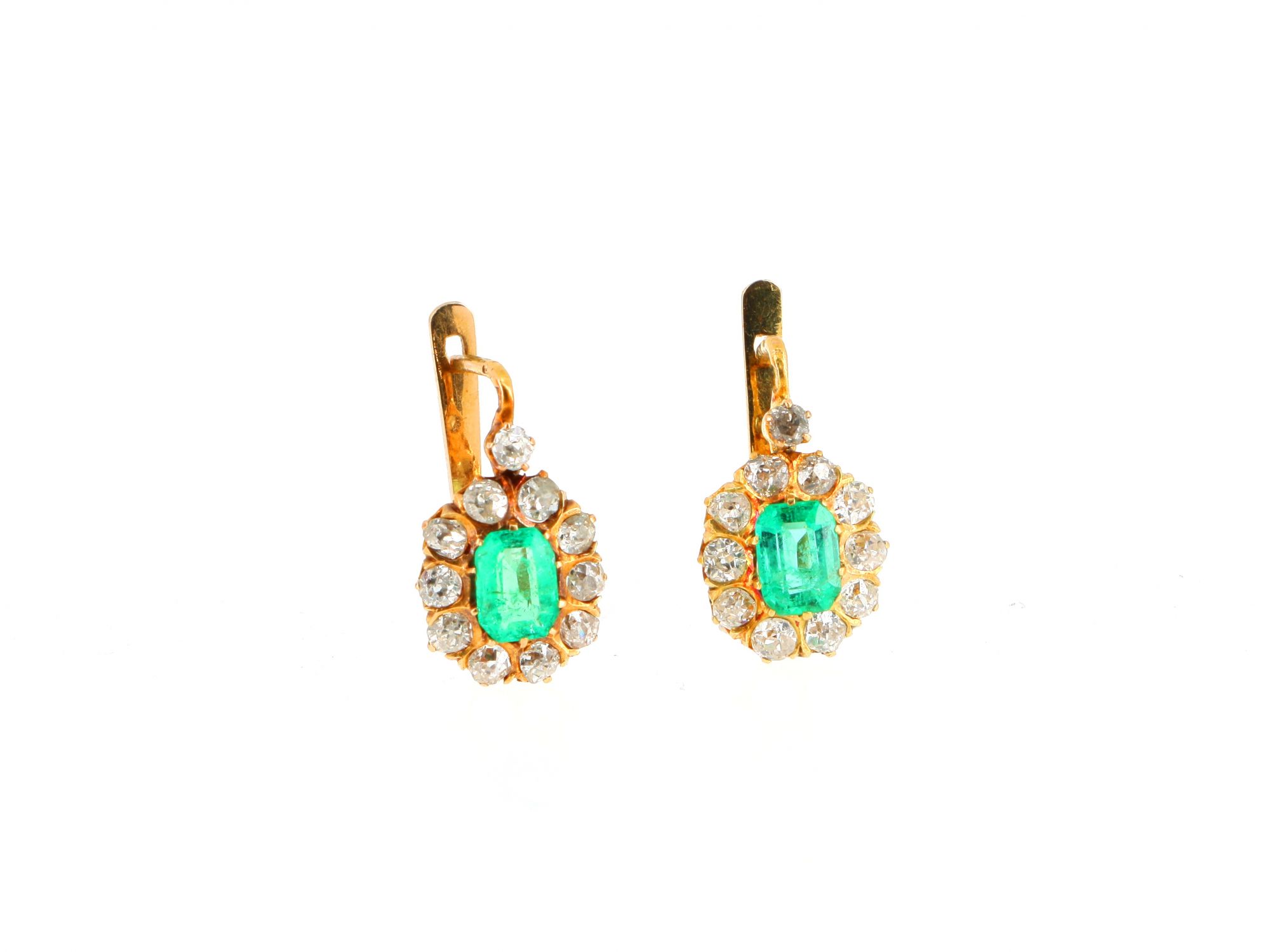 Brincos em OURO 19.2K - 2 Esmeraldas, 22 Diamantes
