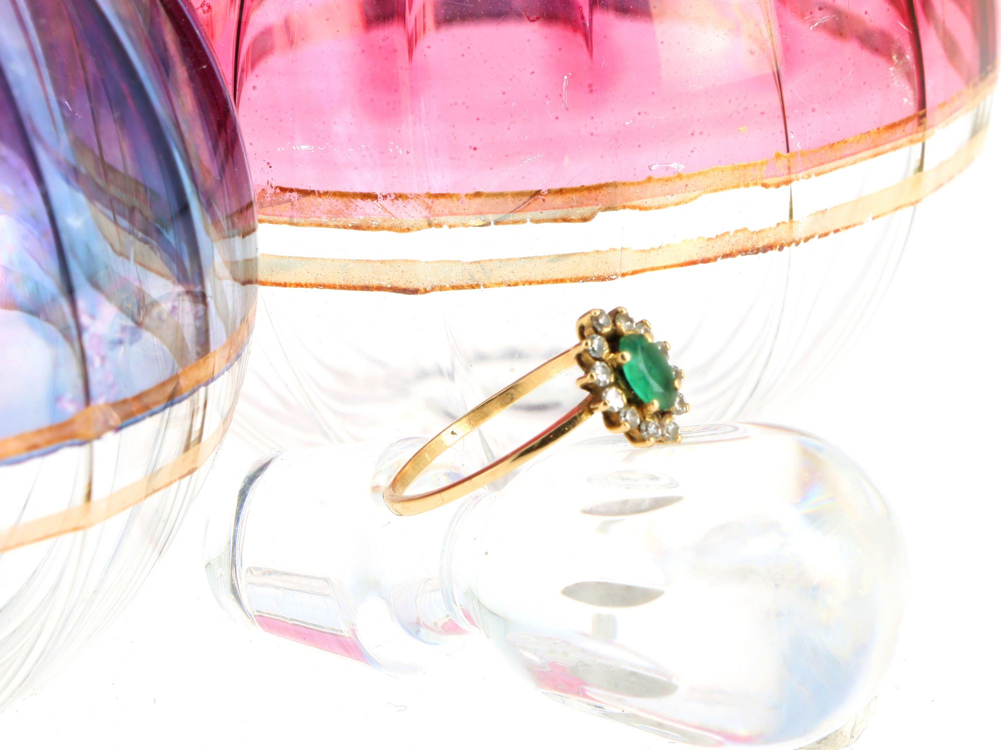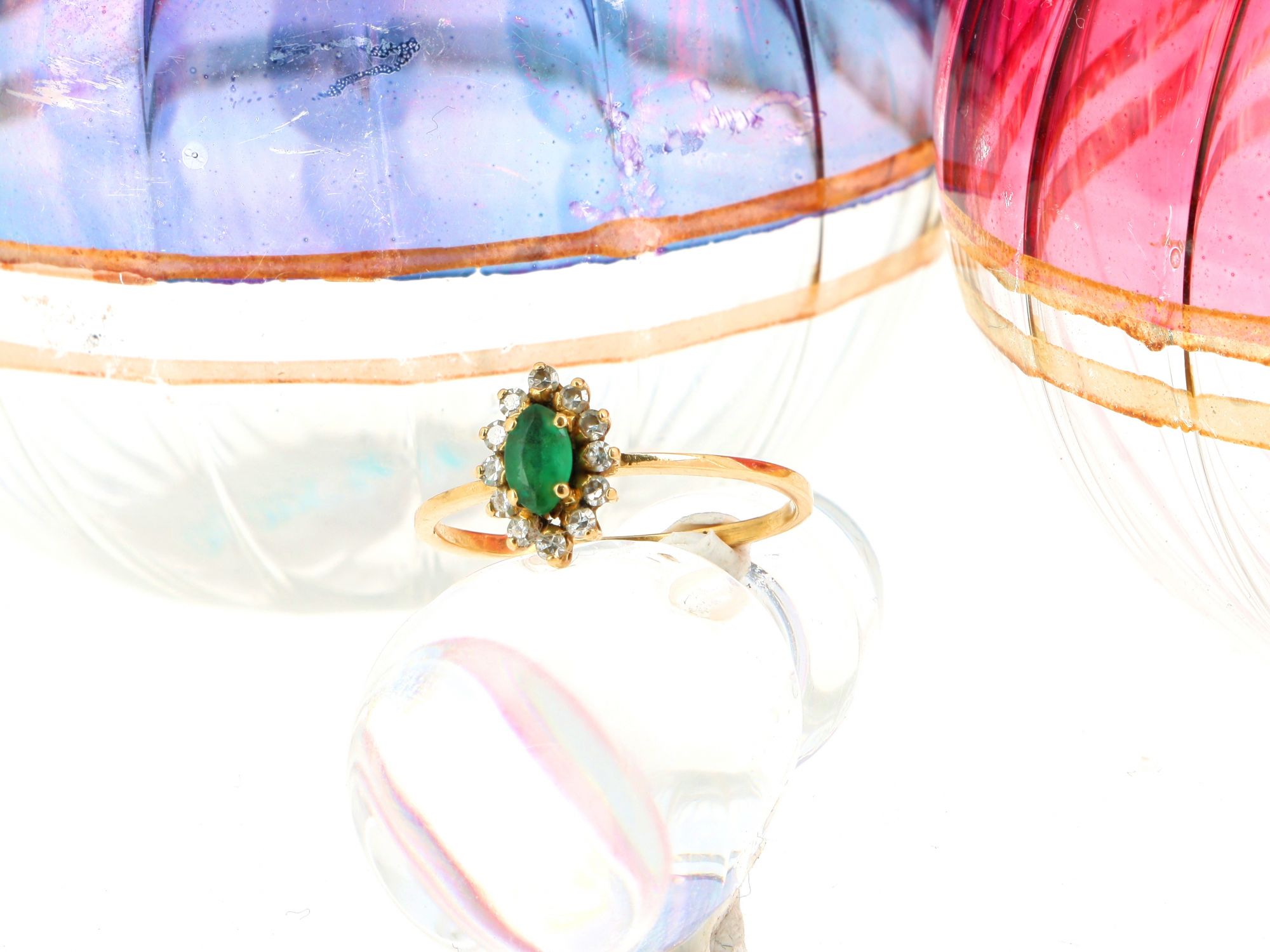 Anel em OURO 19.2K - 1 Esmeralda, 12 Diamantes