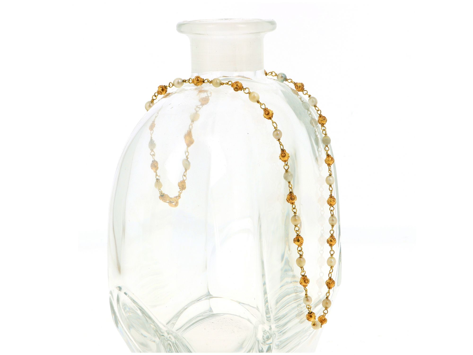 Lote 031 - Colar em Ouro de malha elos duplos finos e pequenos, intercalados com pérolas e contas de Viana, elaborado em OURO 19,2 QUILATES. Estado de Conservação: pequenas falhas ou imperfeições. Contraste: Cabeça de Veado 800 (OURO - 1985-2020, ao abrigo do Decreto Lei 120/2017, artigo 3.º, alínea y). Medidas (Comp): 47cm. Peso Total: 10,06g.