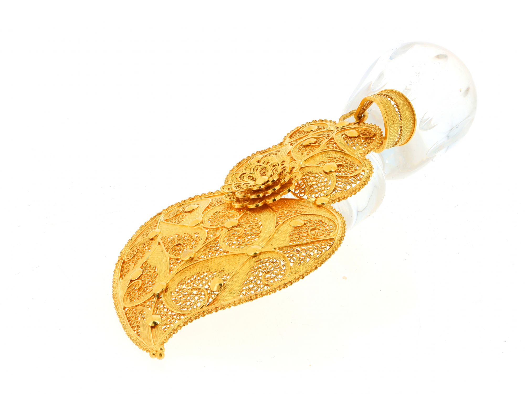 Lote 005 - Medalhão Coração de Viana em Ouro, também conhecido como Coração Minhoto trabalhado à mão em FILIGRANA, elaborado em OURO 19,2 QUILATES. Estado de Conservação: Muito Bom. Contraste: Cabeça de Veado 800 (OURO - 1985-2020, ao abrigo do Decreto Lei 120/2017, artigo 3.º, alínea y). Medidas (CxL): 7*4cm. Peso Total: 10,73g.