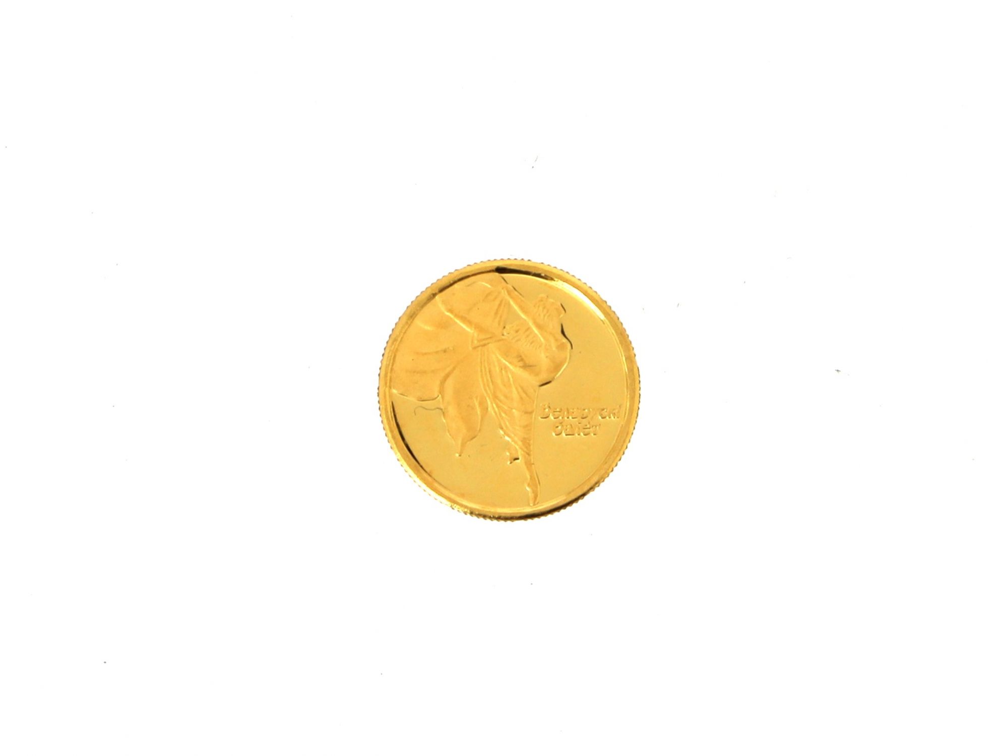 Lote 009 - Moeda 10 RUBLOS em OURO da BIELORRÚSSIA de 2005, comemoração do “Balé Bielorrusso”, anverso do Brasão de Armas do Estado da República da Bielorrúsia e reverso com bailarina dançando, elaborado em OURO 24 QUILATES. Estado de Conservação: Muito Bom, ligeiros sinais de uso. Contraste: Marca 999,9. (OURO - ao abrigo do Decreto Lei 120/2017, artigo 3.º, alínea x). Medidas (Diâm): 1,4cm. Peso Total: 1,24gr.