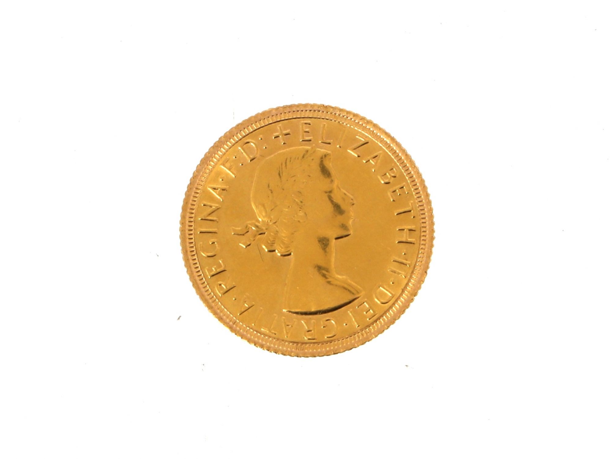 Lote 011 - Moeda Libra em Ouro, datada em 1968, com anverso de retrato da Rainha ISABEL II virado para a direita e reservo com Cavaleiro São Jorge, elaborado em OURO 22 QUILATES. Estado de Conservação: Bom. Contraste: Marca 916. (OURO - ao abrigo do Decreto Lei 120/2017, artigo 3.º, alínea x). Medidas (Diâm): 2,2cm. Peso Total: 7,94g.
