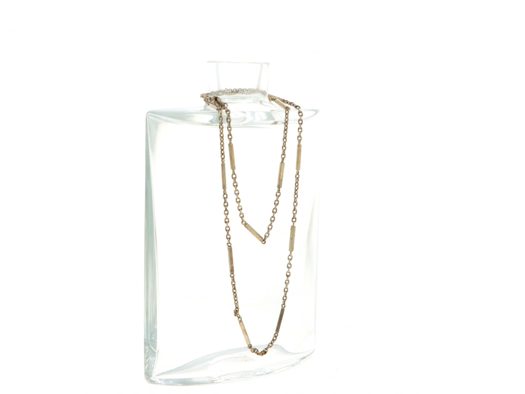 Lote 010 - Fio em Prata de malha cartier intercalada com canuttilhos e com fecho bóia, elaborado em PRATA 835. Estado de Conservação: Bom, sinais de uso. Contraste: Cabeça de Águia virada à direita 835 (1985-2020 - ao abrigo do Decreto Lei 120/2017, artigo 3.º, alínea y). Medidas (Comp): 67cm. Peso Total: 17,67g.