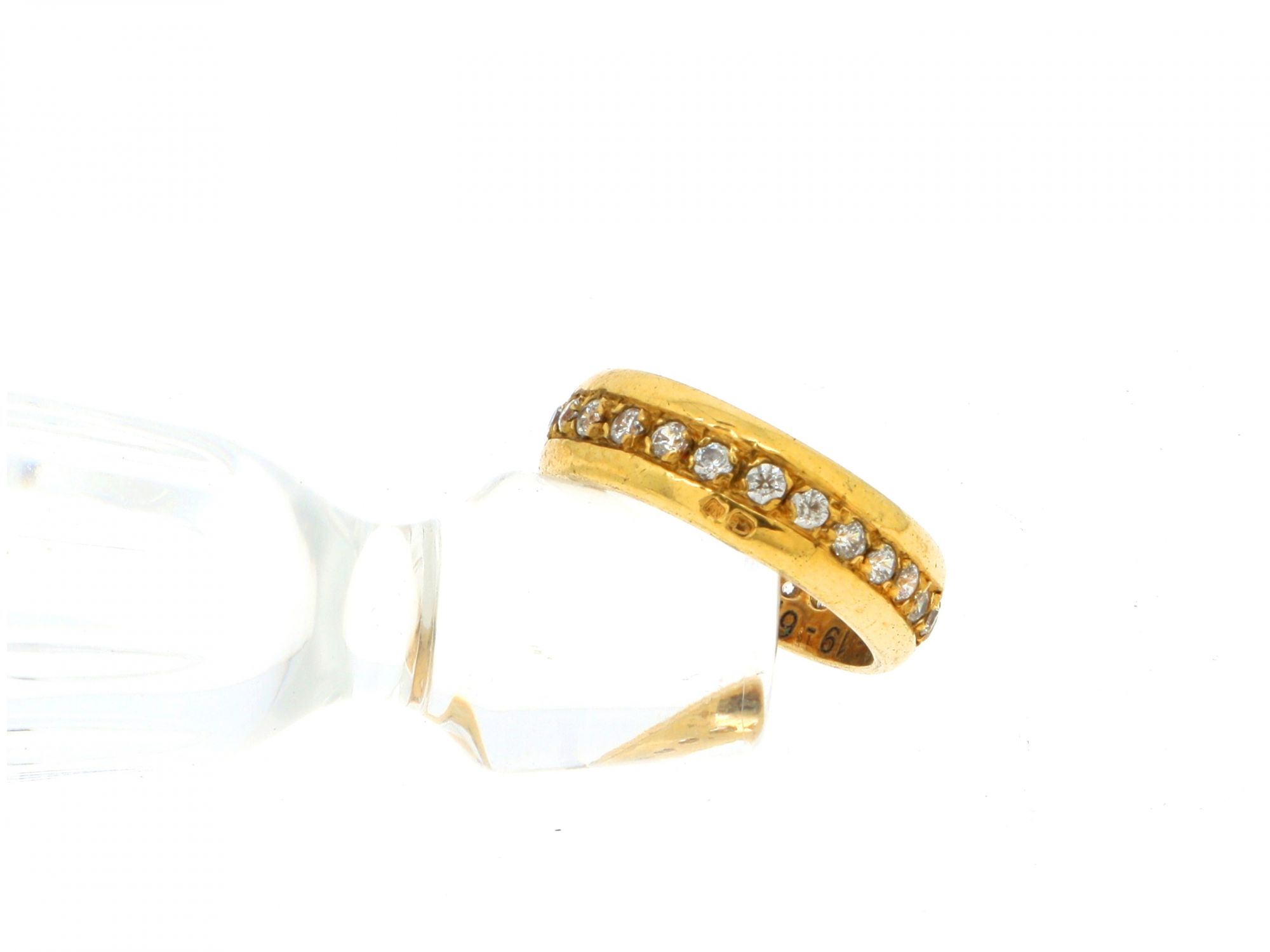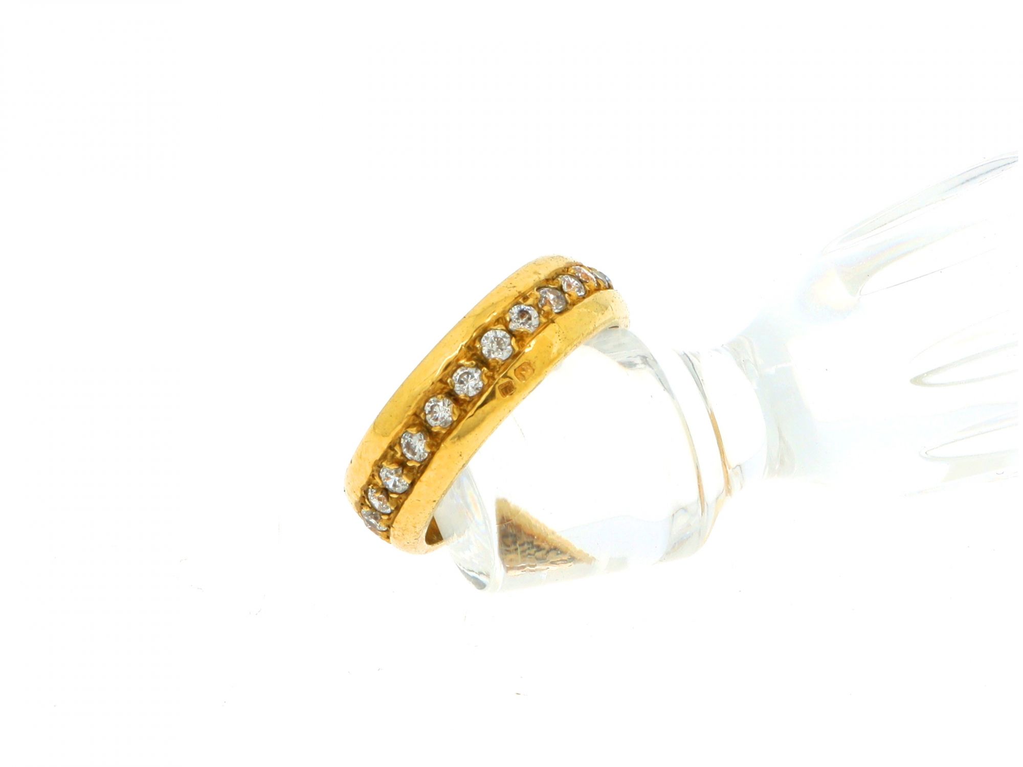 Lote 048 - Aliança em Prata Dourada com centro cravejado com zicórnias incolores e laterais polidas, elaborado em PRATA 925. Estado de Conservação: Bom, sinais de uso. Contraste: Marca 925. (PRATA - ao abrigo do Decreto Lei 120/2017, artigo 3.º, alínea x). Tam.: 15. Medidas (CxLxA): 2*0,6*2cm. Peso Total: 4,93g.