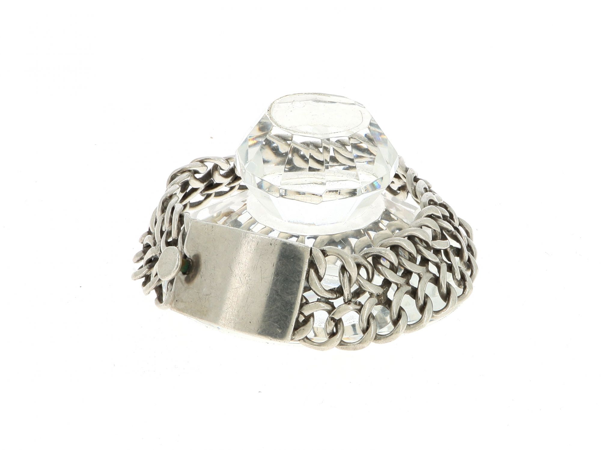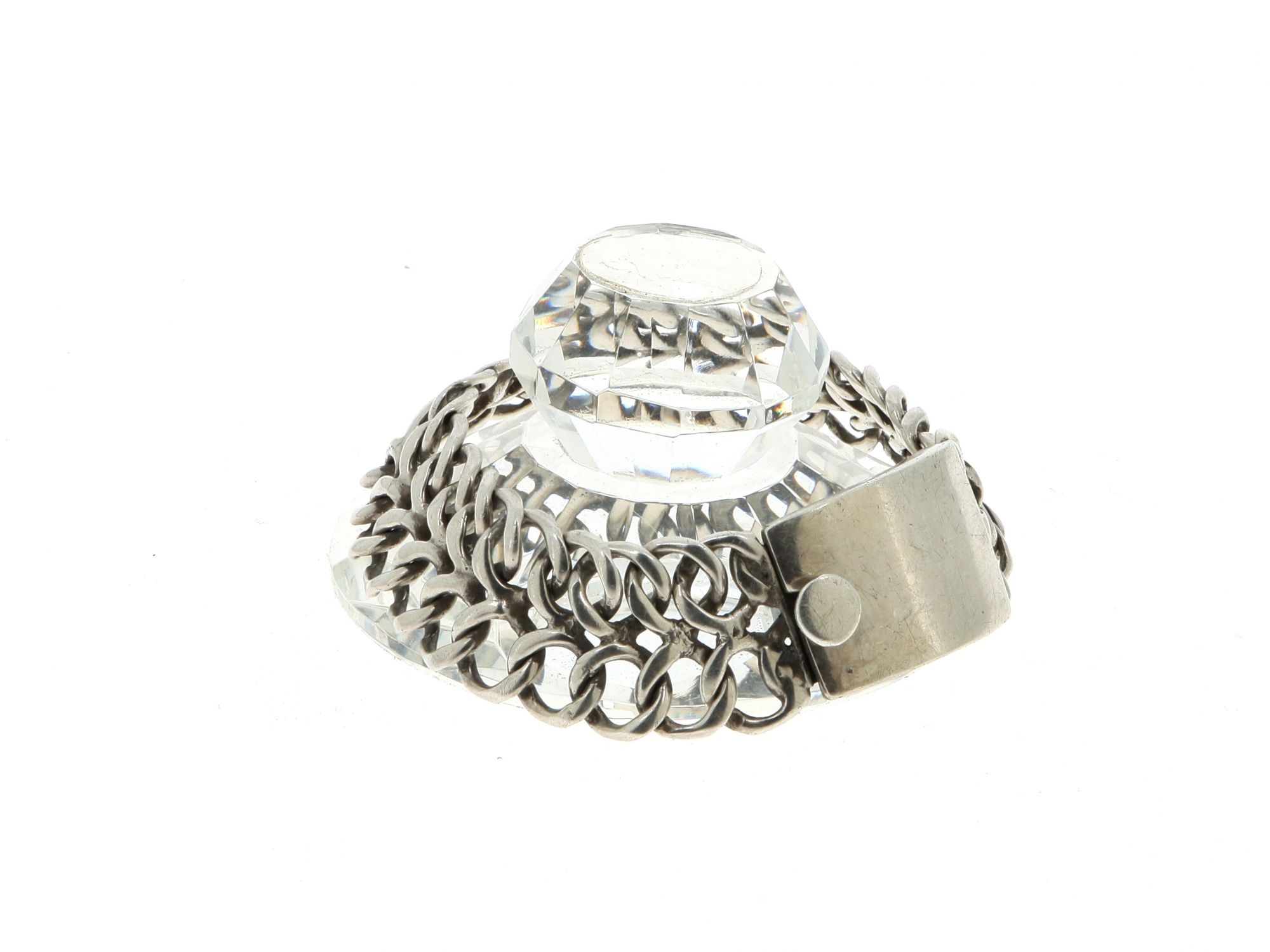 Lote 050 - Pulseira em Prata de malha lacraia larga com fecho caixa, elaborado em PRATA 925. Estado de Conservação: Bom, sinais de uso. Contraste: Marca 925. (PRATA - ao abrigo do Decreto Lei 120/2017, artigo 3.º, alínea x). Medidas (CxL): 23,5*2,1cm. Peso Total: 57,14g.