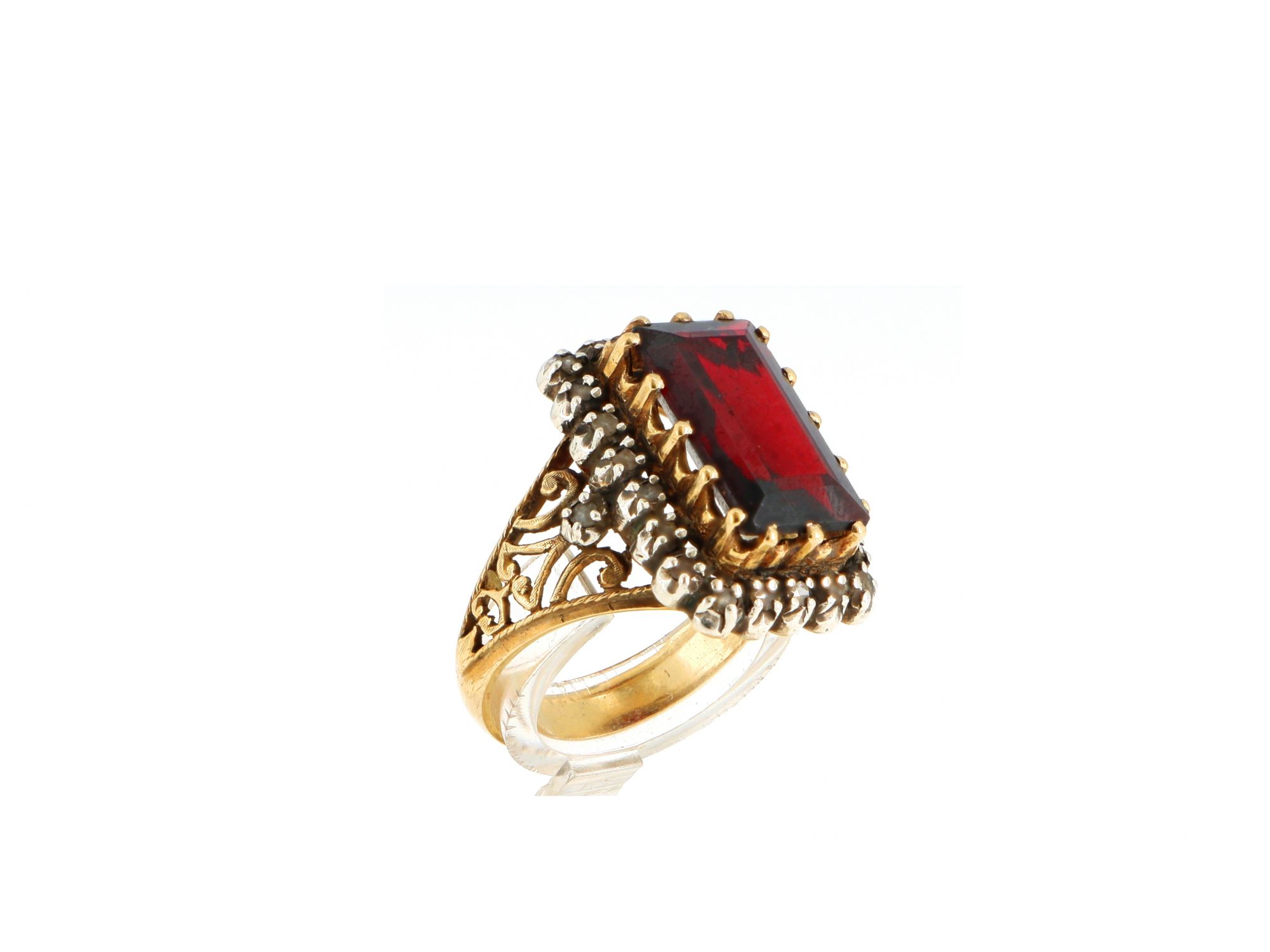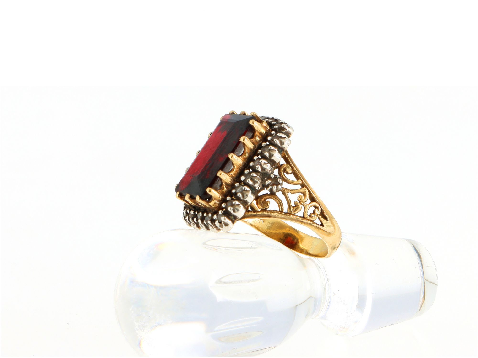 Anel ANTIGO em OURO E PRATA - 2 DIAMANTES e Amestista