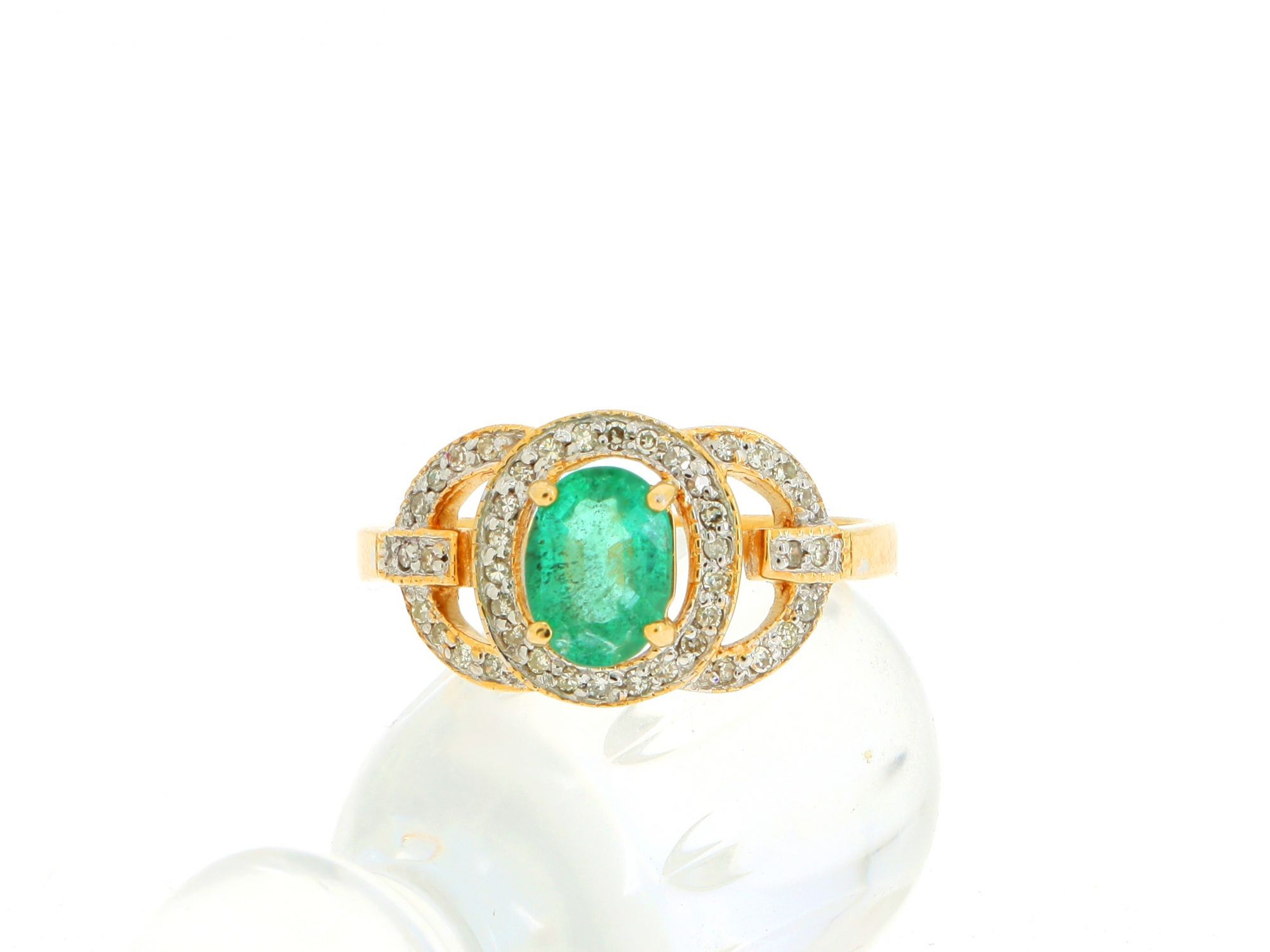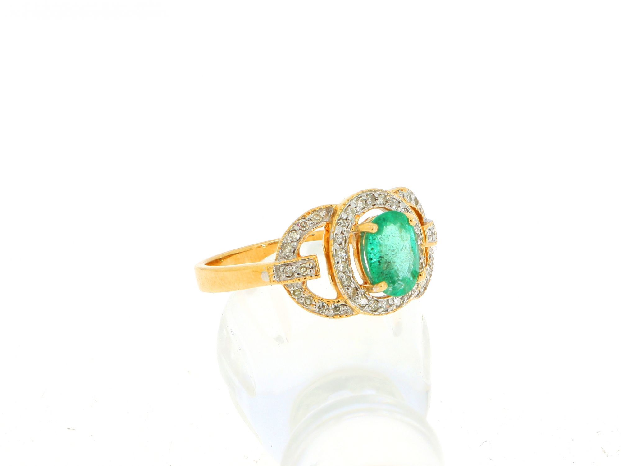 Anel ALTA JOALHARIA com 1 ESMERALDA e 43 DIAMANTES em OURO 18K