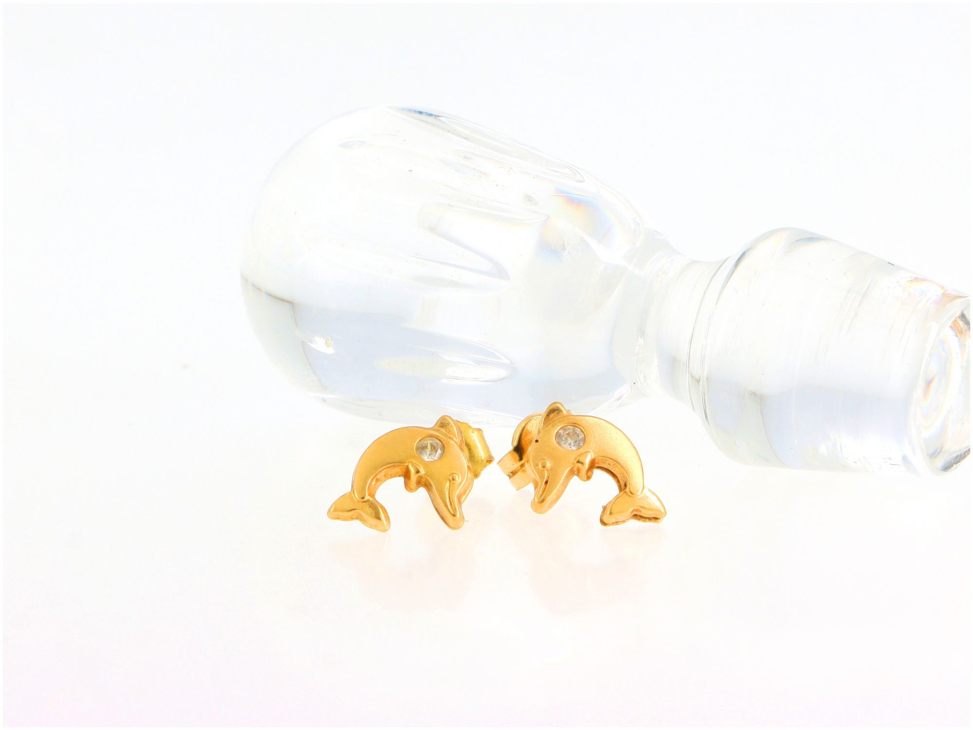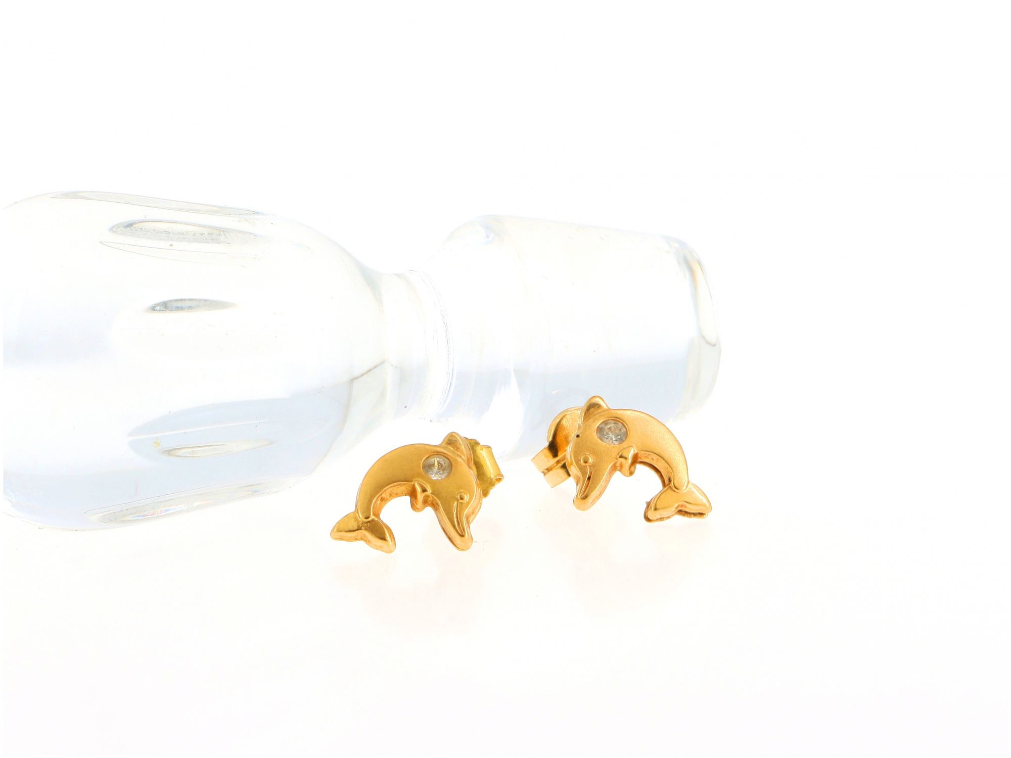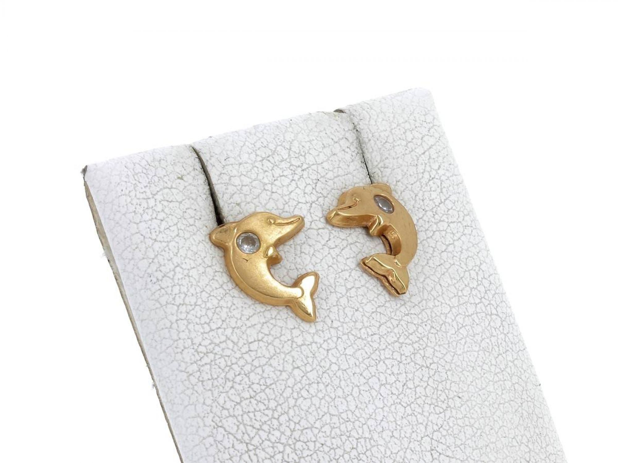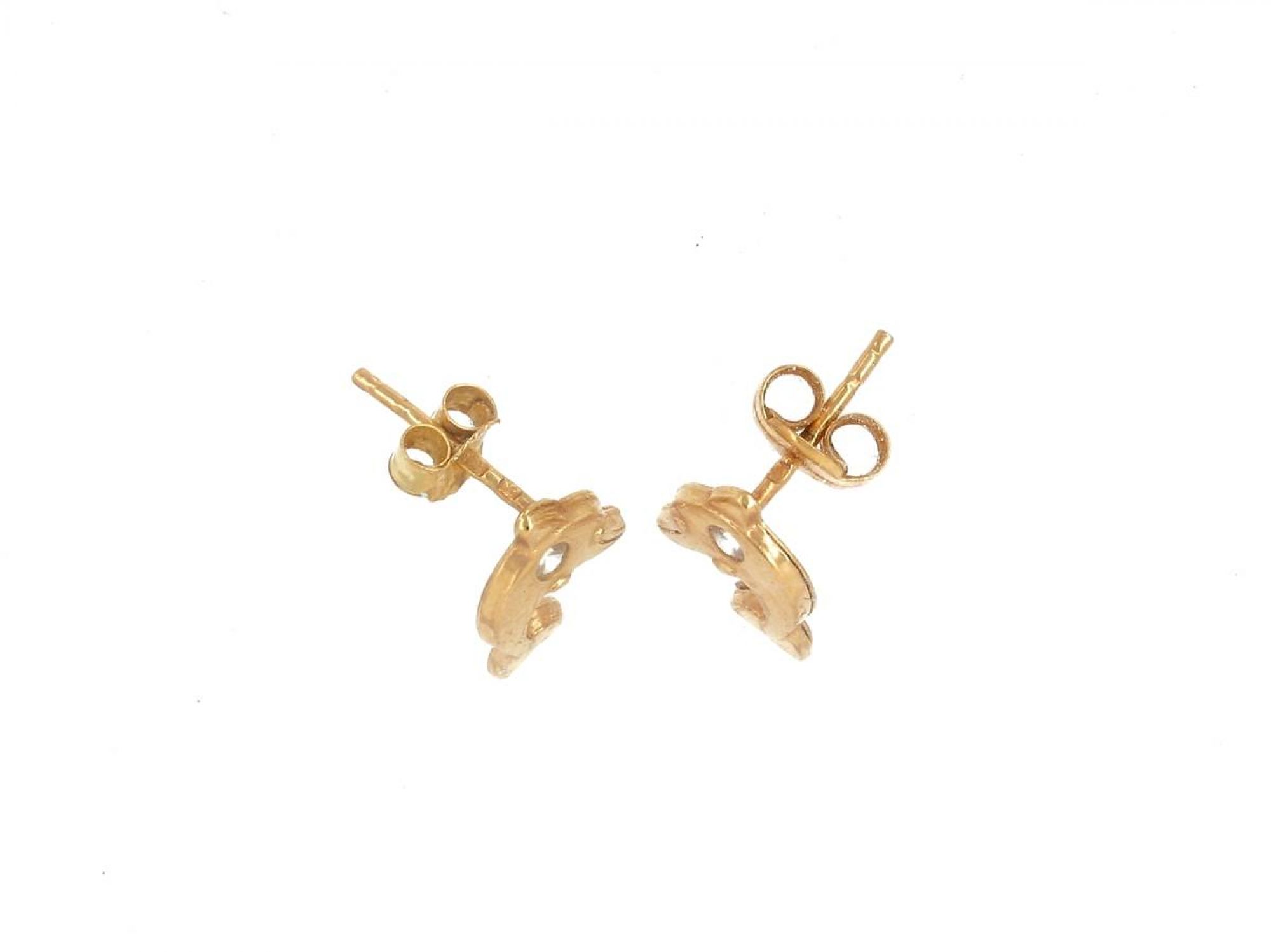 Lote 022 - Par de brincos em forma de Glofihos elaborados em OURO 19,2 Quilates cravejados com pedra incolor em talhe redondo brilhante Estado de Conservação: Muito Bom. Contraste: Cabeça de Veado 800 (OURO - 1985-2020, ao abrigo do Decreto Lei 120/2017, artigo 3.º, alínea y). Medidas (CxL): 0,8x0,9cm. Peso Total: 0,78gr.