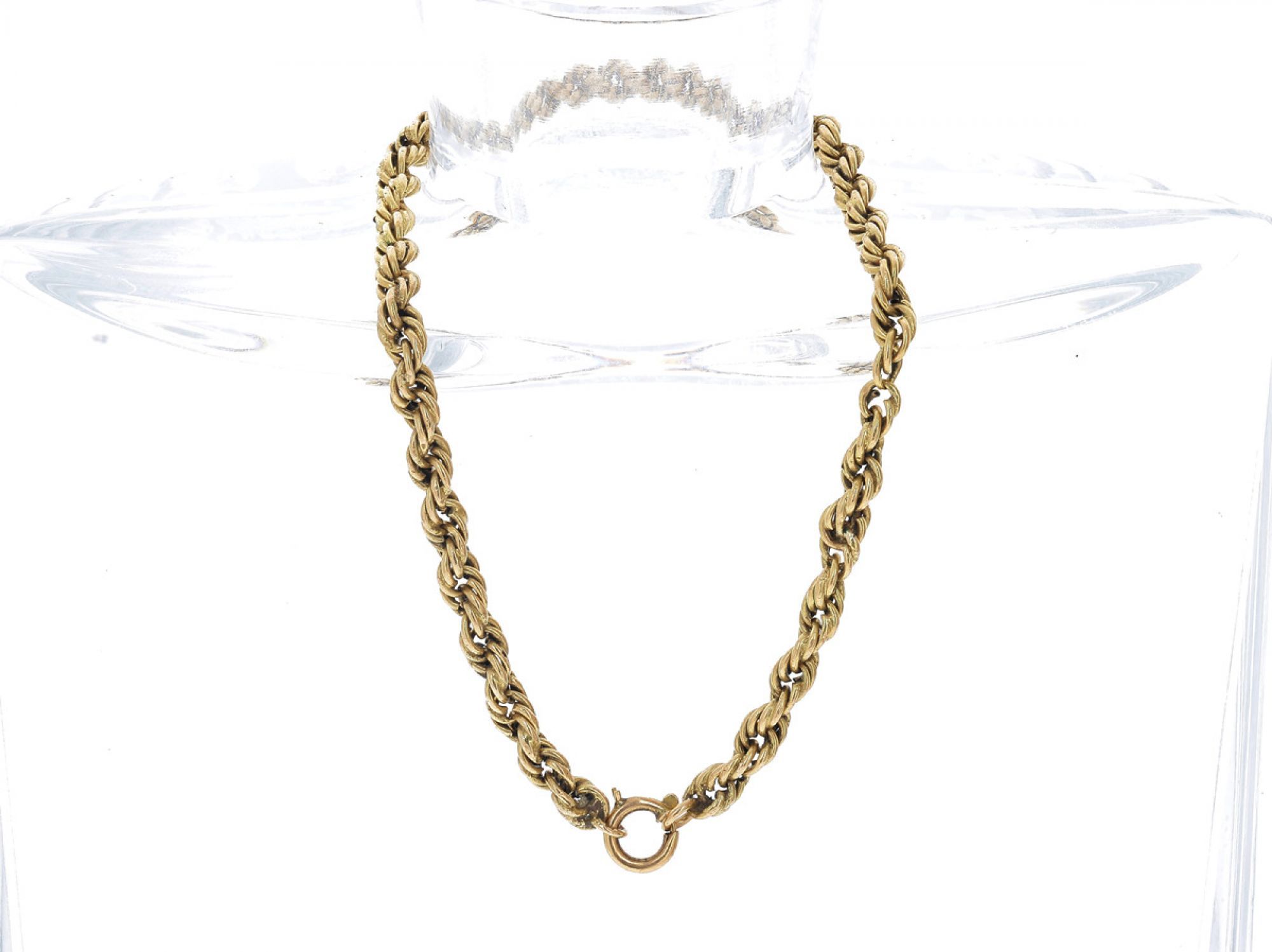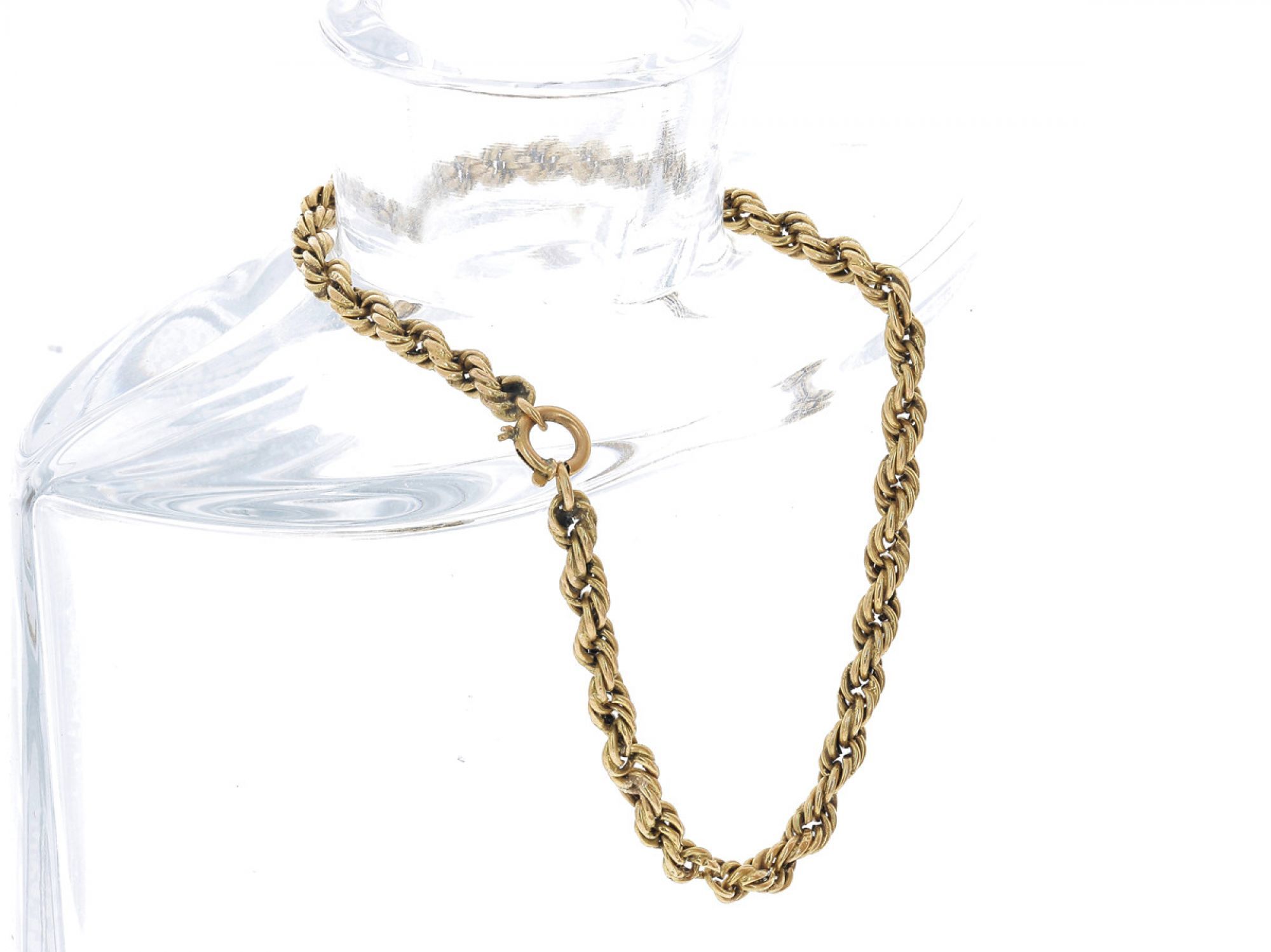 Lote 026 - Pulseira ANTIGA em malha corda elaborada em OURO 19,2 Quilates. Estado de Conservação: Muito Bom. Contraste: Cabeça de Dragão 2 (Ouro 583) (1938-1984 - ao abrigo do Decreto Lei 120/2017, artigo 3.º, alínea y). Medidas (CxL): 21,8x0,3cmcm. Peso Total: 5,1g.r