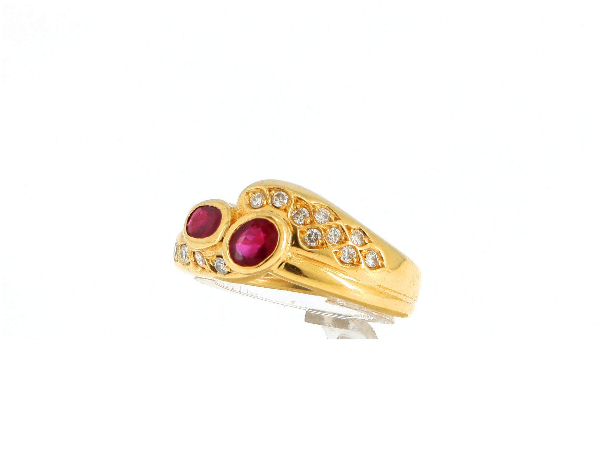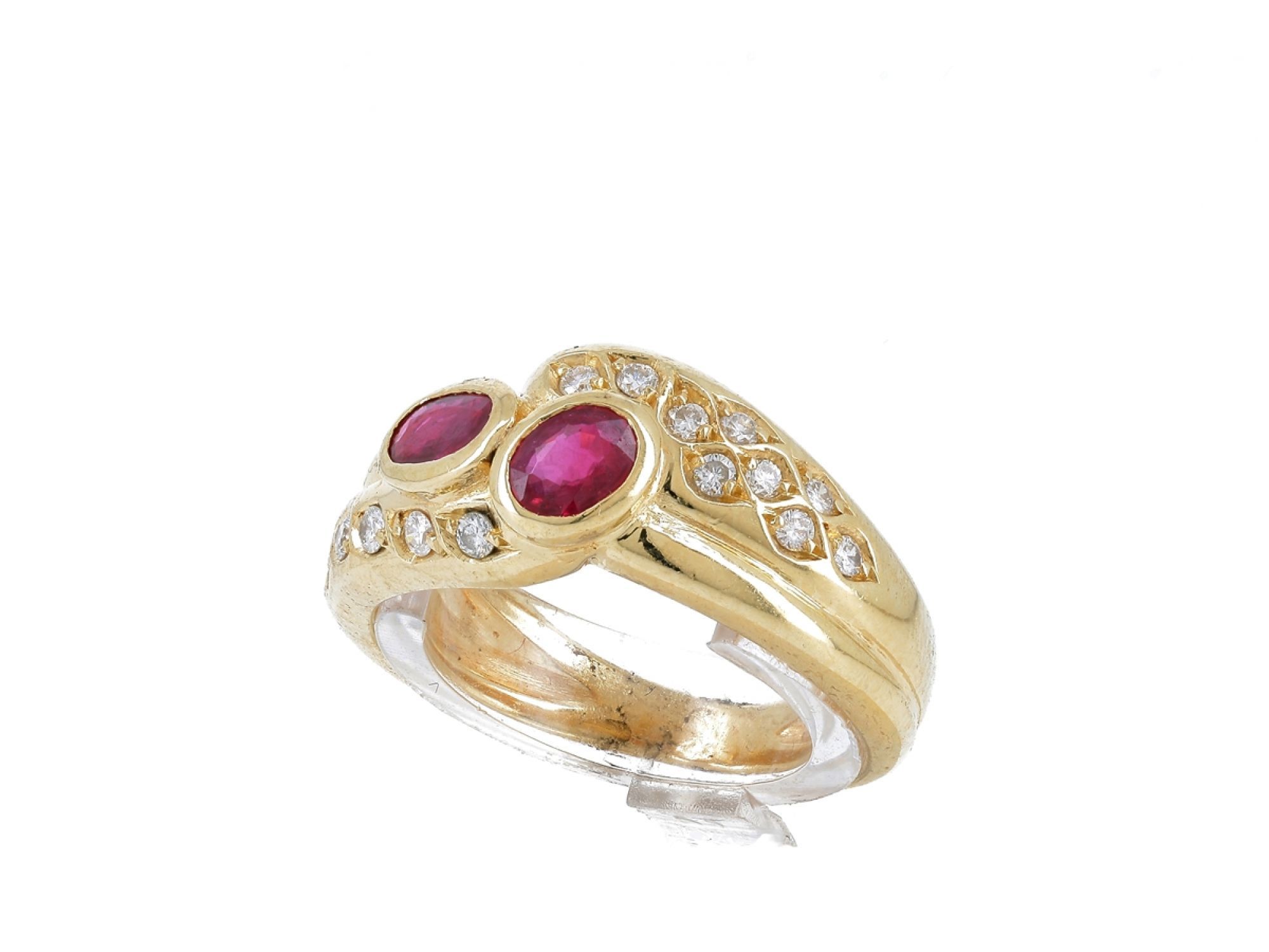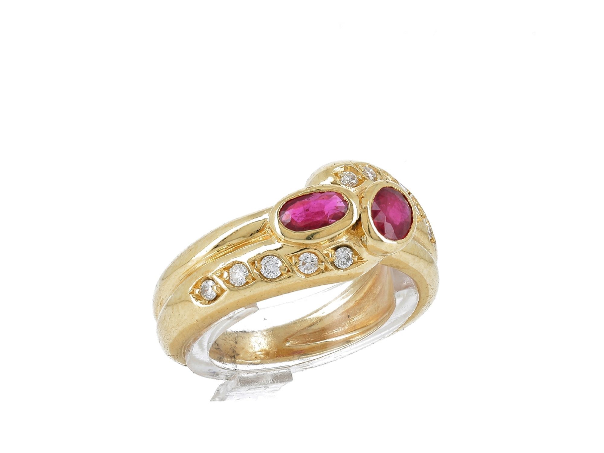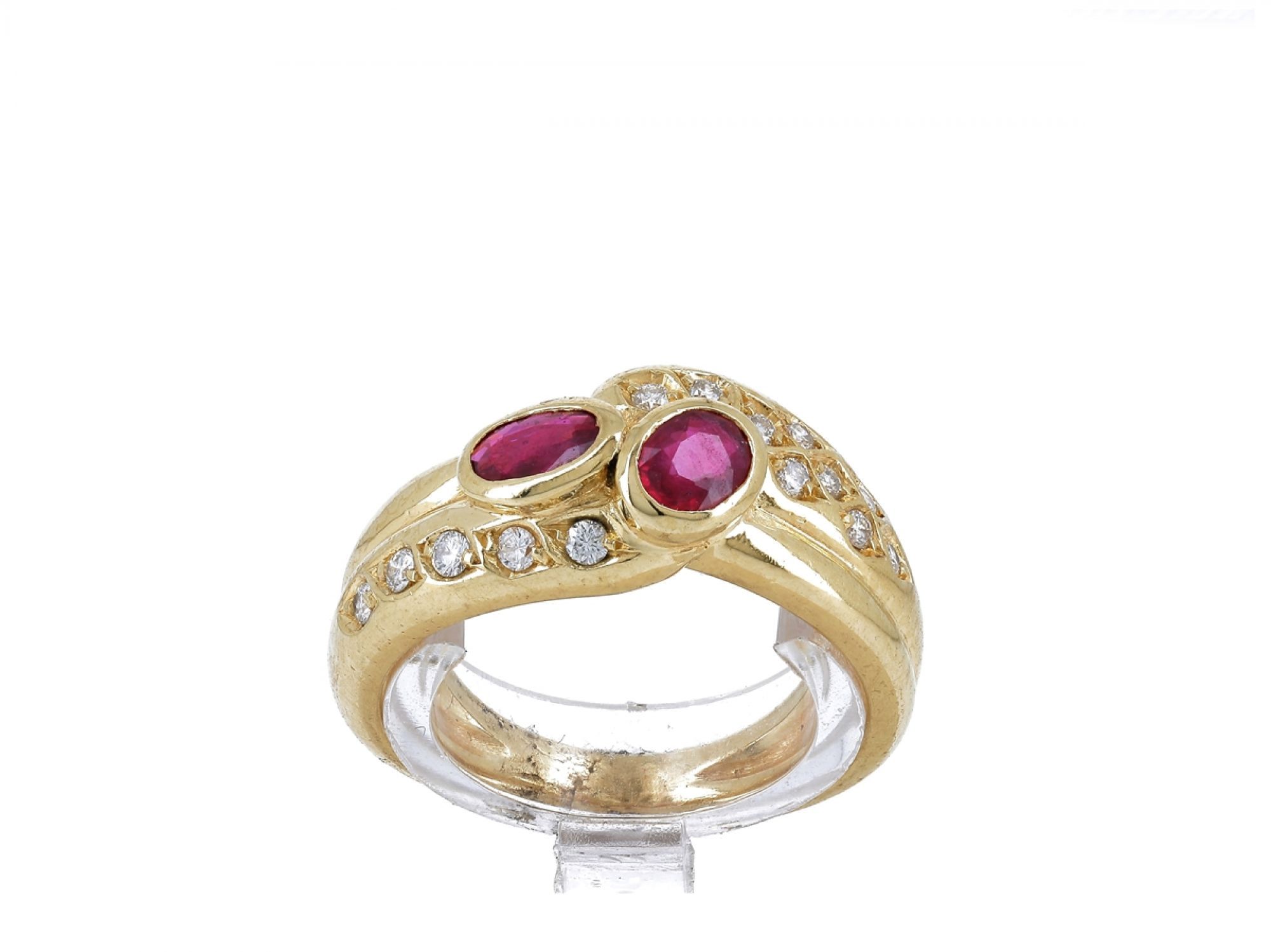Anel em OURO 19,2K - 14 DIAMANTES e 2 RUBIS
