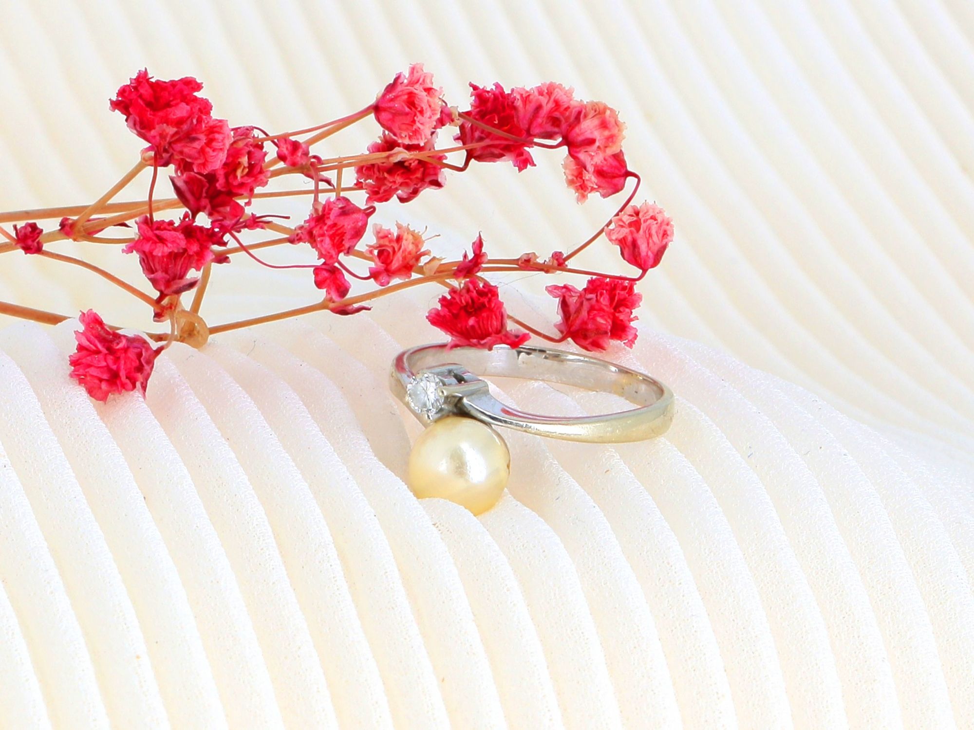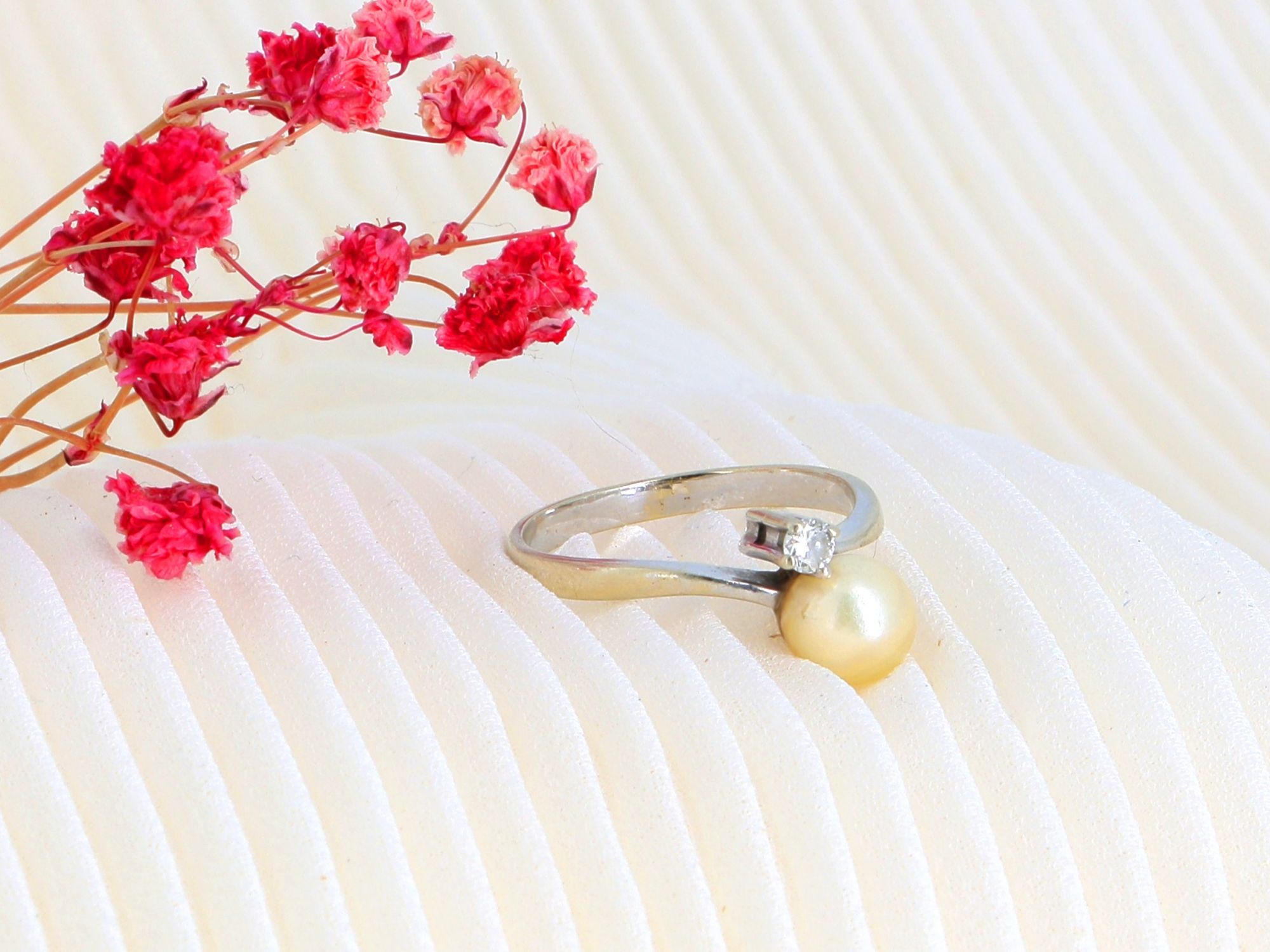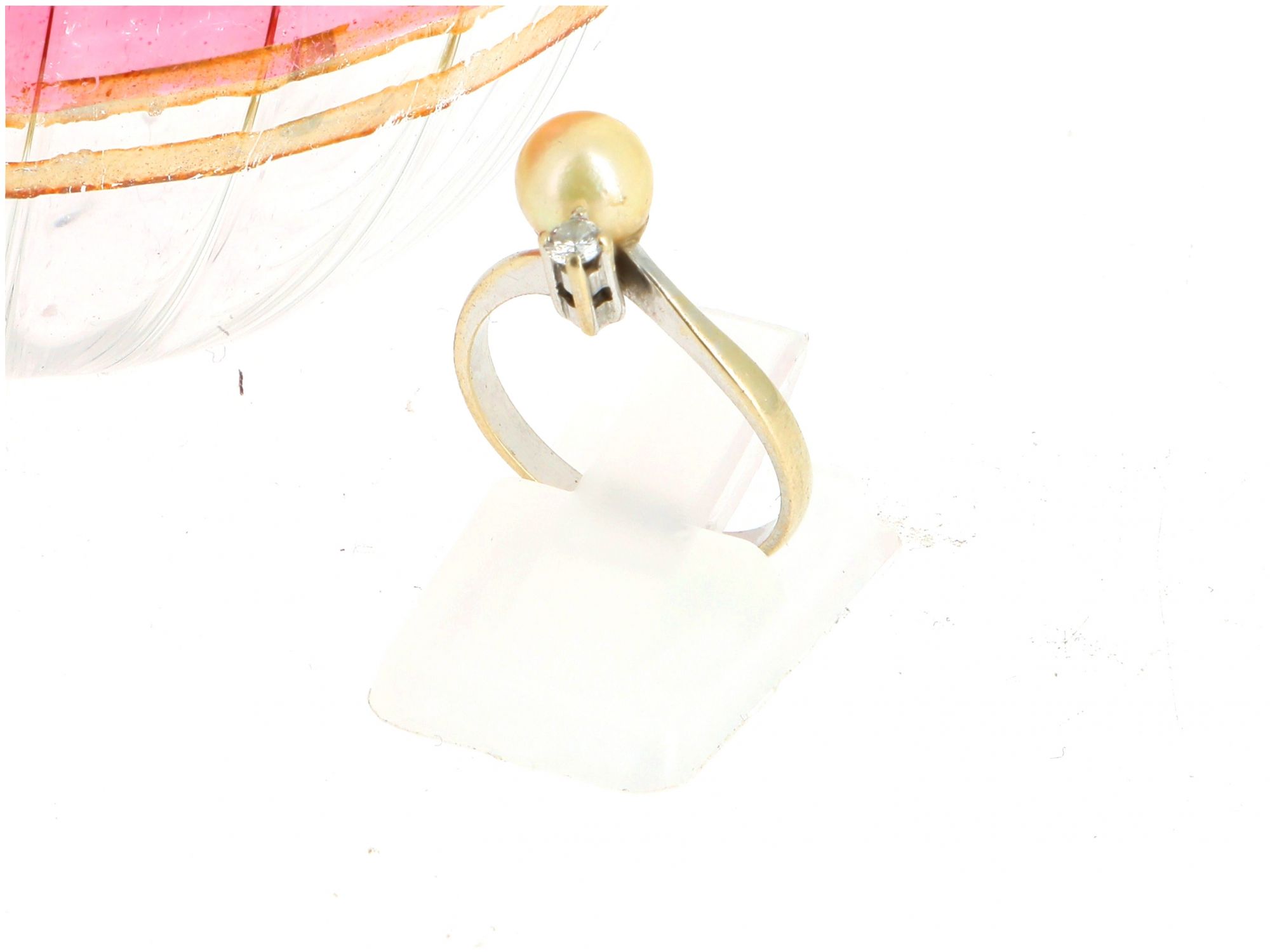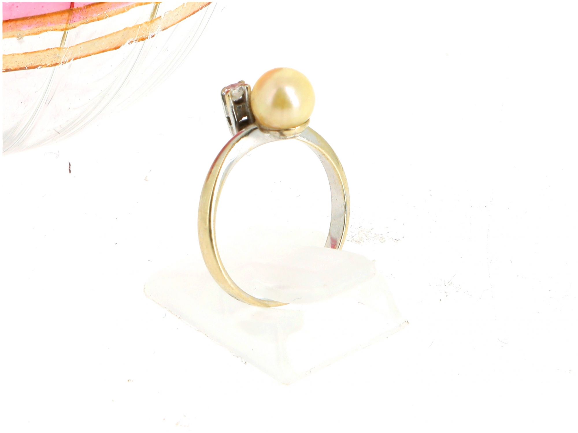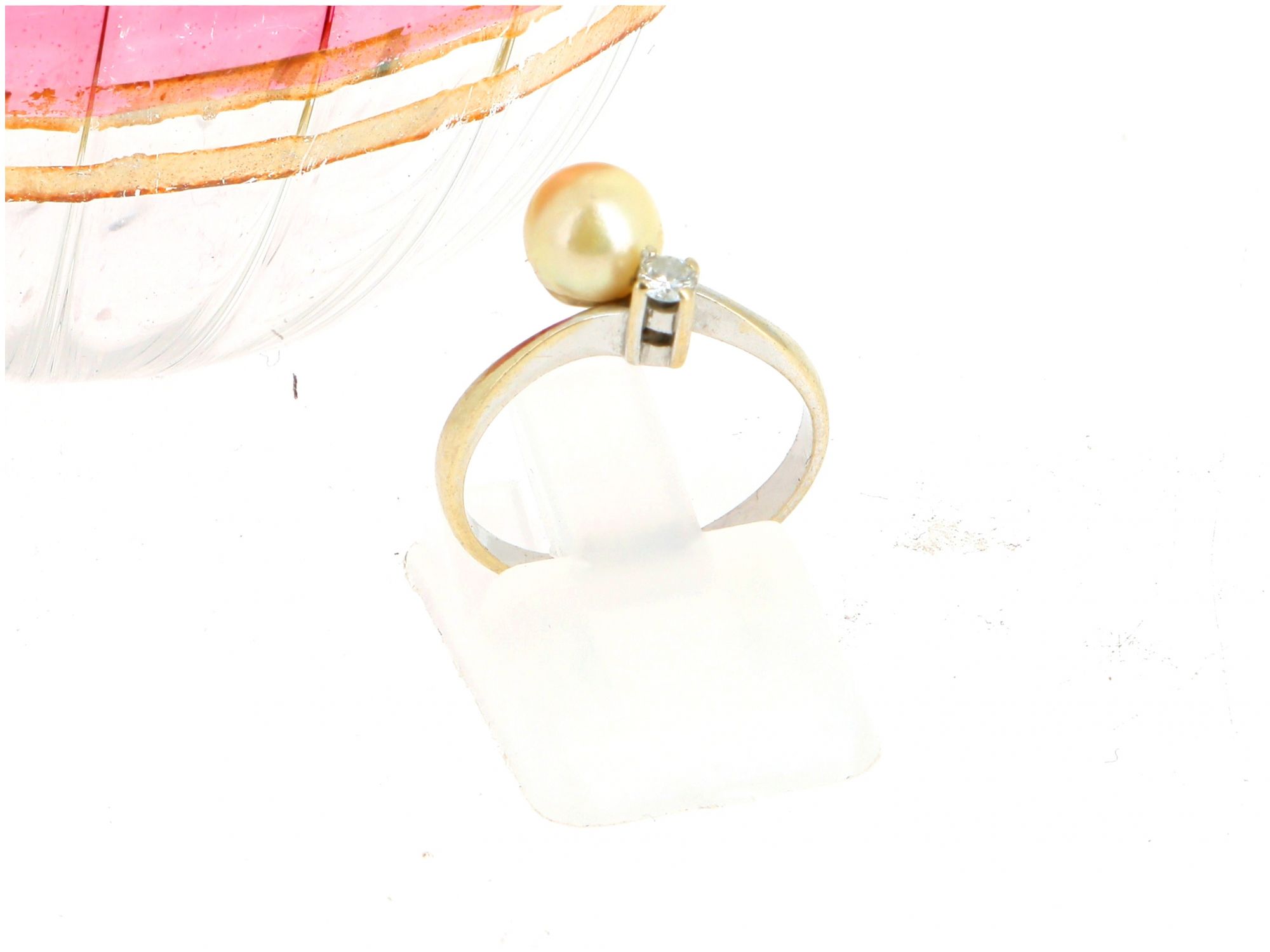 Anel Solitário em OURO 19,2K - DIAMANTE e PÉROLA NATURAL