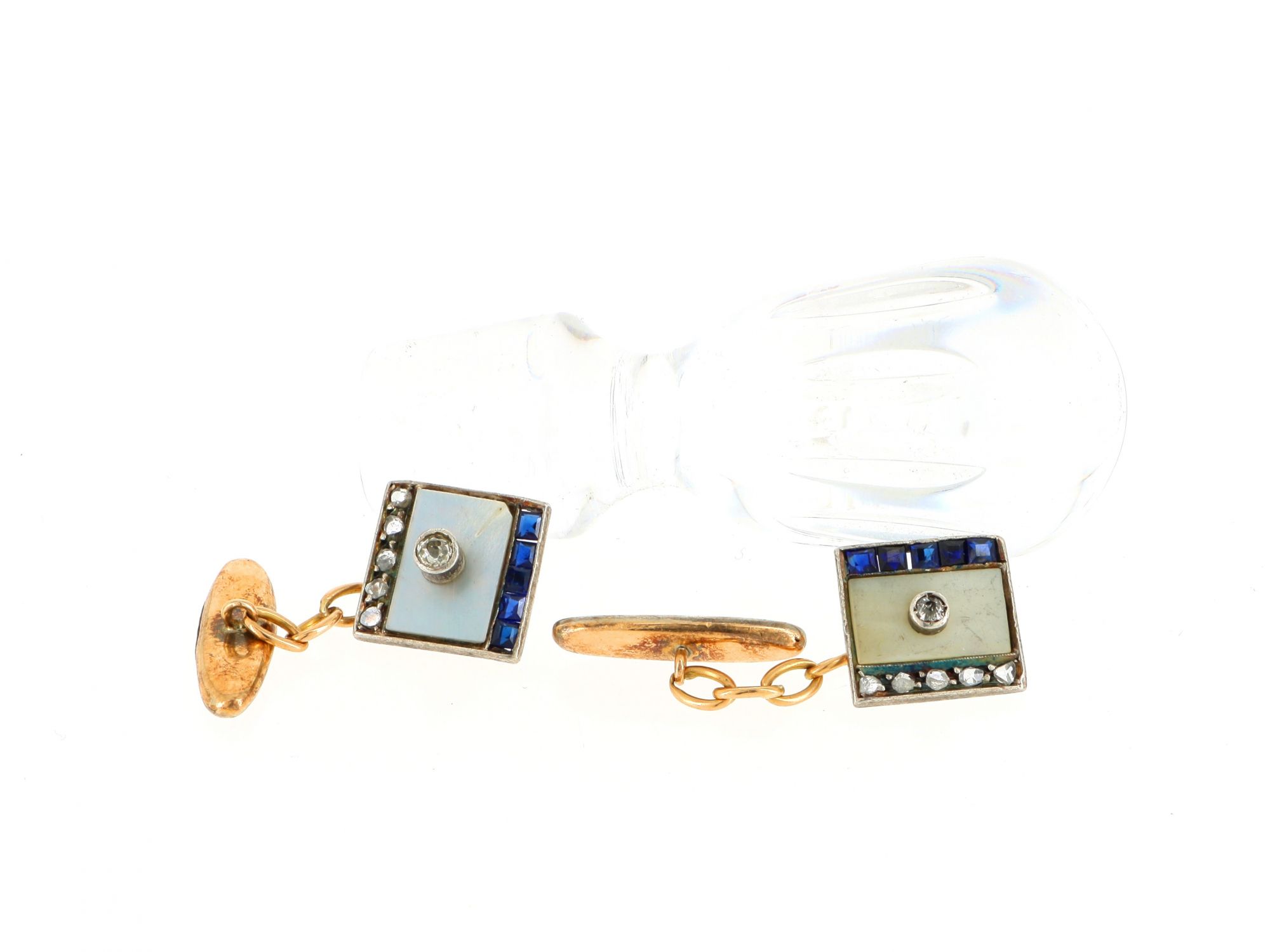 Botões de Punho ANTIGOS em OURO e PRATA - 12 DIAMANTES e 10 Safiras