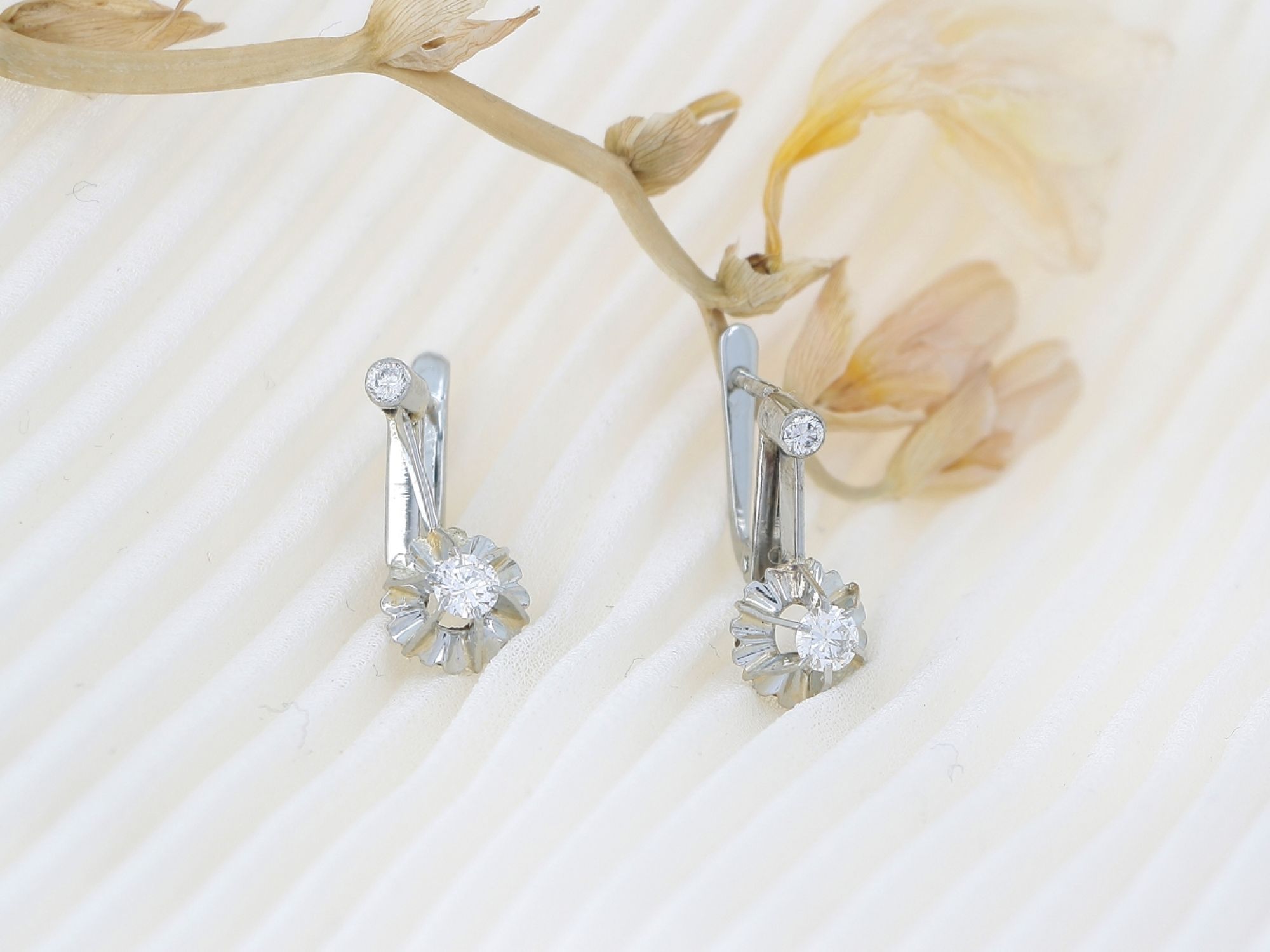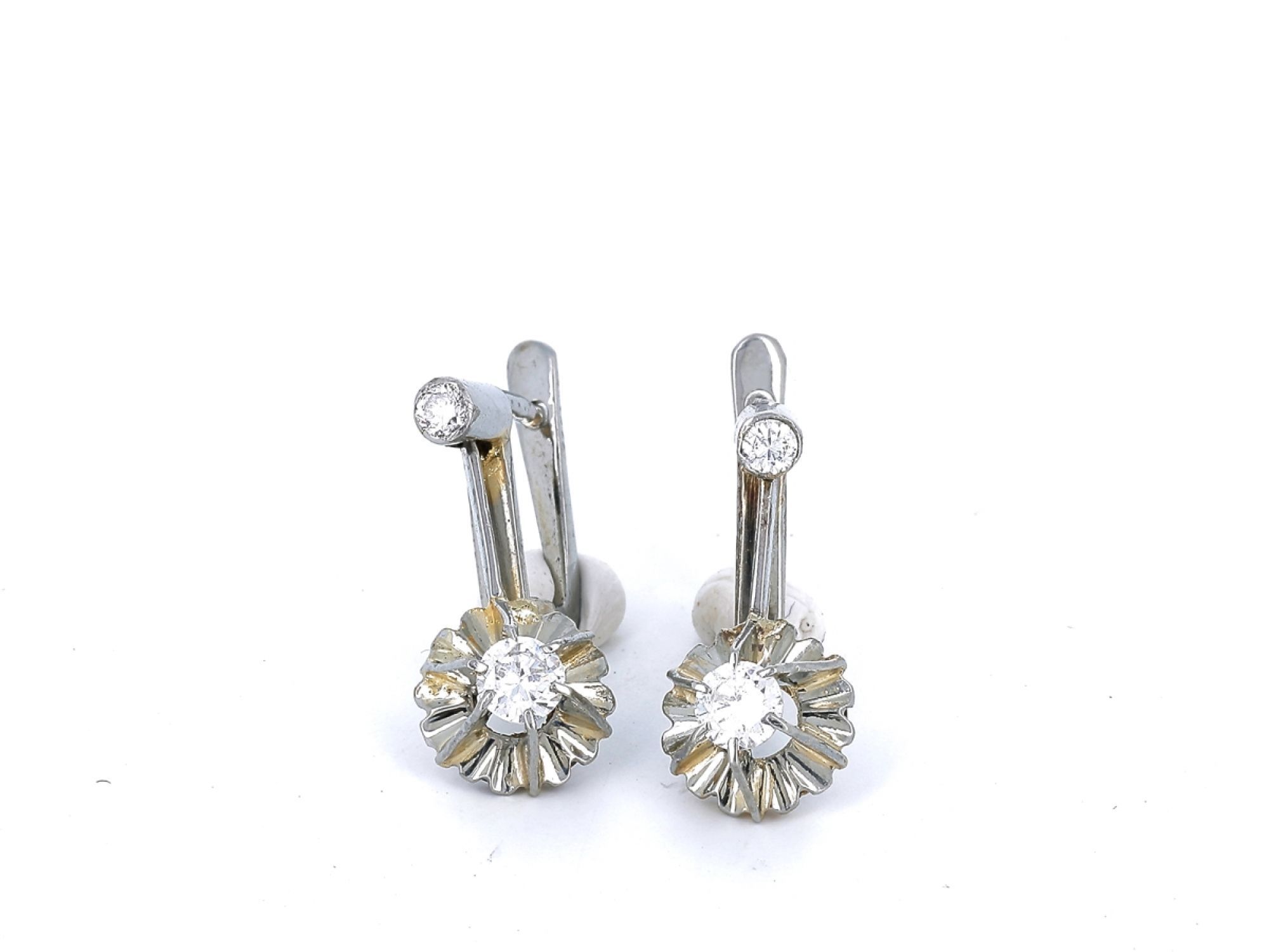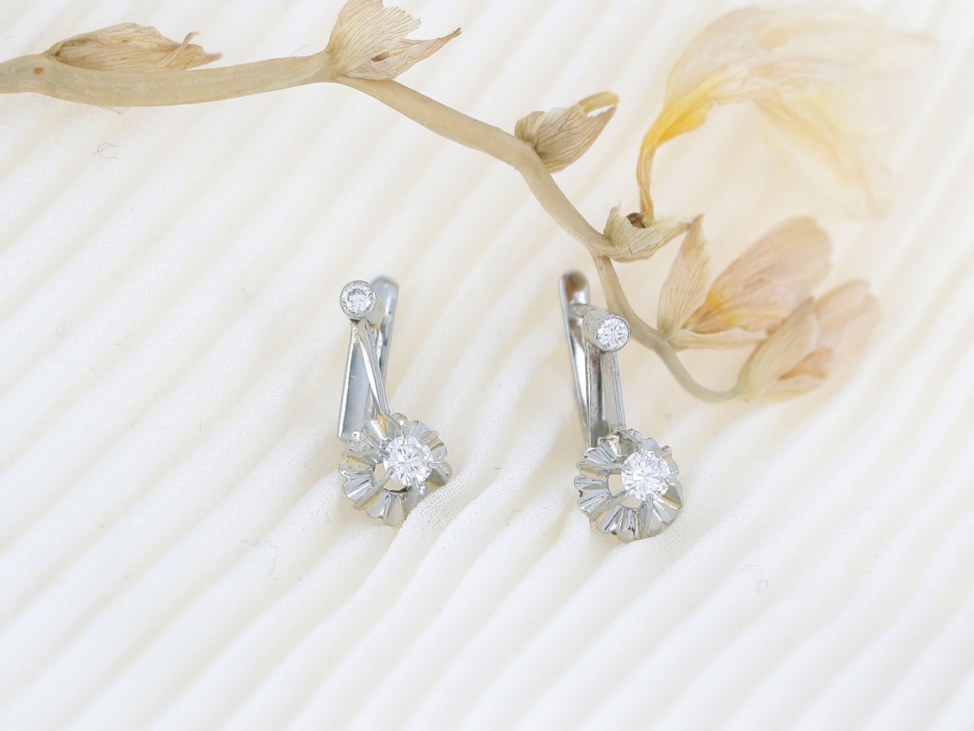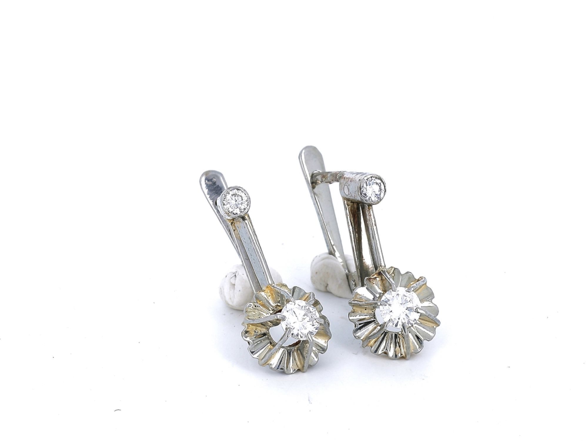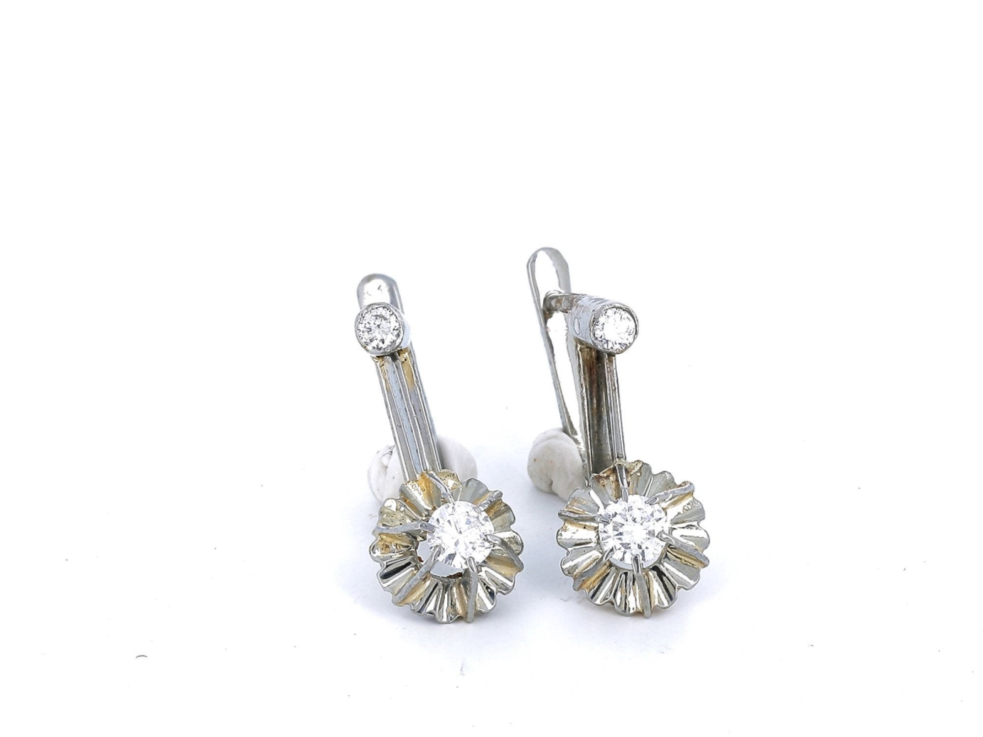 Brincos ANTIGOS em Ouro Branco de 19,2K e 4 DIAMANTES