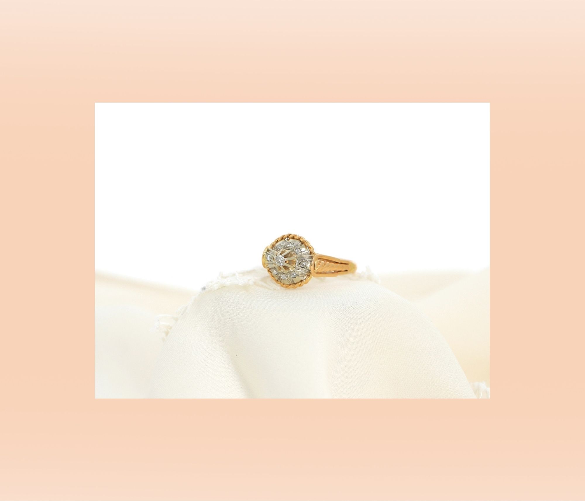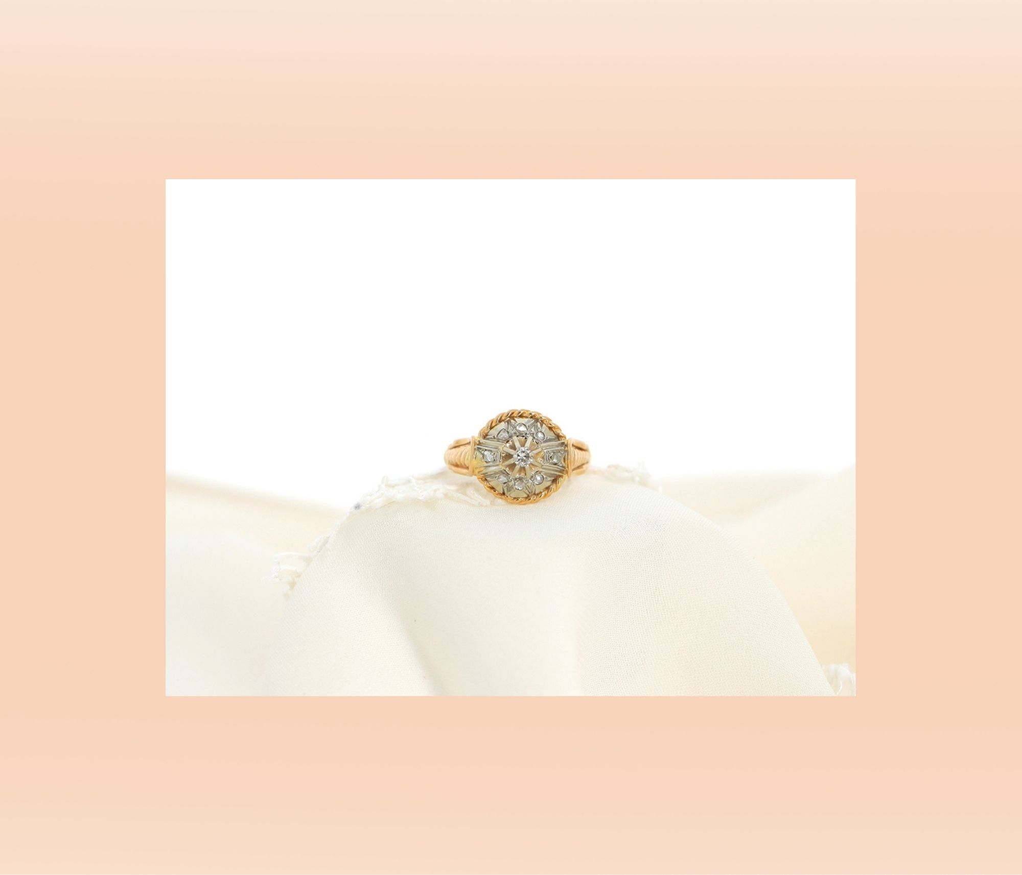 Anel VINTAGE Bicolor com 3 DIAMANTES e 6 SAFIRAS em OURO 18kl