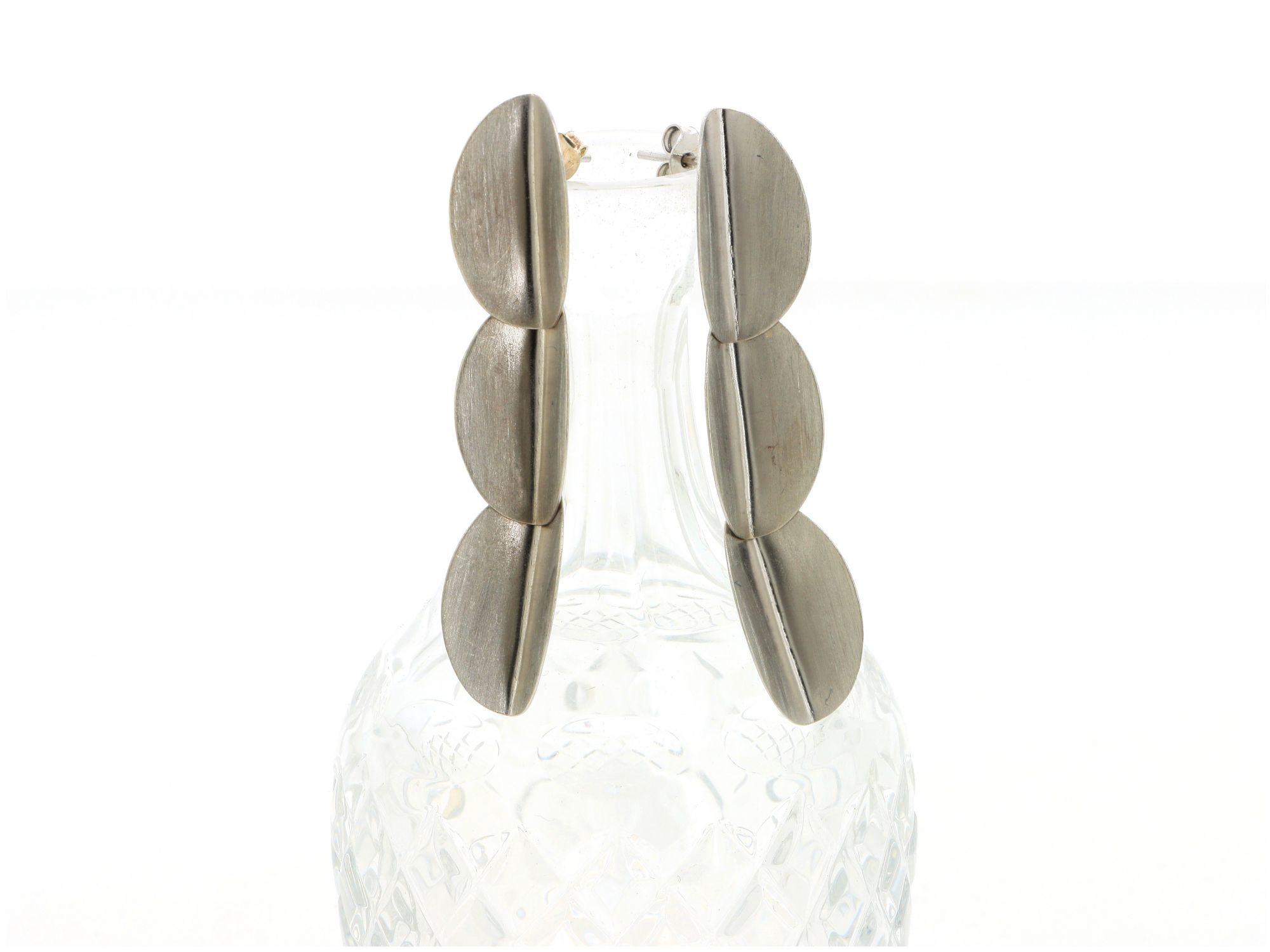 Lote 006 - Brincos em Prata de folha tripla, dobrados à mão com acabamento escovado, elaborado em PRATA 925. Estado de Conservação: Muito Bom. Contraste: Cabeça de Águia virada à esquerda 925 (1985-2020 - ao abrigo do Decreto Lei 120/2017, artigo 3.º, alínea y). Medidas (CxL): 5,8*1,2cm. Peso Total: 5,98g.
