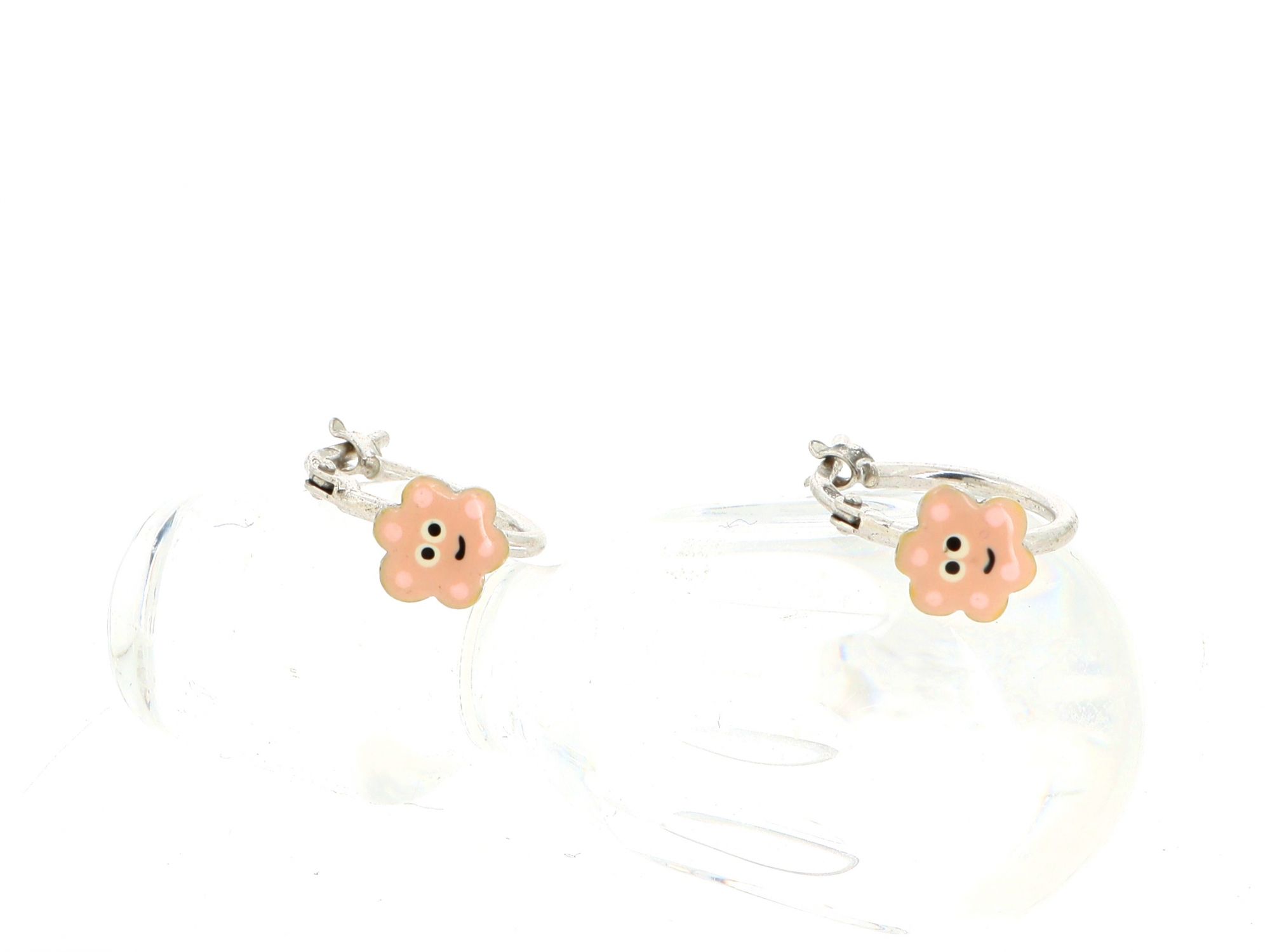 Lote 021 - Argolas APEIRA em Prata pequenas, com parte frontal com nuvem esmaltada em rosa claro, elaborado em PRATA 925. Estado de Conservação: Bom. Contraste: Marca 925. (PRATA - ao abrigo do Decreto Lei 120/2017, artigo 3.º, alínea x). Medidas (Comp): 1,1cm. Peso Total: 1,45g.