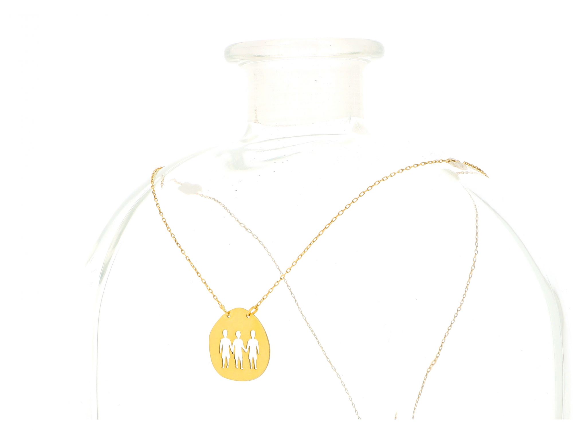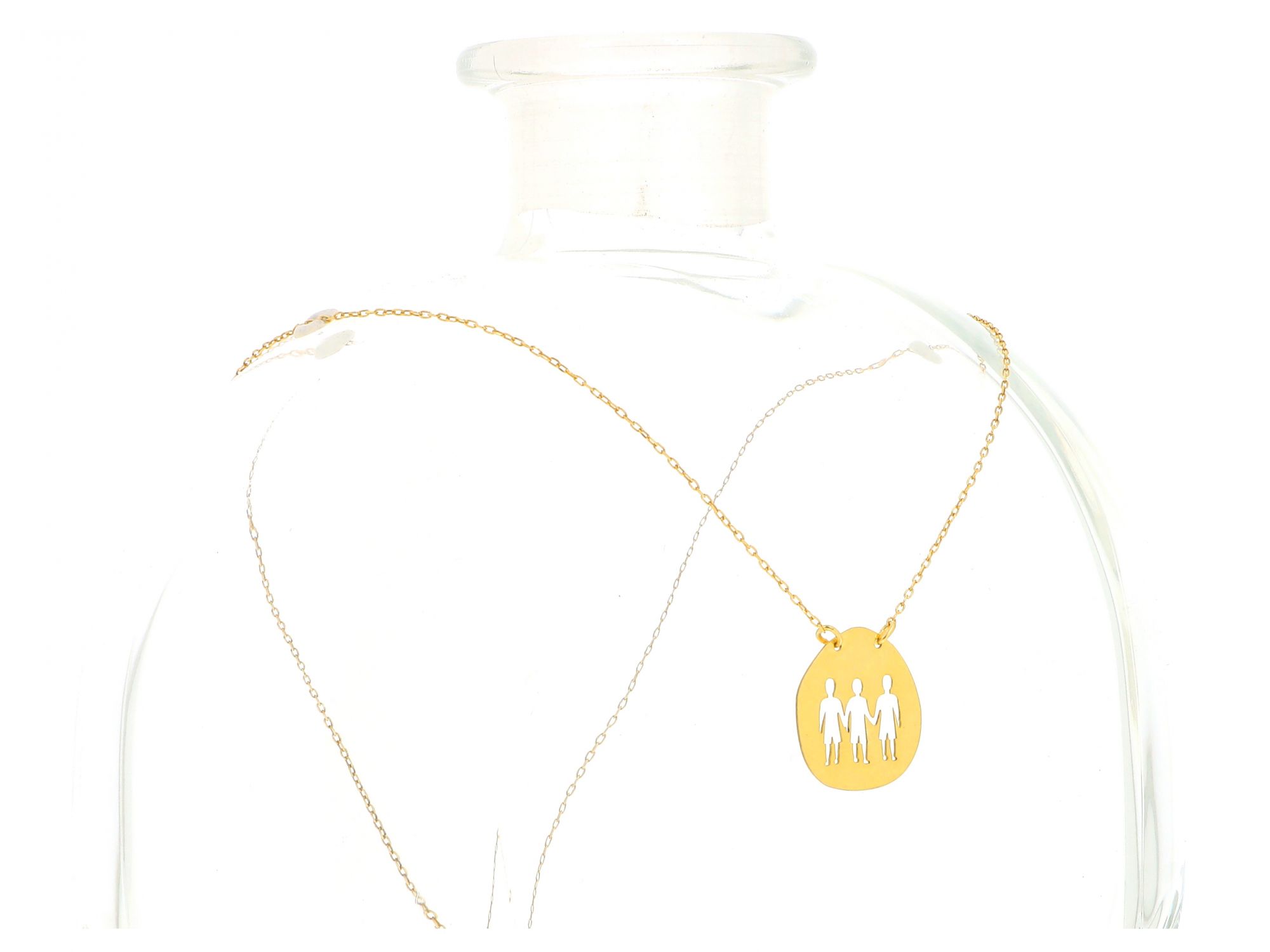 Lote 023 - Fio em Prata Dourada (banhada Ouro) de malha Cartier com pingente no centro redondo, com imagem recortada de três pessoas e com fecho bóia, elaborado em PRATA 925. Estado de Conservação: Muito Bom, ligeiros sinais de uso. Contraste: Marca 925. (PRATA - ao abrigo do Decreto Lei 120/2017, artigo 3.º, alínea x). Medidas (CxL): 46,5*2cm. Peso Total: 1,99g.