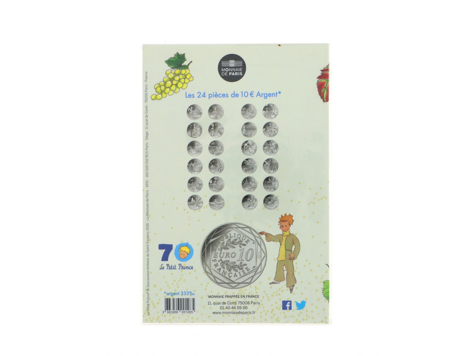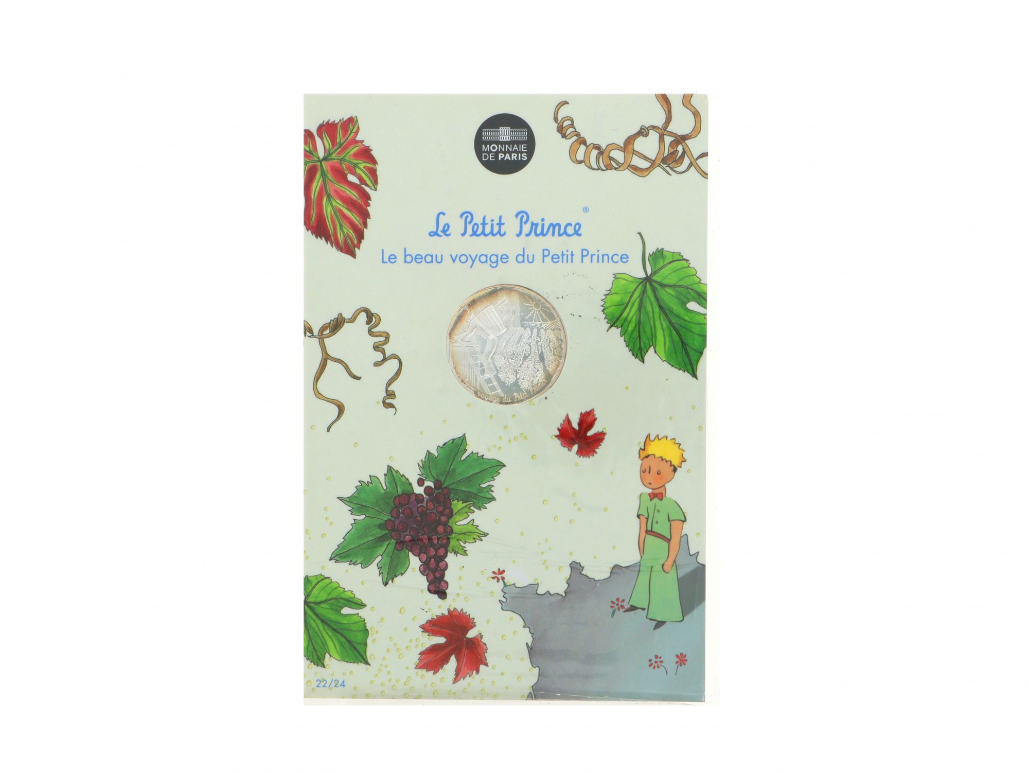 Lote 015 - Moeda Comemorativa de 10€ em Prata, da série "LE PETIT PRINCE", com tema “LE BEAU VOYAGE DU PETIT PRINCE”, nº 22/24, com cunhagem de 2016, elaborada em PRATA 333%. Estado de Conservação: Excelente. Contraste: Assinatura de artista. (ao abrigo do Decreto Lei 120/2017, artigo 3.º, alínea c). Medidas (Diâm): 3cm. Peso Total: 17g.