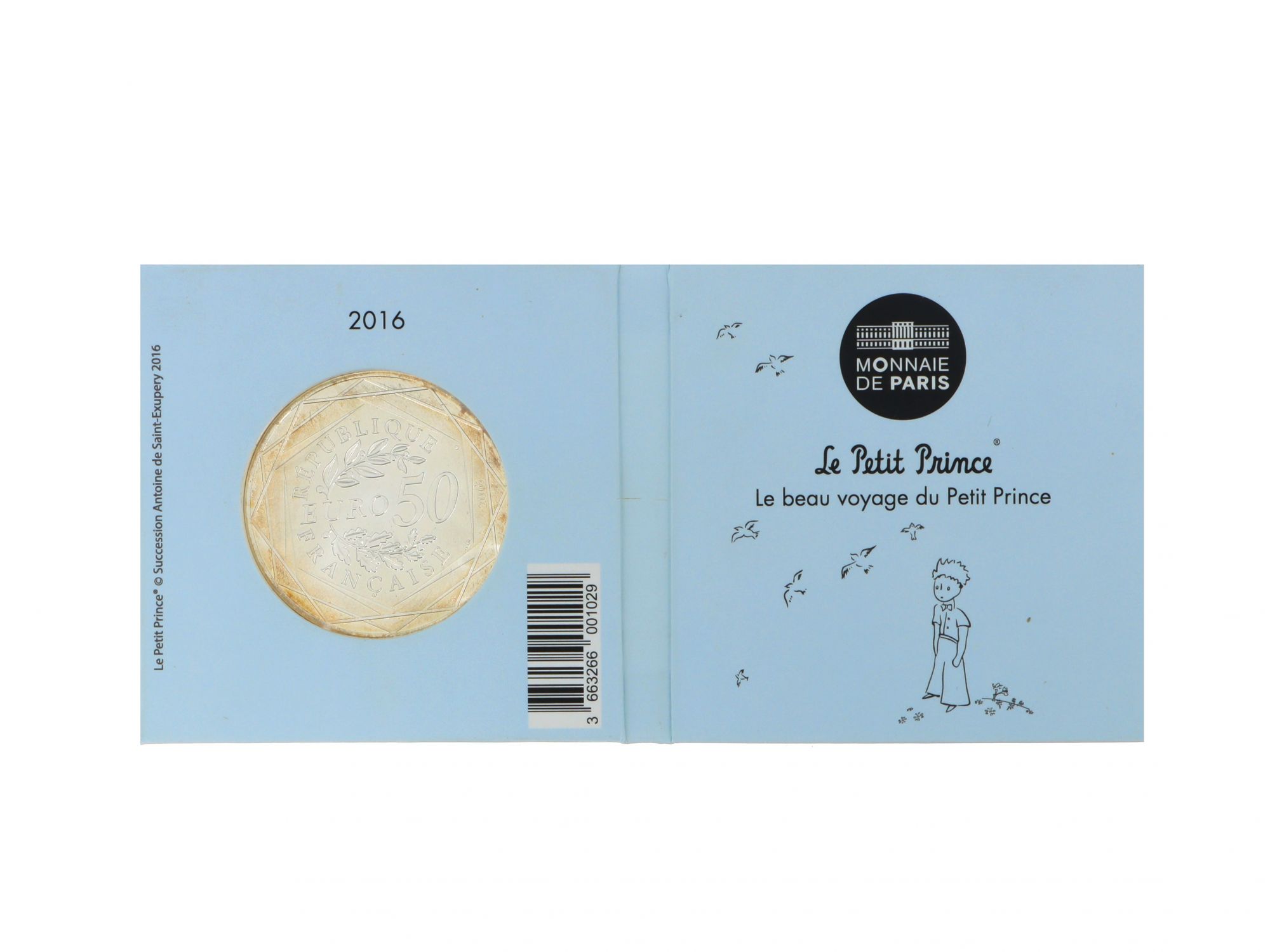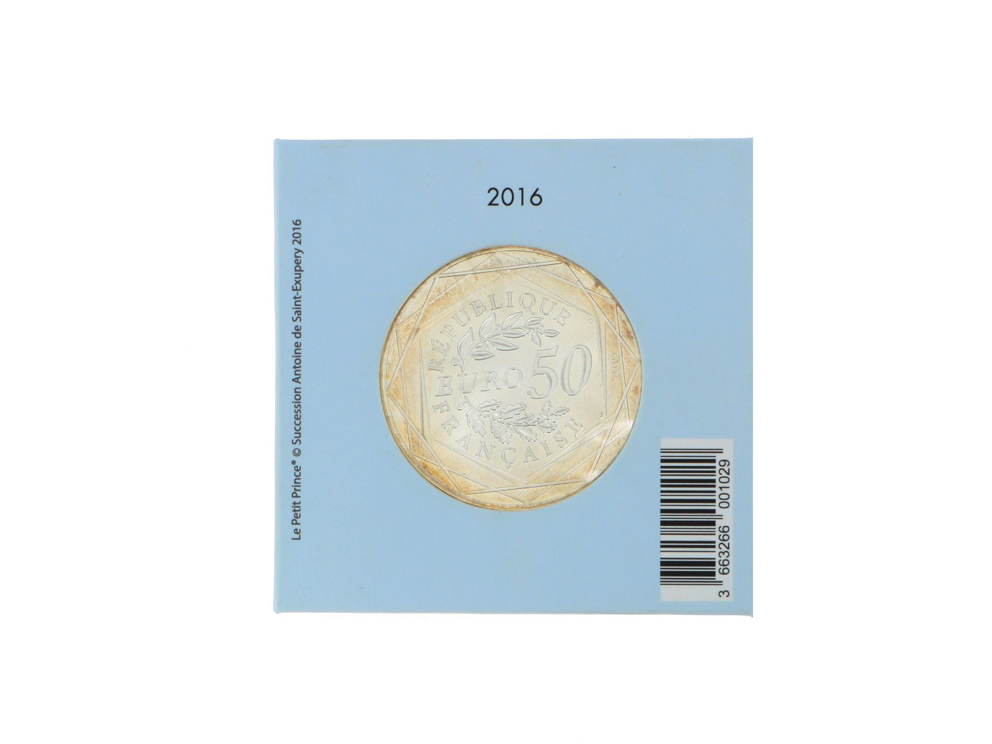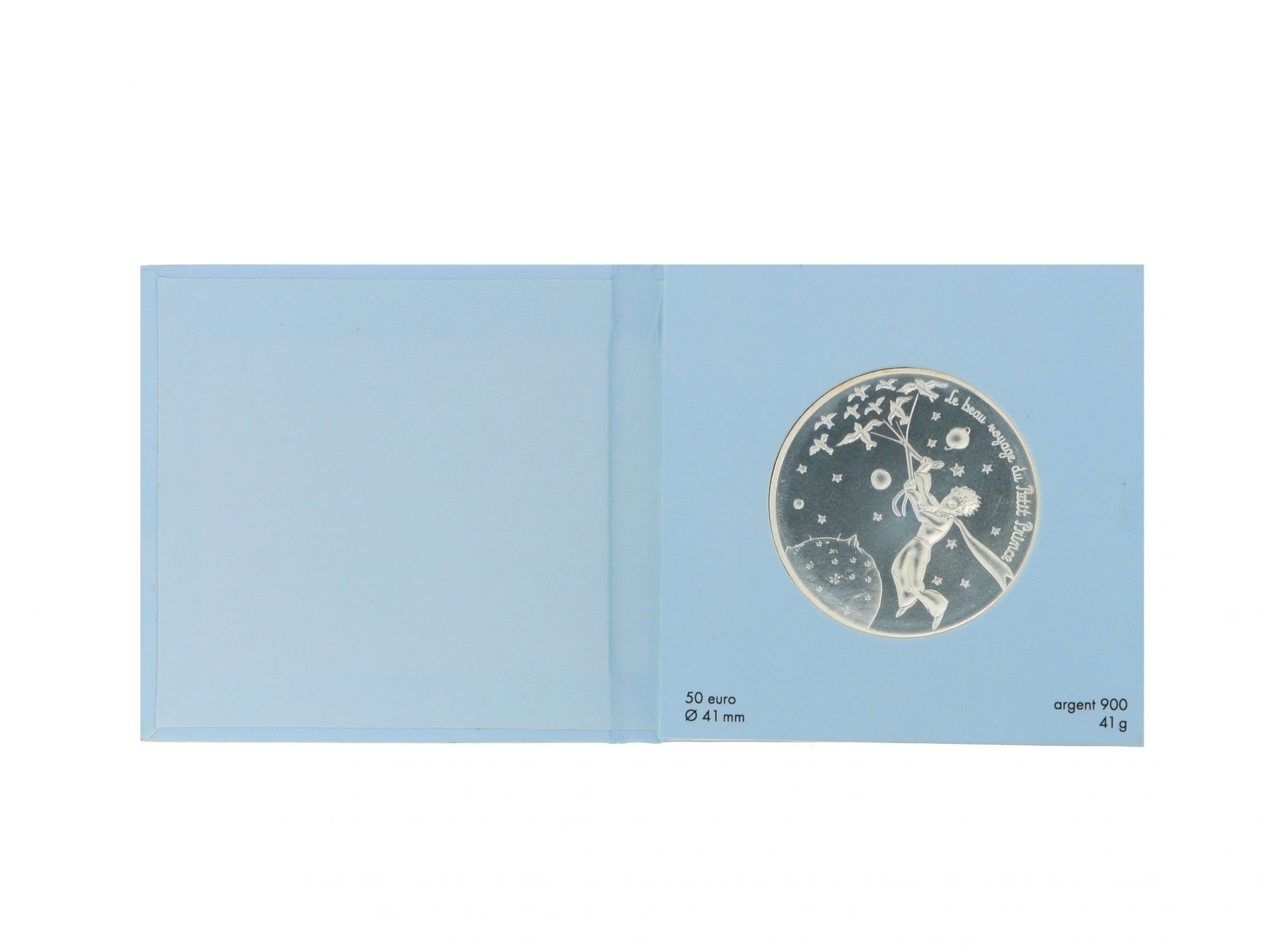 Lote 017 - Moeda Comemorativa de 50€ em Prata, da série "LE PETIT PRINCE", com tema “LE BEAU VOYAGE DU PETIT PRINCE”, com cunhagem de 2016, elaborada em PRATA 900. Estado de Conservação: Excelente. Contraste: Assinatura de artista. (ao abrigo do Decreto Lei 120/2017, artigo 3.º, alínea c). Medidas (Diâm): 4,1cm. Peso Total: 41g.