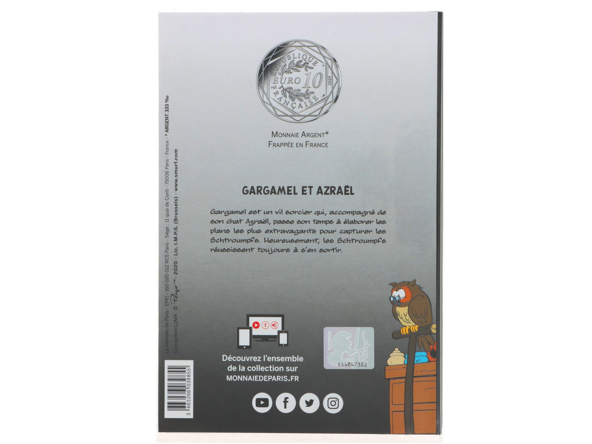 Lote 001 - Coleção de 20 Moedas Comemorativas de 10€ em Prata, da série "Les Schtroumpfs", com cunhagem de 2020, elaborada em PRATA 333%. Estado de Conservação: Excelente. Contraste: Assinatura de artista. (ao abrigo do Decreto Lei 120/2017, artigo 3.º, alínea c). Medidas (Diâm): 3cm. Peso Total: 17g.
