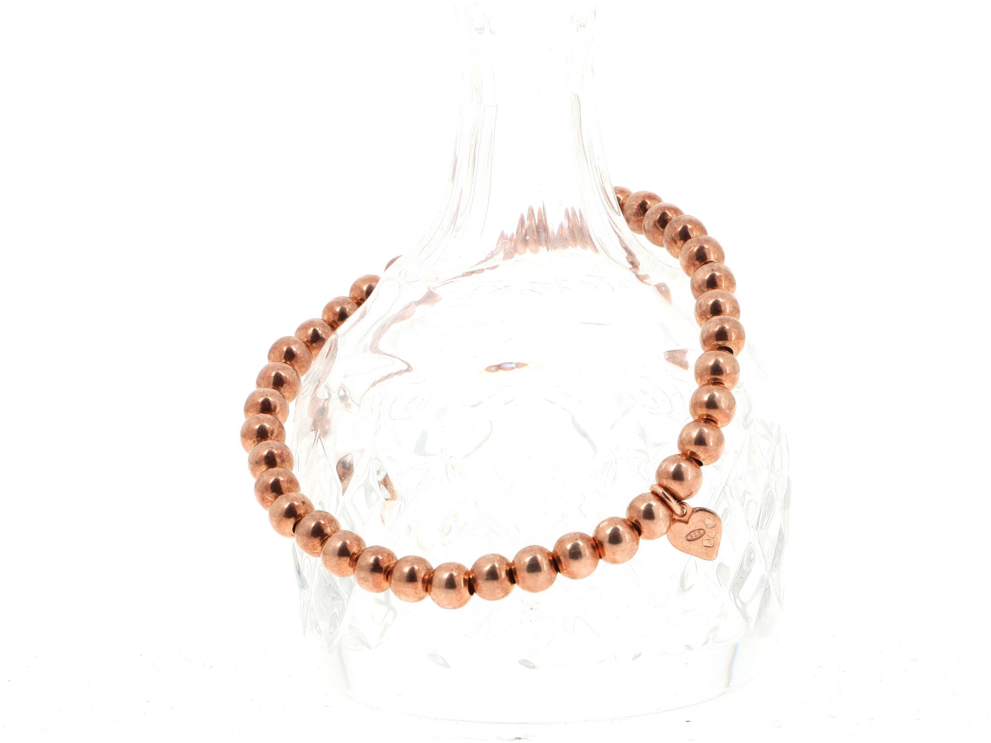 Lote 025 - Pulseira em Prata (Rose Gold) de bolinhas com pingente em coração, elaborado em PRATA 925. Estado de Conservação: Bom. Contraste: Cabeça de Águia virada à esquerda 925 (1985-2020 - ao abrigo do Decreto Lei 120/2017, artigo 3.º, alínea y). Medidas (CxL): 8,5*7cm. Peso Total: 3,65gr.