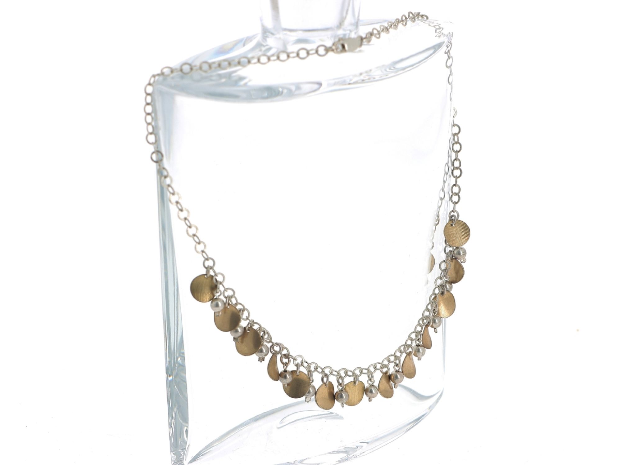 Lote 073 - Fio com pendentes, elaborados em PRATA 925. Estado de Conservação: Bom, sinais de uso. Contraste: Marca 925. (PRATA - ao abrigo do Decreto Lei 120/2017, artigo 3.º, alínea x). Medidas (Comp): 41cm. Peso Total: 15,77g.