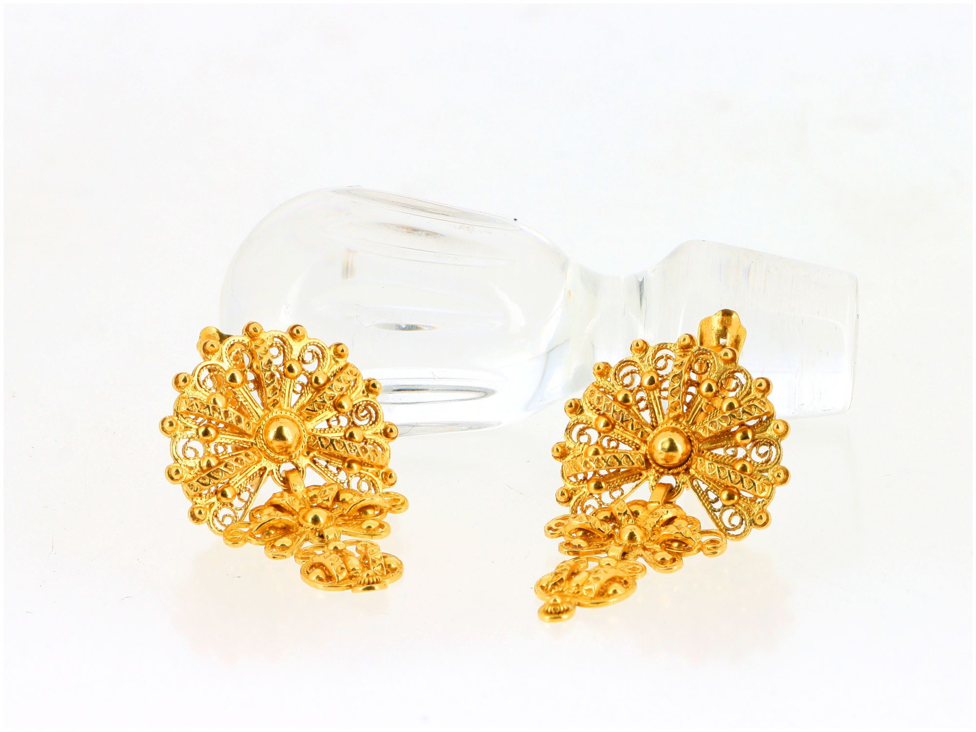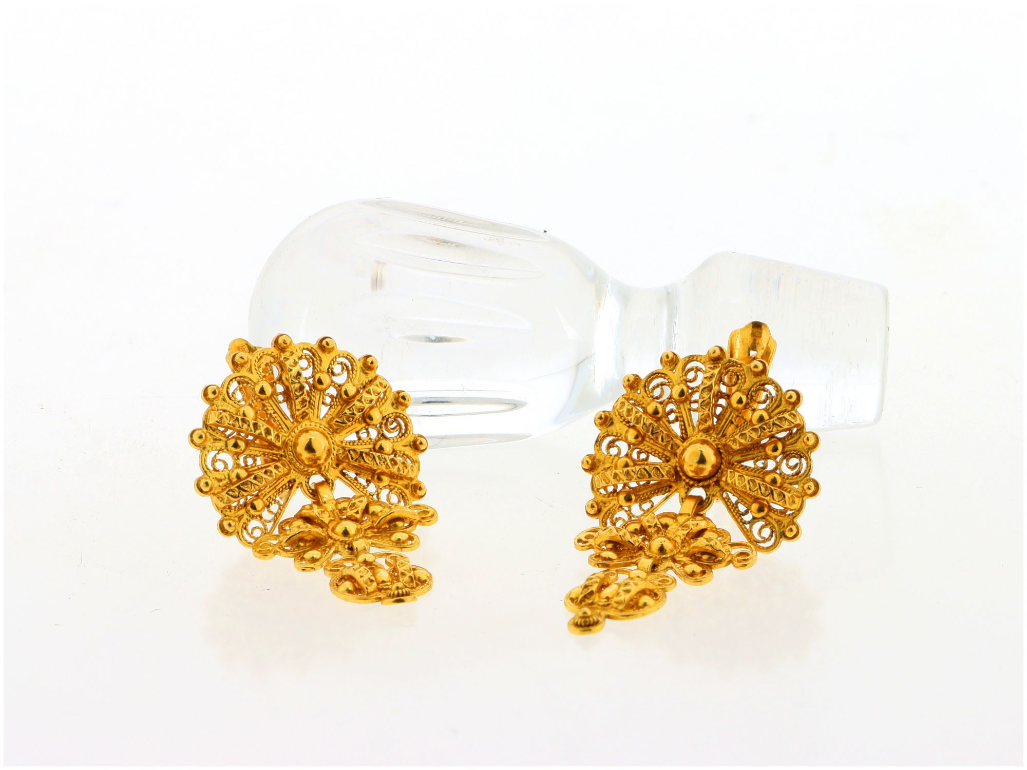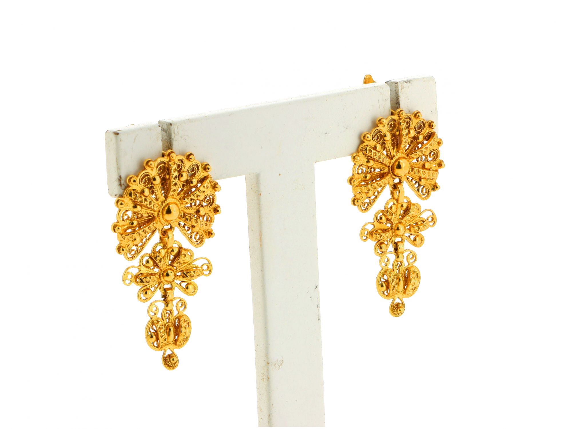 Lote 012 - Brincos Laça em Ouro, trabalhados à mão em FILIGRANA Portuguesa, elaborado em OURO 19,2 QUILATES. Estado de Conservação: Excelente. Contraste: Cabeça de Veado 800 (OURO - 1985-2020, ao abrigo do Decreto Lei 120/2017, artigo 3.º, alínea y). Medidas (CxL): 3,2*1,9cm. Peso Total: 6,98g.