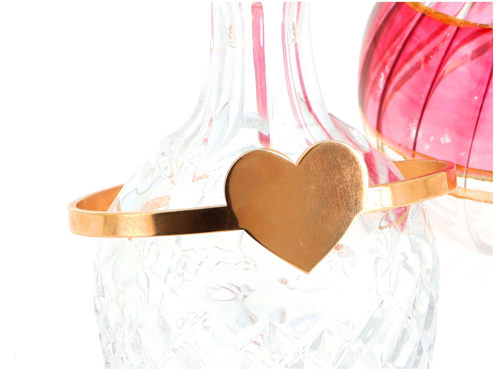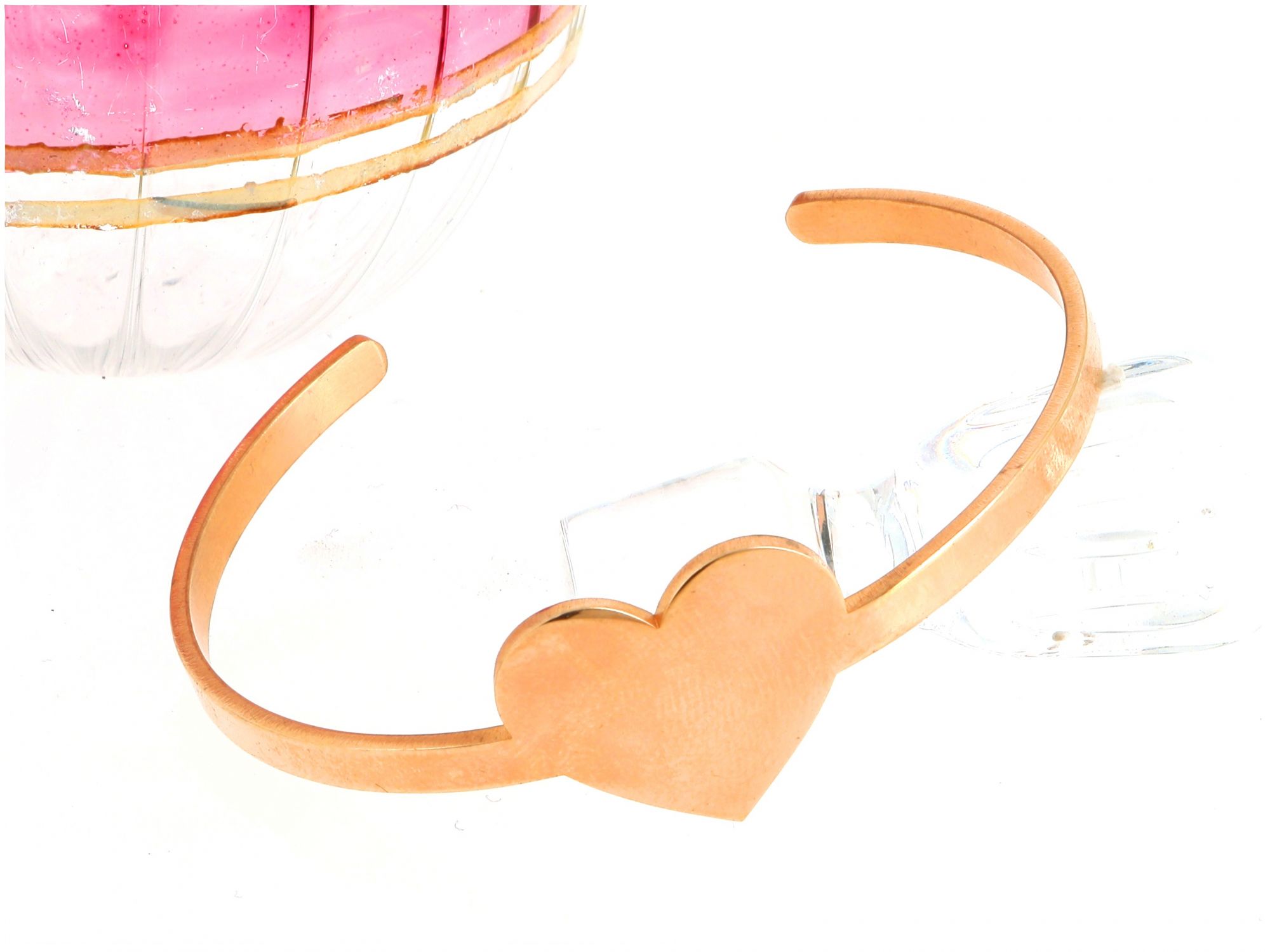 Lote 003 - Pulseira em Prata Dourada de punho aberto com centro em Coração, elaborado em PRATA 925. Estado de Conservação: Bom, sinais de uso. Contraste: sem marcas de contraste, com mais de 50 anos ao abrigo do Decreto Lei 120/2017, artigo 2.º, alínea c). Medidas (LxA): 6,3*5cm. Peso Total: 9,58g.