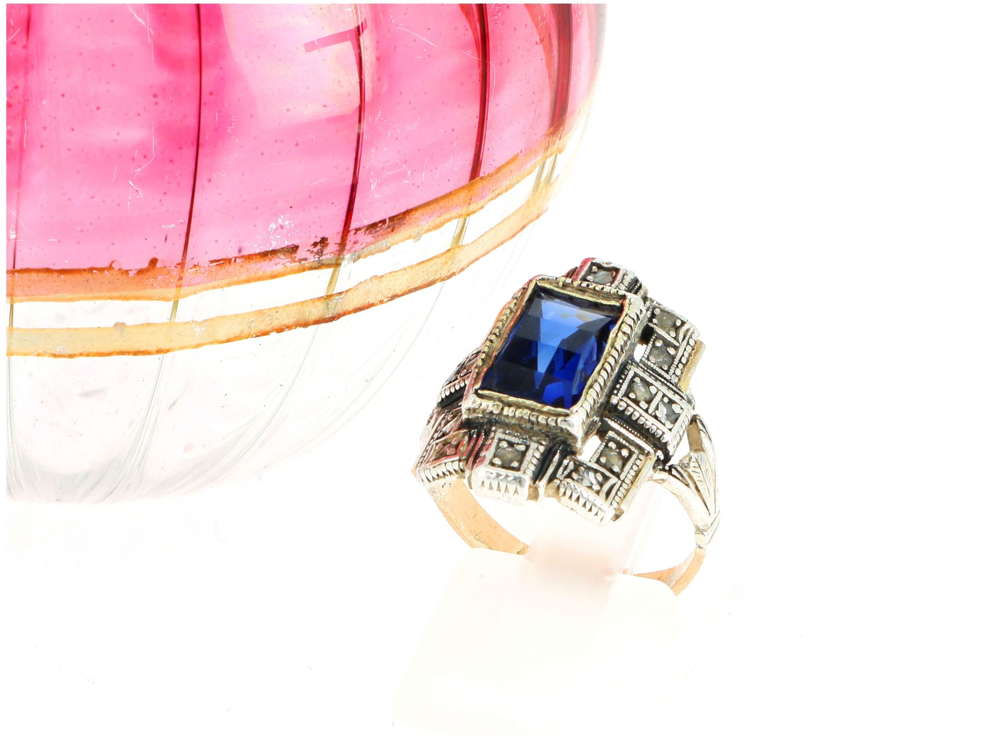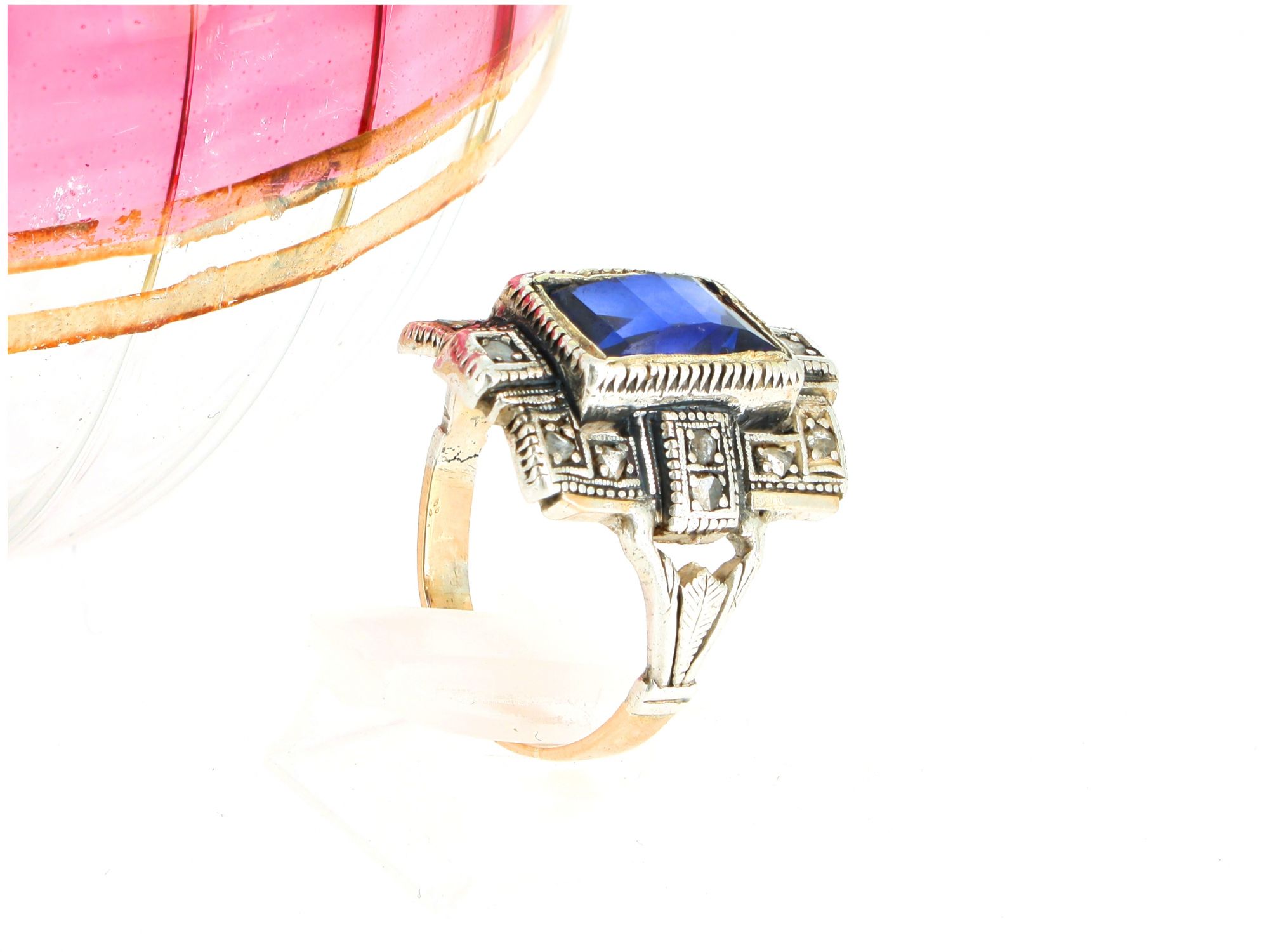 Anel ANTIGO em OURO 19,2k e Prata - SAFIRA e DIAMANTES