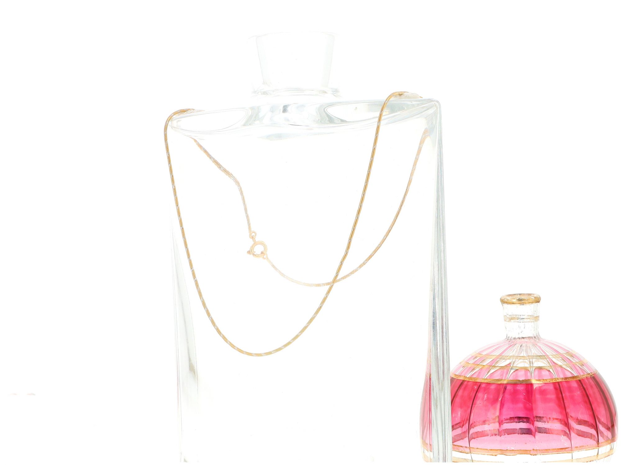 Lote 008 - Fio elaborado em OURO Bicolor de 19,2 Quilates, trabalhado com detalhes em OURO branco que lhe conferem um brilho especial. Estado de Conservação: Excelente. Contraste: Cabeça de Veado 800 (OURO - 1985-2020, ao abrigo do Decreto Lei 120/2017, artigo 3.º, alínea y). Medidas (Comp): 46cm. Peso Total: 6,37g.