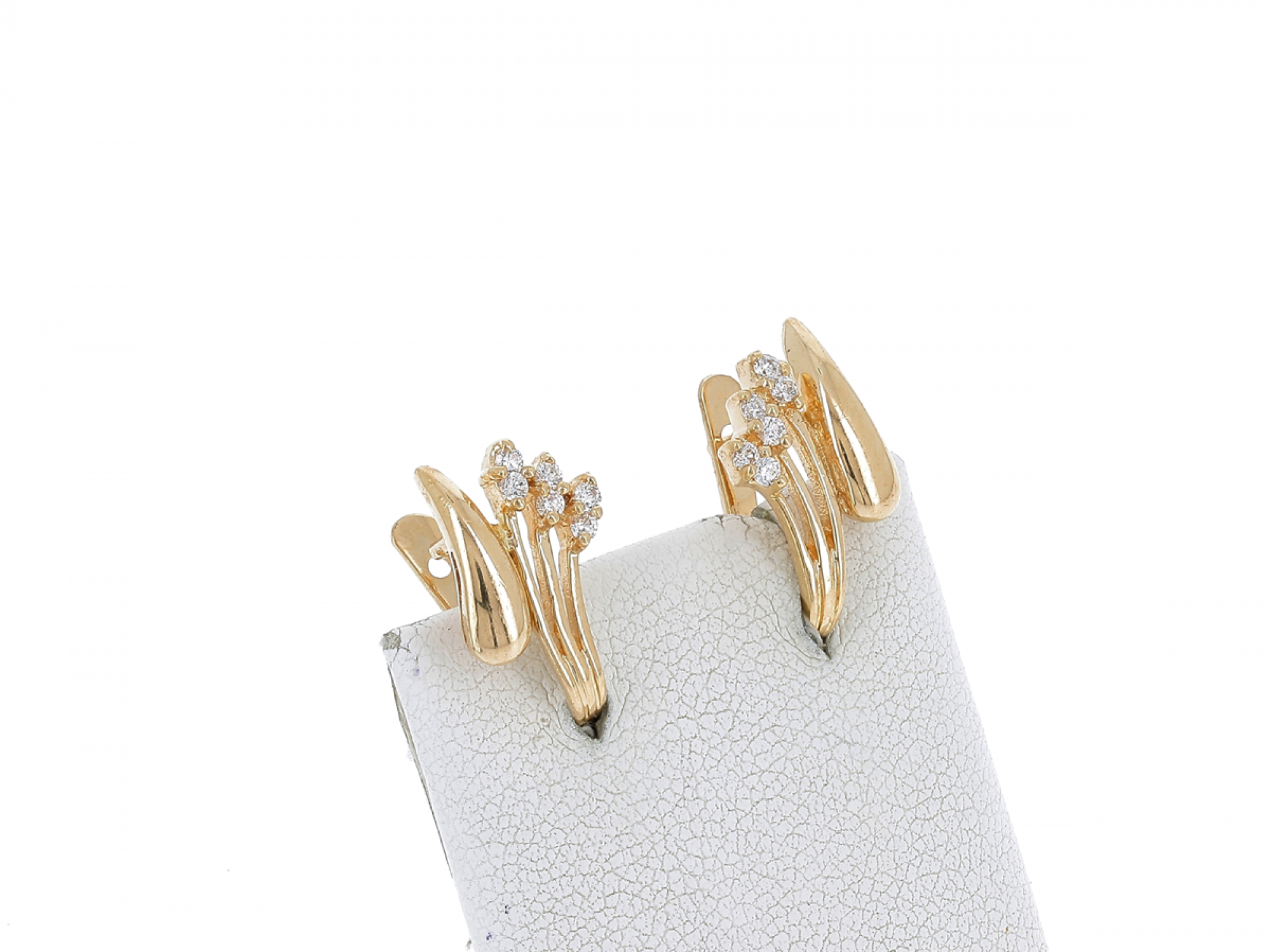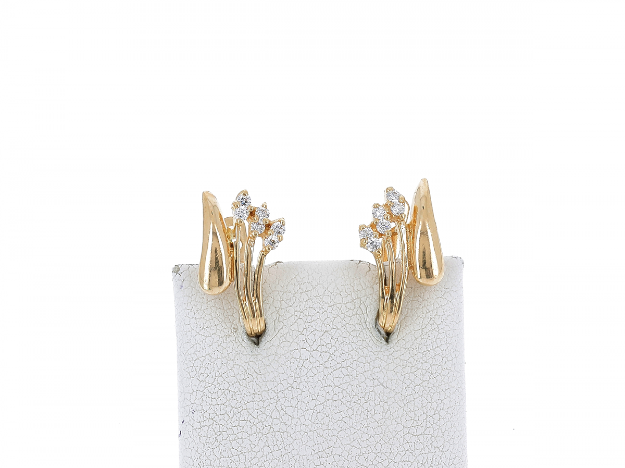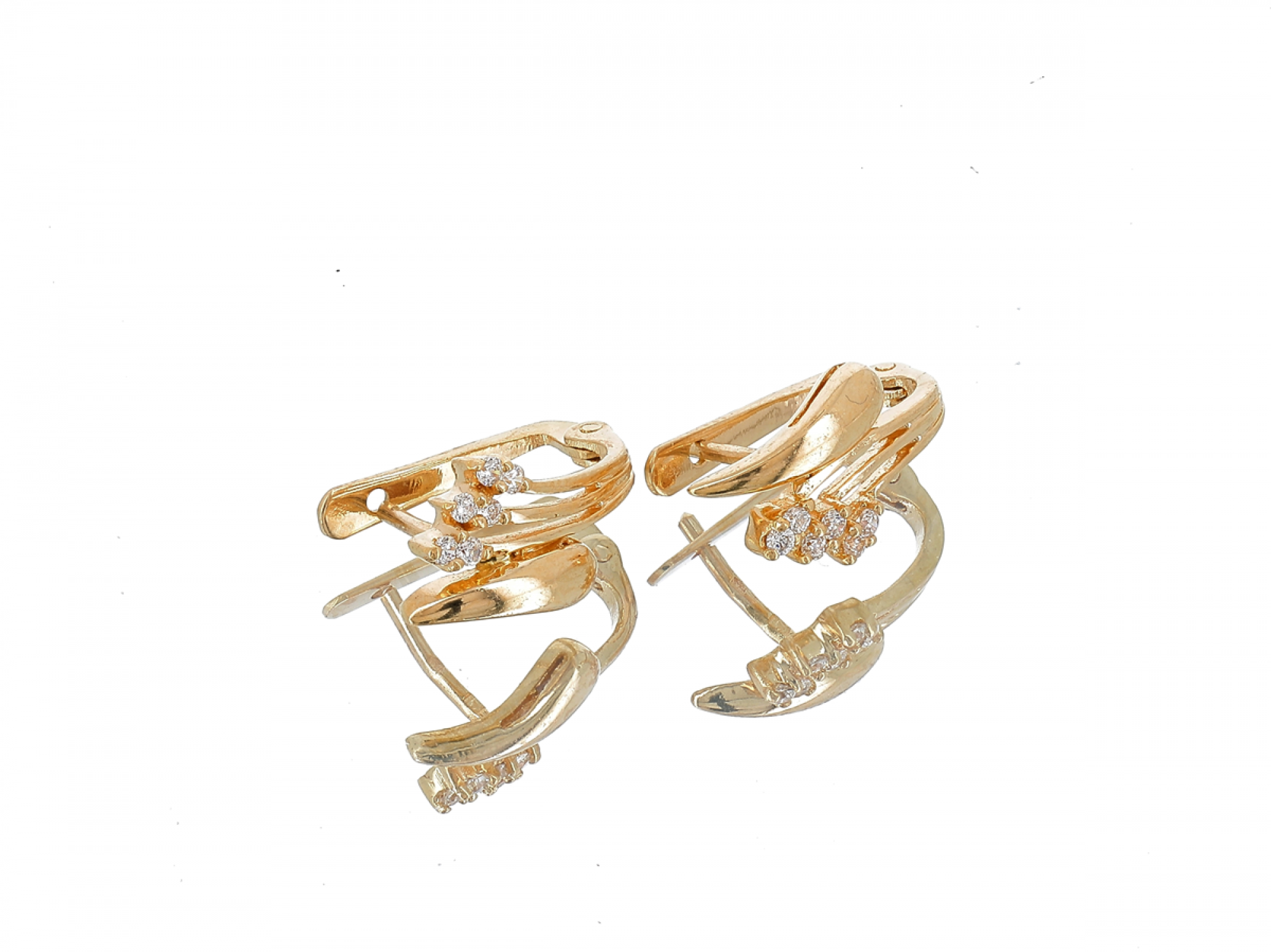 Lote 046 - Par de brincos elaborados em OURO 19,2 Quilates cravejados com zircónias em talhe redondo brilhante Estado de Conservação: Muito Bom. Contraste: Cabeça de Veado 800 (OURO - 1985-2020, ao abrigo do Decreto Lei 120/2017, artigo 3.º, alínea y). Medidas (CxL): 1,74x0,95cm. Peso Total: 4g.