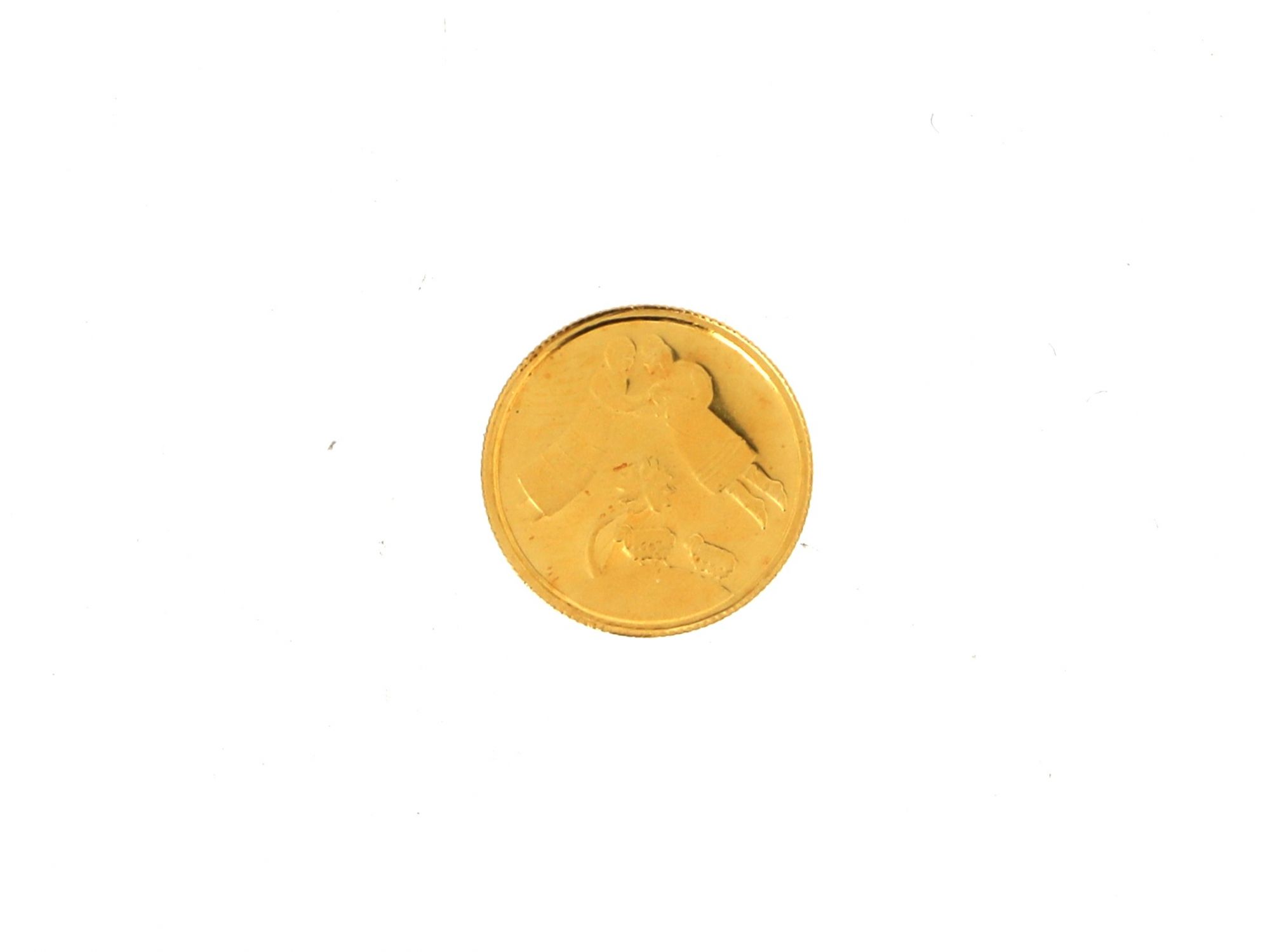 Lote 023 - Moeda 1 Novo SHEQEL em Ouro de Israel, que faz parte da série “HISTÓRIA DA BÍBLIA” e apresenta o tema de Jacob e Raquel, elaborado em OURO 24 QUILATES. Estado de Conservação: Muito Bom, ligeiros sinais de uso. Contraste: Marca 999,9. (OURO - ao abrigo do Decreto Lei 120/2017, artigo 3.º, alínea x). Medidas (Diâm): 1,4cm. Peso Total: 1,27g.