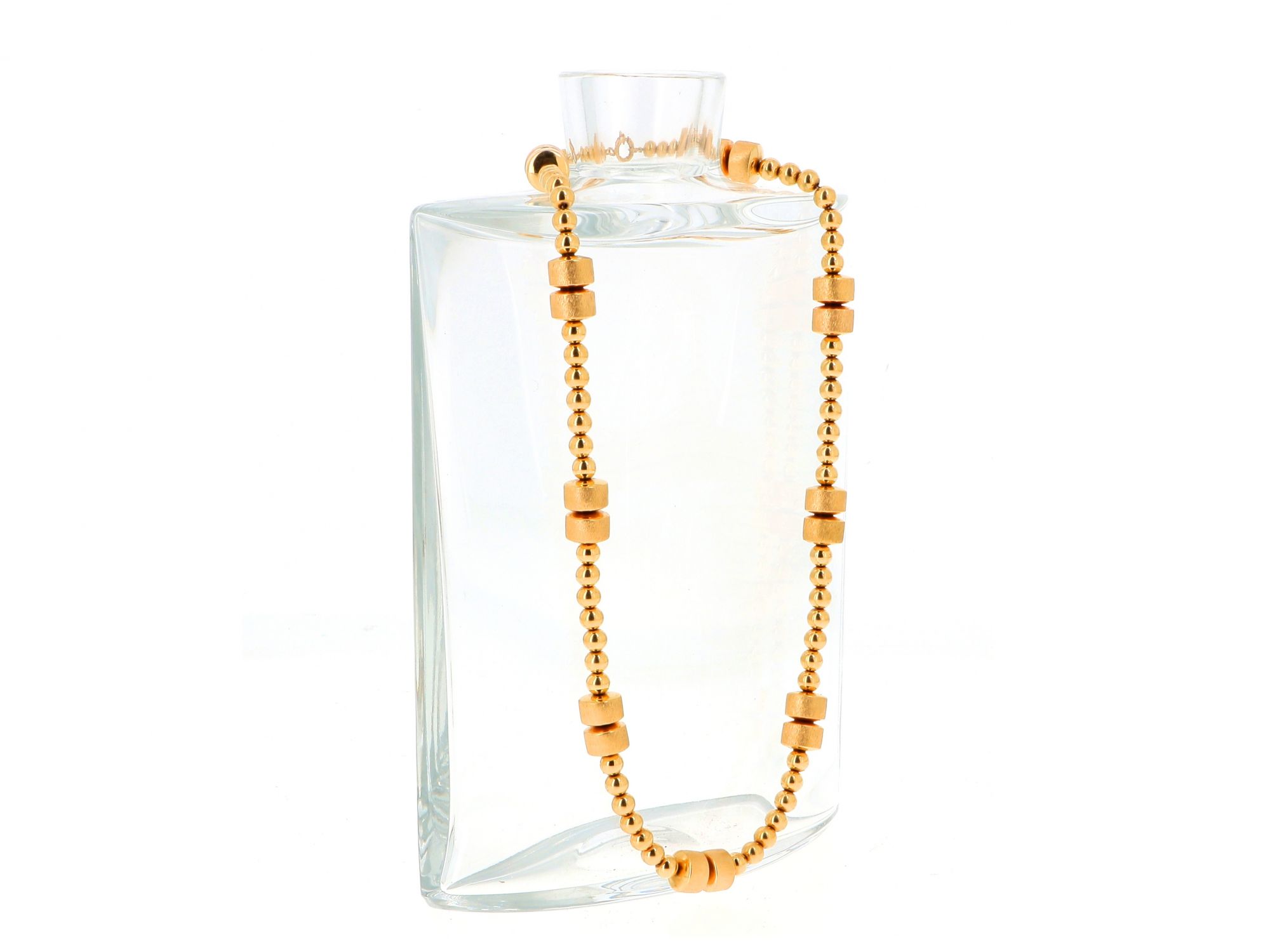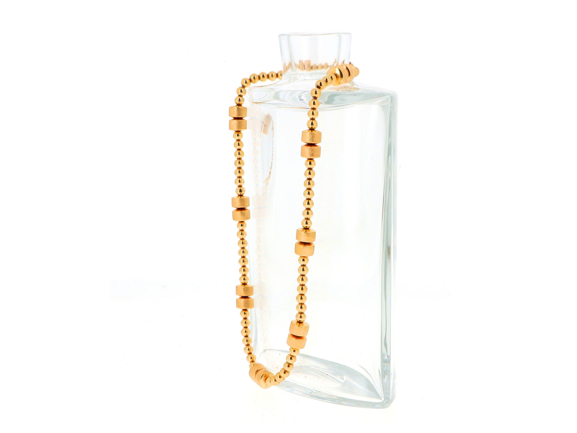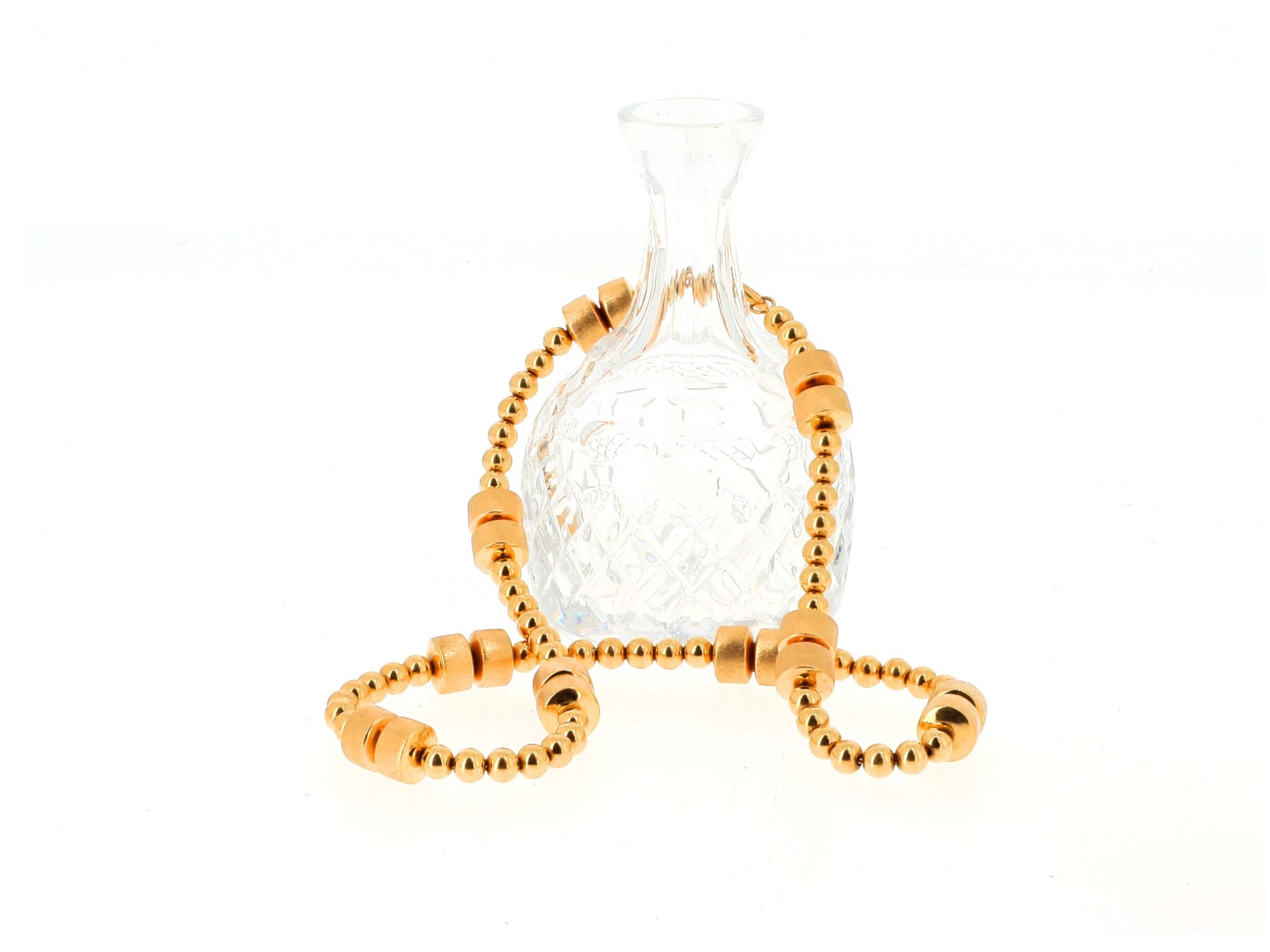 Lote 002 - Gargantilha em Ouro de Bolas polidas intercaladas com duas esferas escovadas ocas e leves e com fecho bóia, elaborado em OURO 19,2 QUILATES. Estado de Conservação: Excelente. Contraste: Cabeça de Veado 800 (OURO - 1985-2020, ao abrigo do Decreto Lei 120/2017, artigo 3.º, alínea y). Medidas (CxL): 43,2*1cm. Peso Total: 28,64g.