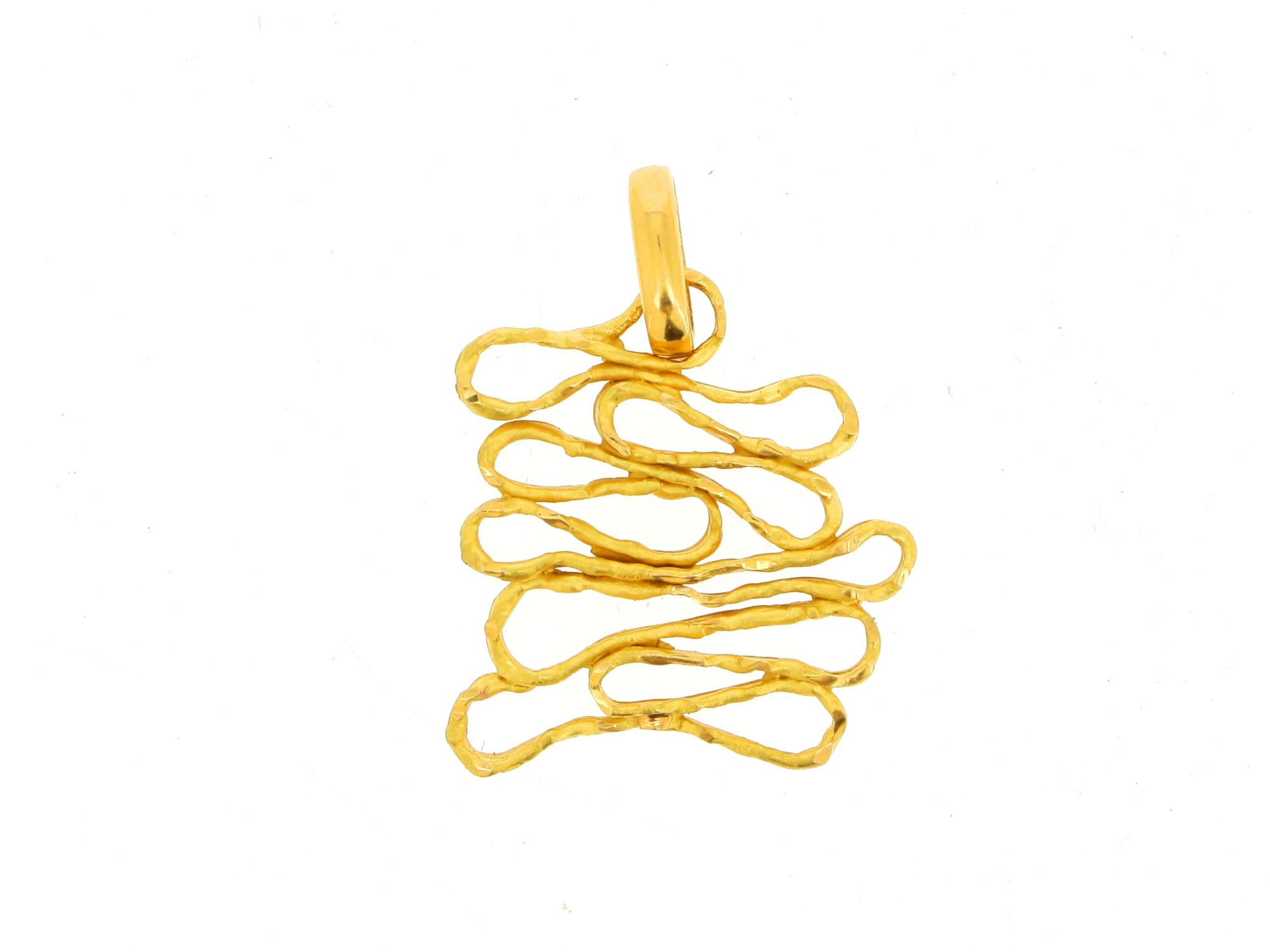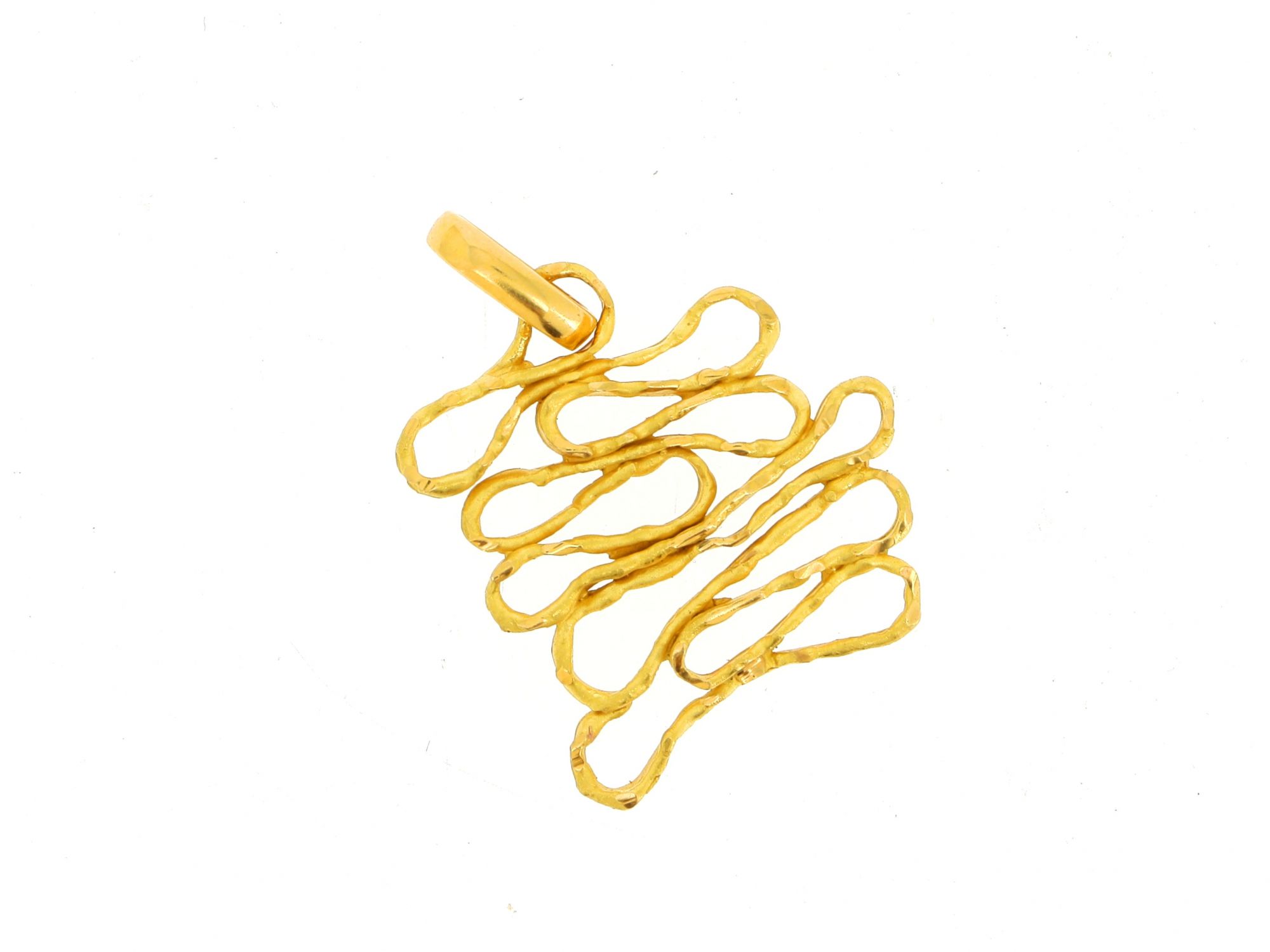 Lote 020 - Medalha em Ouro martelado de design abstrato, elaborado em OURO 19,2 QUILATES.  Estado de Conservação: Excelente. Contraste: Cabeça de Veado 800 (OURO - 1985-2020, ao abrigo do Decreto Lei 120/2017, artigo 3.º, alínea y). Medidas (CxL): 4*2,58cm. Peso Total: 11,02g.