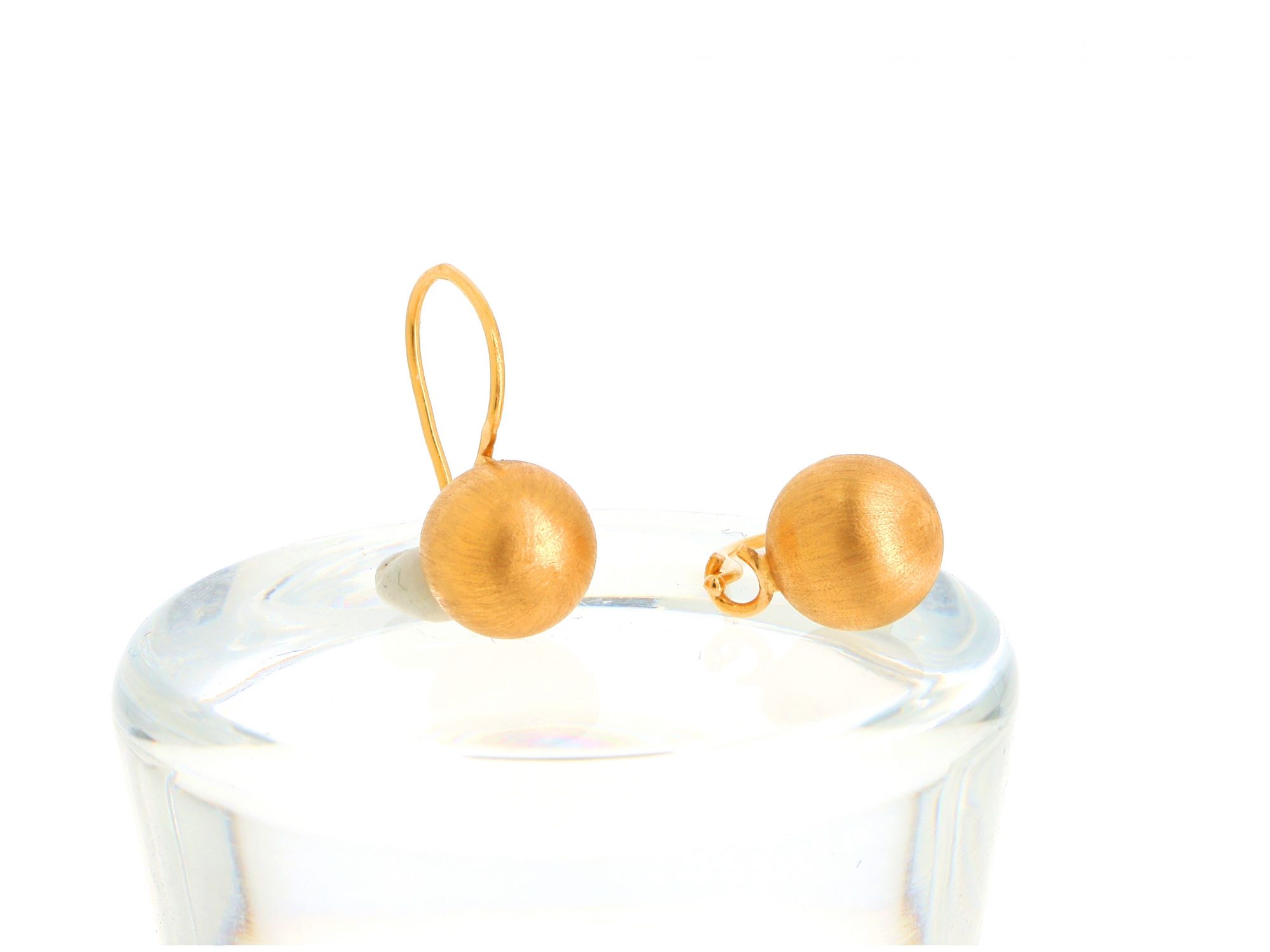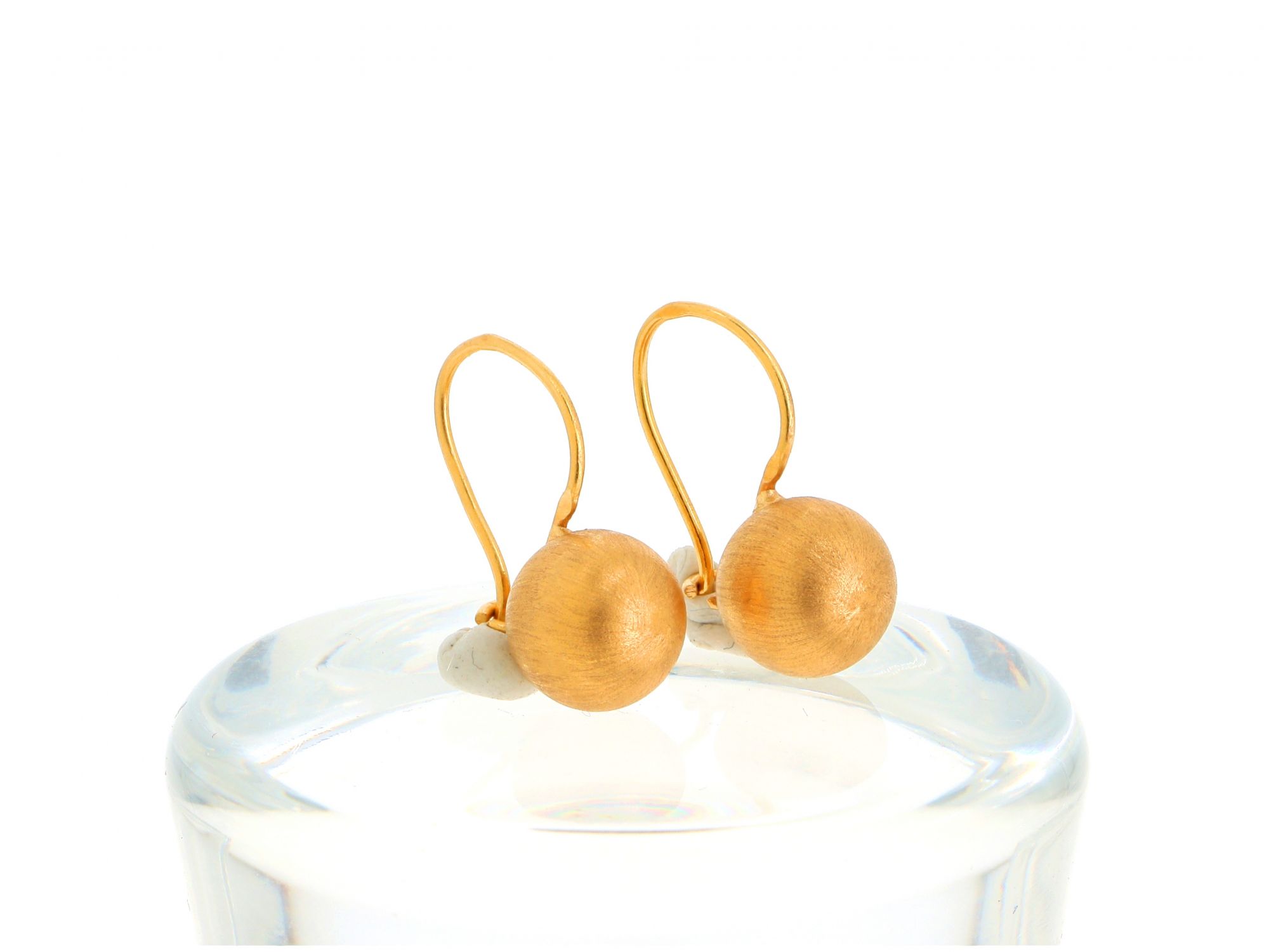 Lote 022 - Brincos em Ouro de gancho com bola escovada, elaborado em OURO 19,2 QUILATES. Estado de Conservação: Muito Bom. Contraste: Cabeça de Veado 800 (OURO - 1985-2020, ao abrigo do Decreto Lei 120/2017, artigo 3.º, alínea y). Medidas (CxL): 1,7*0,9cm. Peso Total: 1,65g.