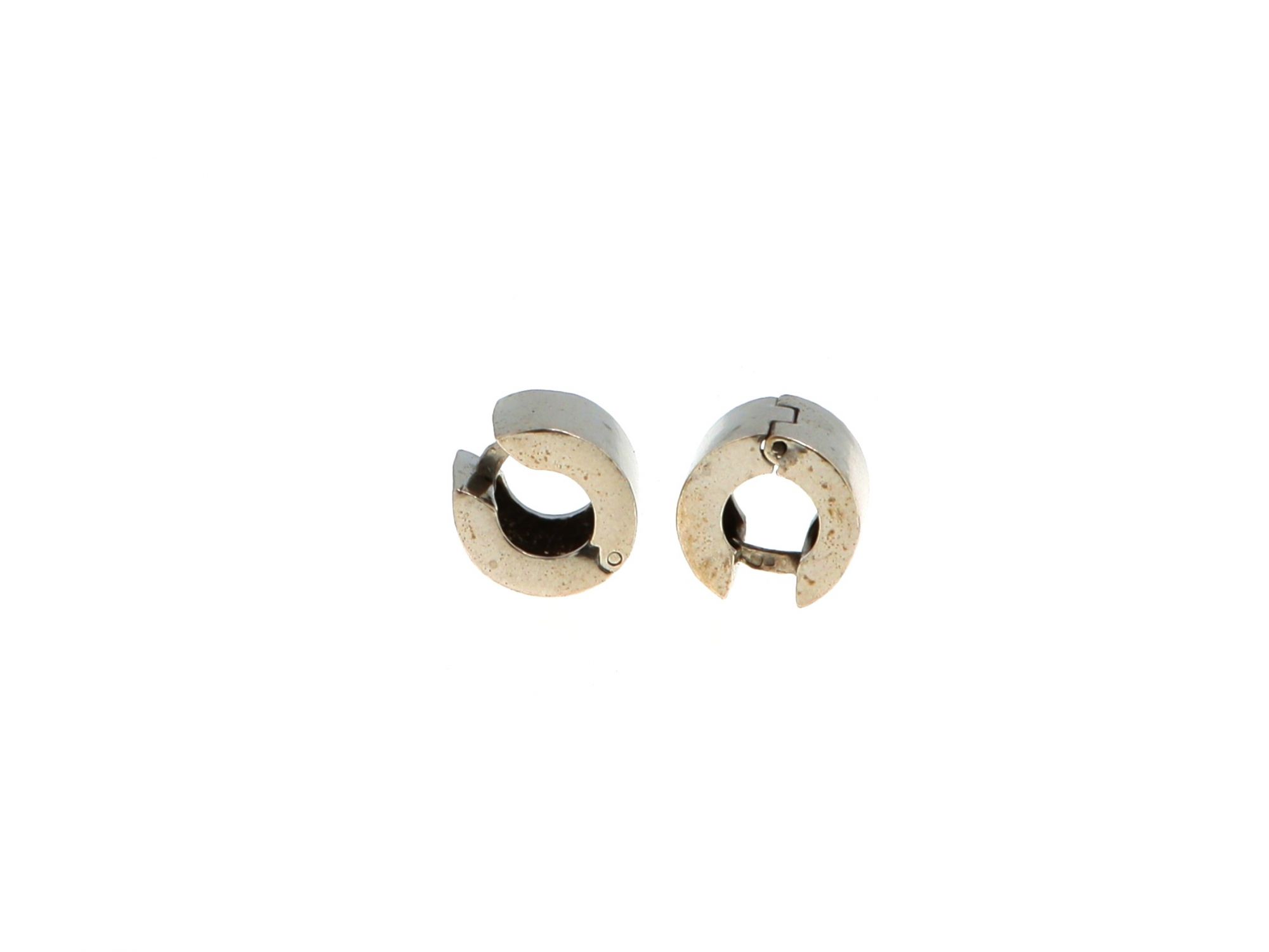 Lote 044 - Argolas em Prata largas polidas, elaborado em PRATA 925. Estado de Conservação: Bom, sinais de uso. Contraste: Cabeça de Águia virada à esquerda 925 (1985-2020 - ao abrigo do Decreto Lei 120/2017, artigo 3.º, alínea y). Medidas (CxL): 1,5*1,1cm. Peso Total: 11,42g.