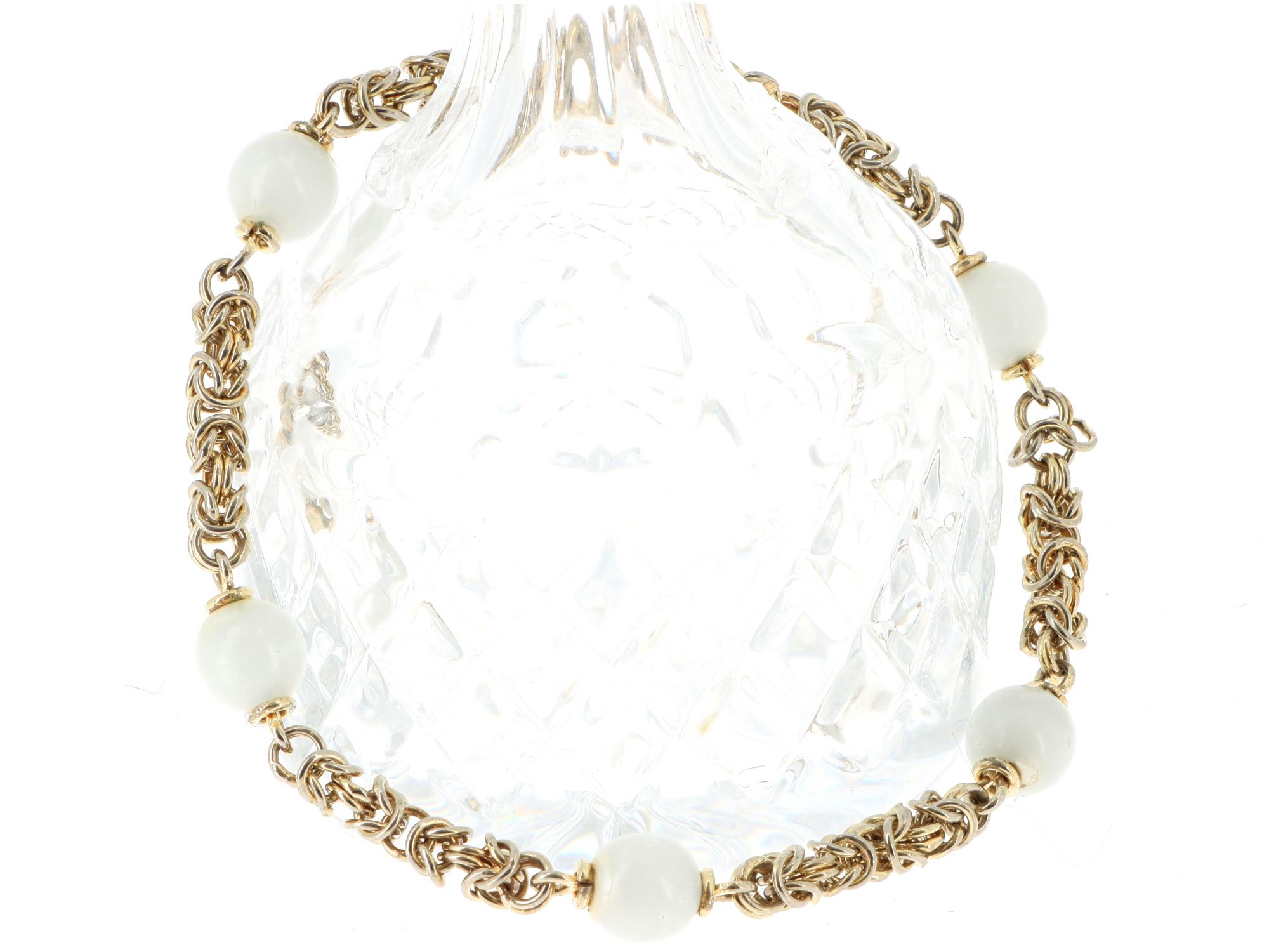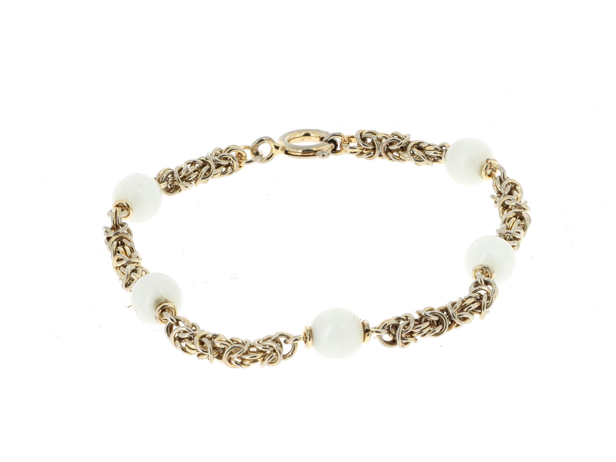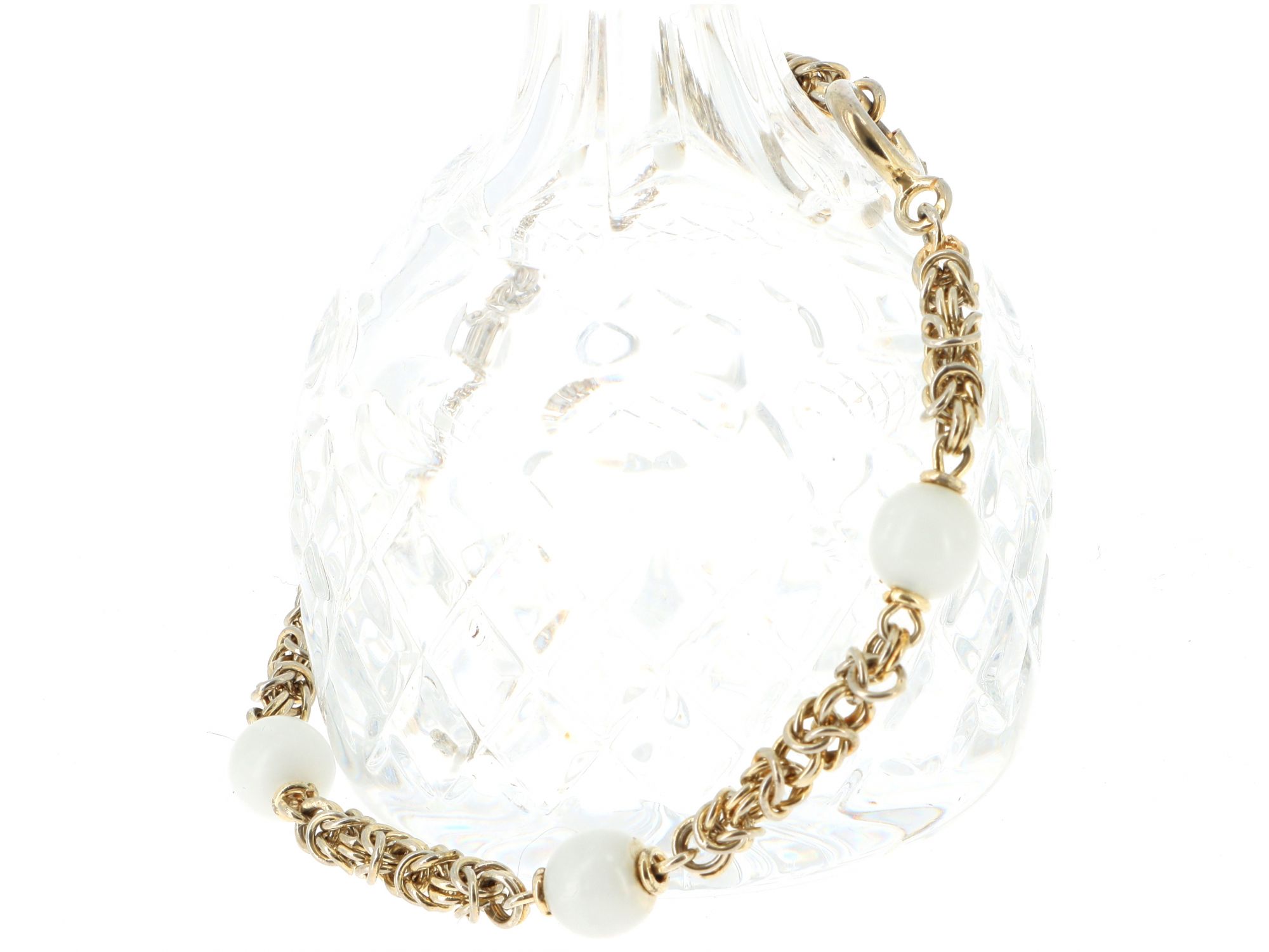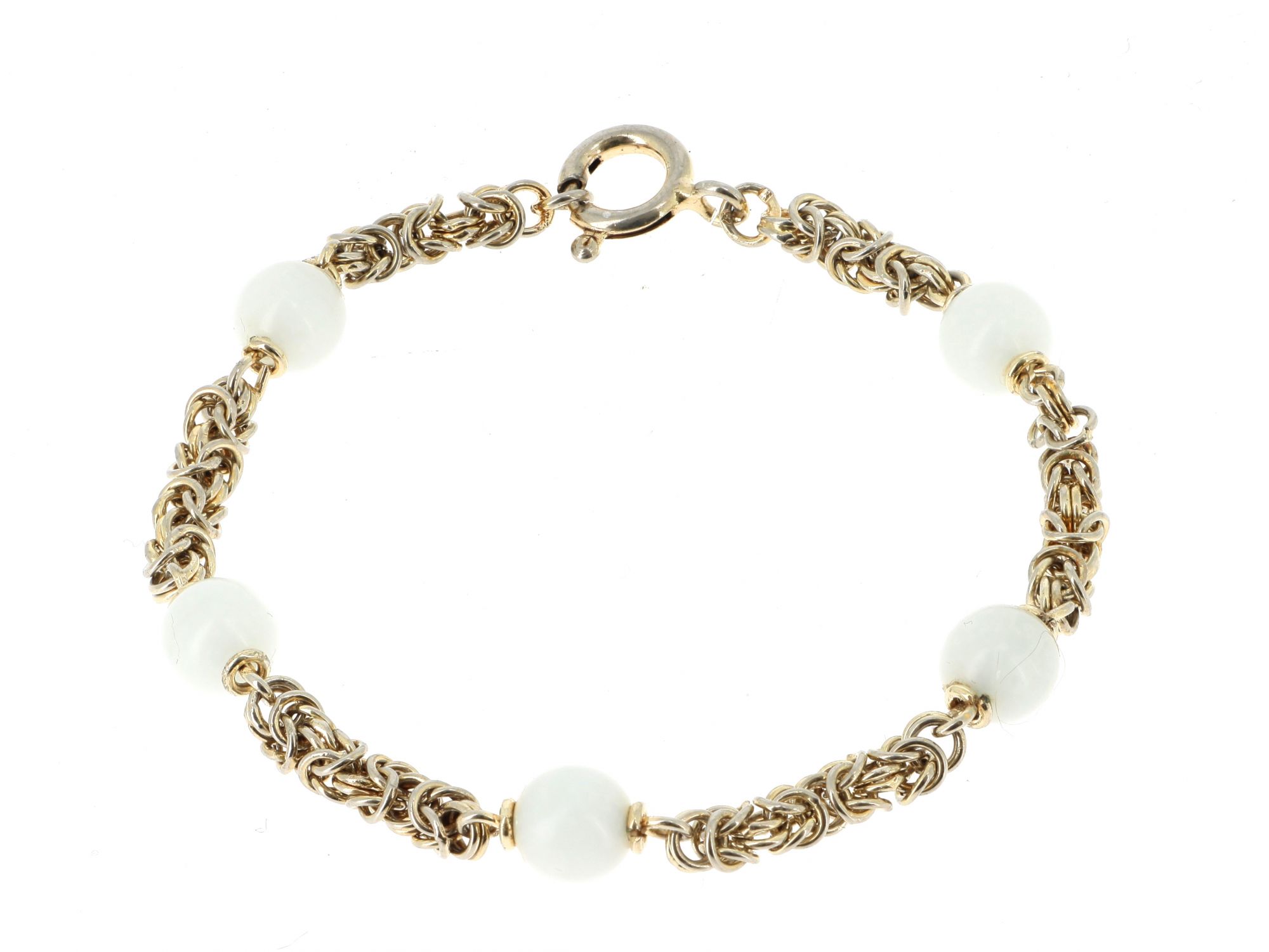 Lote 004 - Pulseira em Prata de malha cordão baiano intercalado com contas brancas e com fecho bóia, elaborado em PRATA 835. Estado de Conservação: Bom, sinais de uso. Contraste: Cabeça de Águia virada à direita 835 (1985-2020 - ao abrigo do Decreto Lei 120/2017, artigo 3.º, alínea y). Medidas (CxL): 20,6*0,8cm. Peso Total: 11,91g.