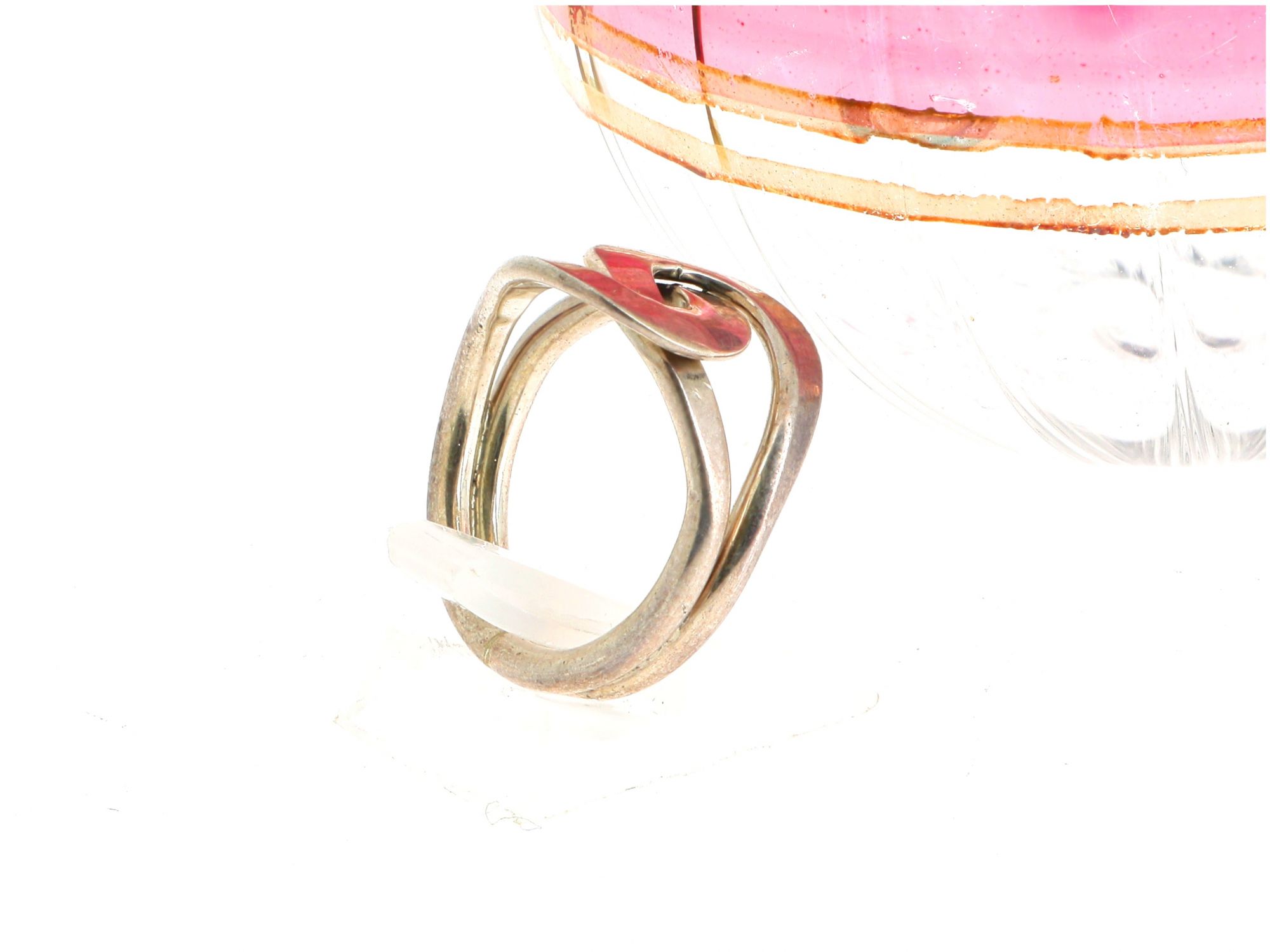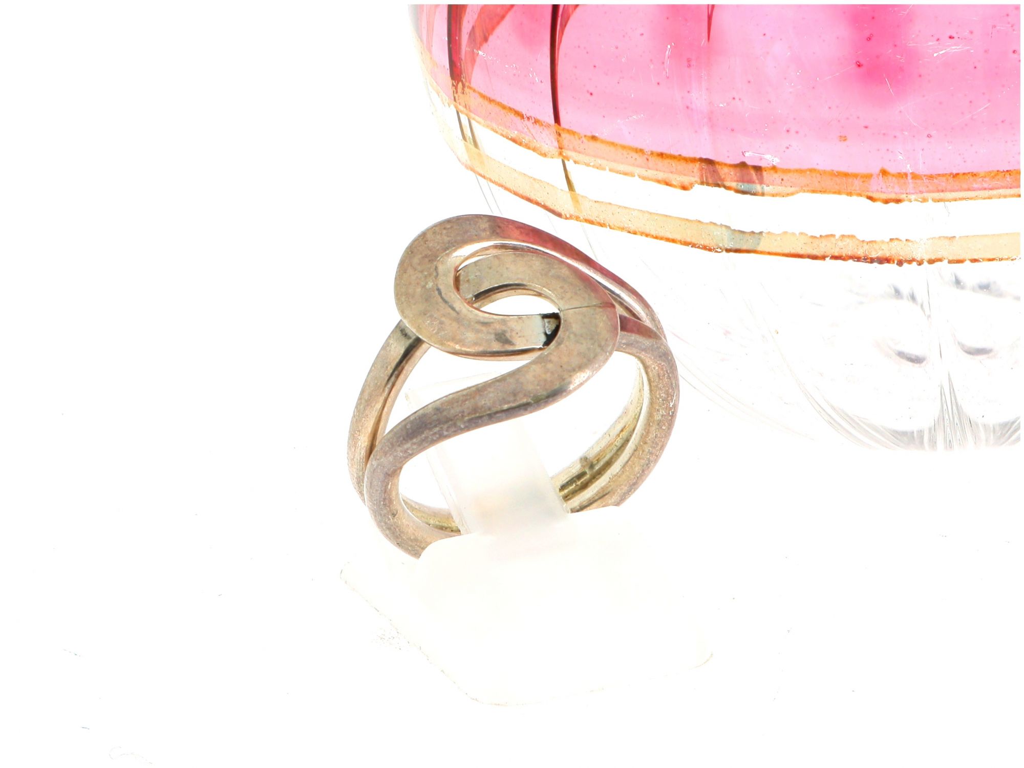 Lote 056 - Anel em Prata duplo com topo arredondado e cruzado, elaborado em PRATA 925. Estado de Conservação: Bom, sinais de uso. Contraste: sem marcas de contraste, com mais de 50 anos ao abrigo do Decreto Lei 120/2017, artigo 2.º, alínea c). Tam.: 15. Medidas (CxLxA): 2,1*1,7*2,2cm. Peso Total: 6,3g.
