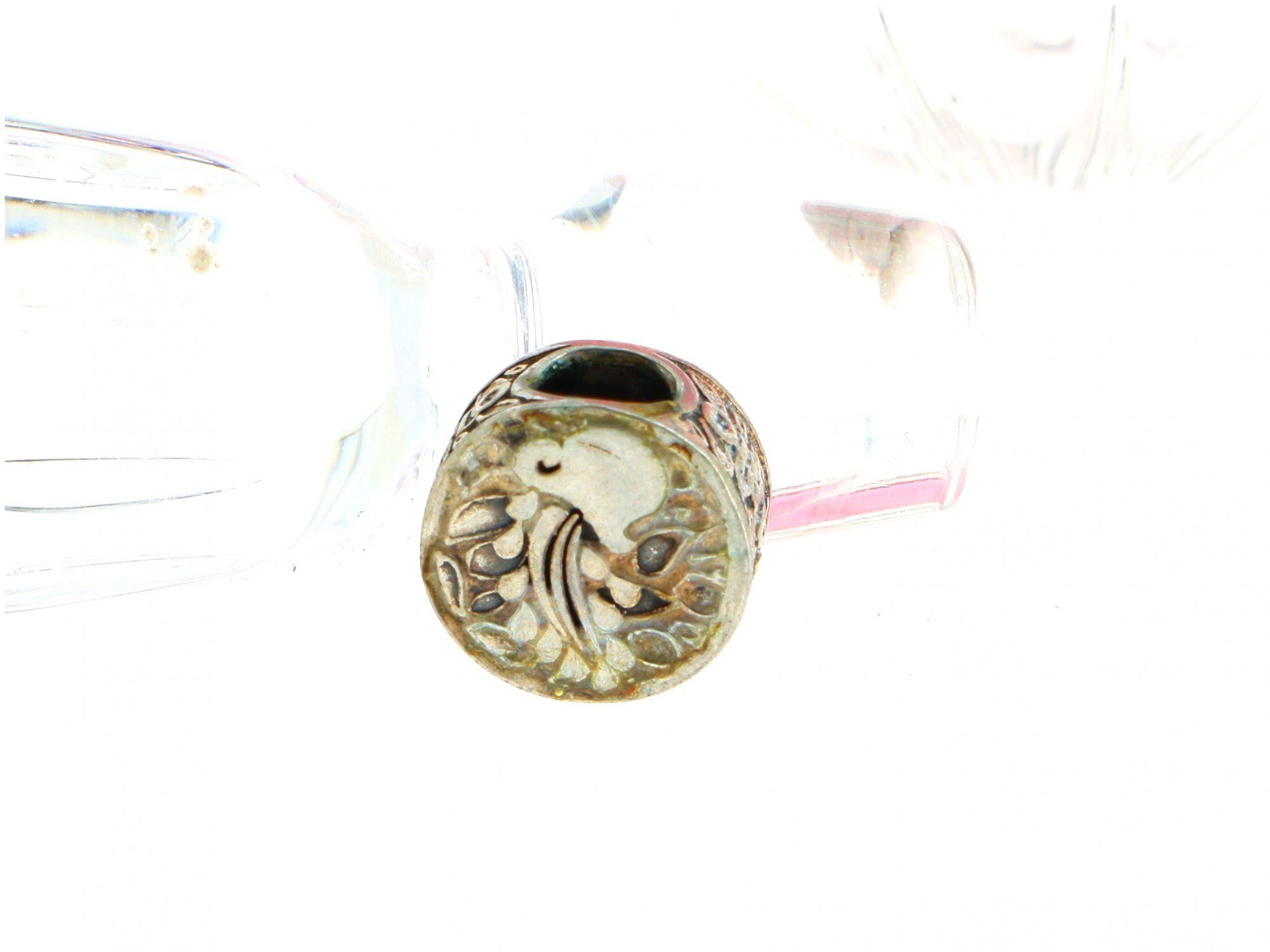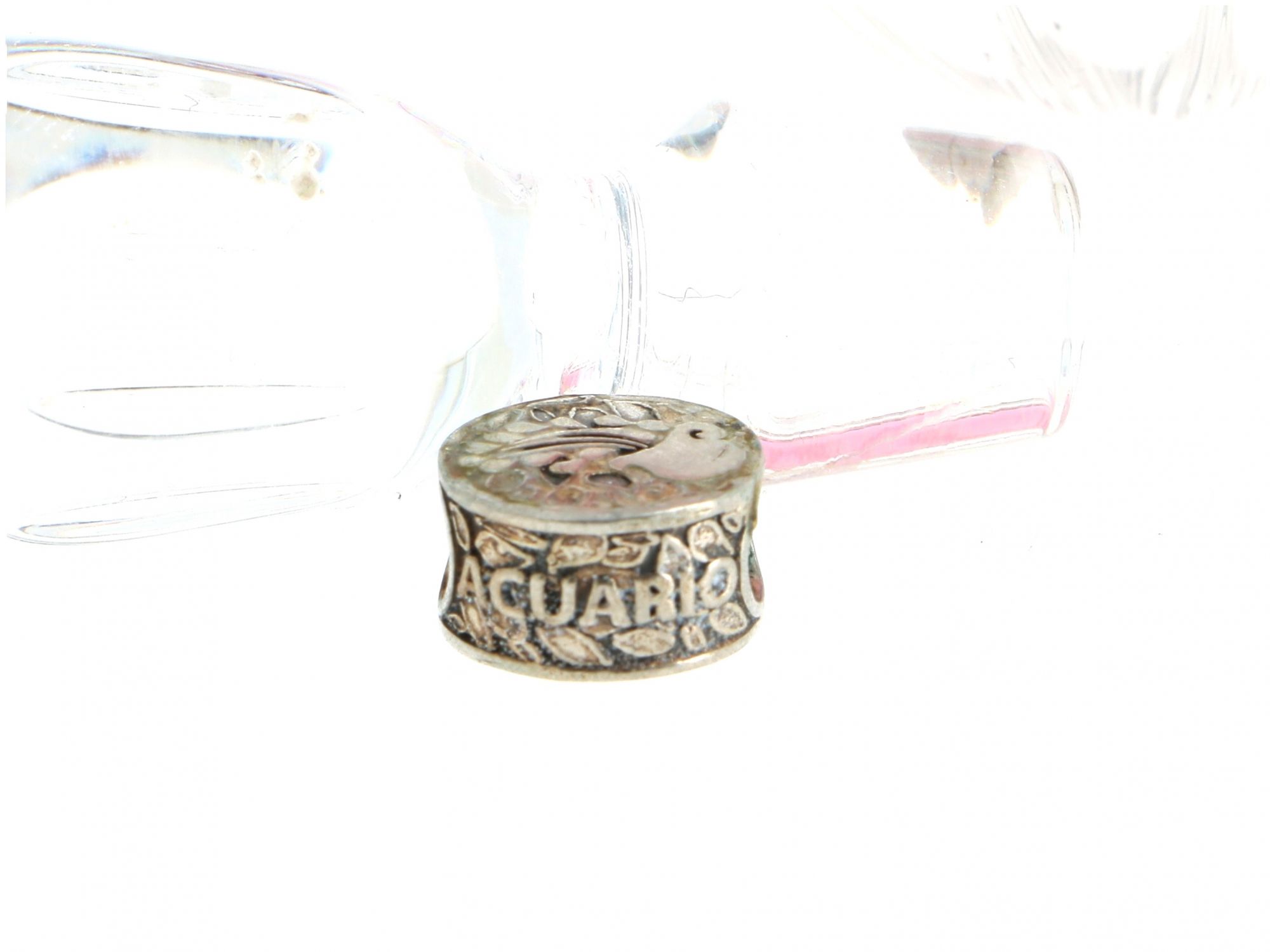 Lote 028 - Conta em Prata redonda com imagem de aquário e escrita no meio com “ACUARIO”, elaborado em PRATA 925. Estado de Conservação: Bom, sinais de uso. Contraste: sem marcas de contraste, com mais de 50 anos ao abrigo do Decreto Lei 120/2017, artigo 2.º, alínea c). Medidas (Diâm): 1,3cm. Peso Total: 3,21g.