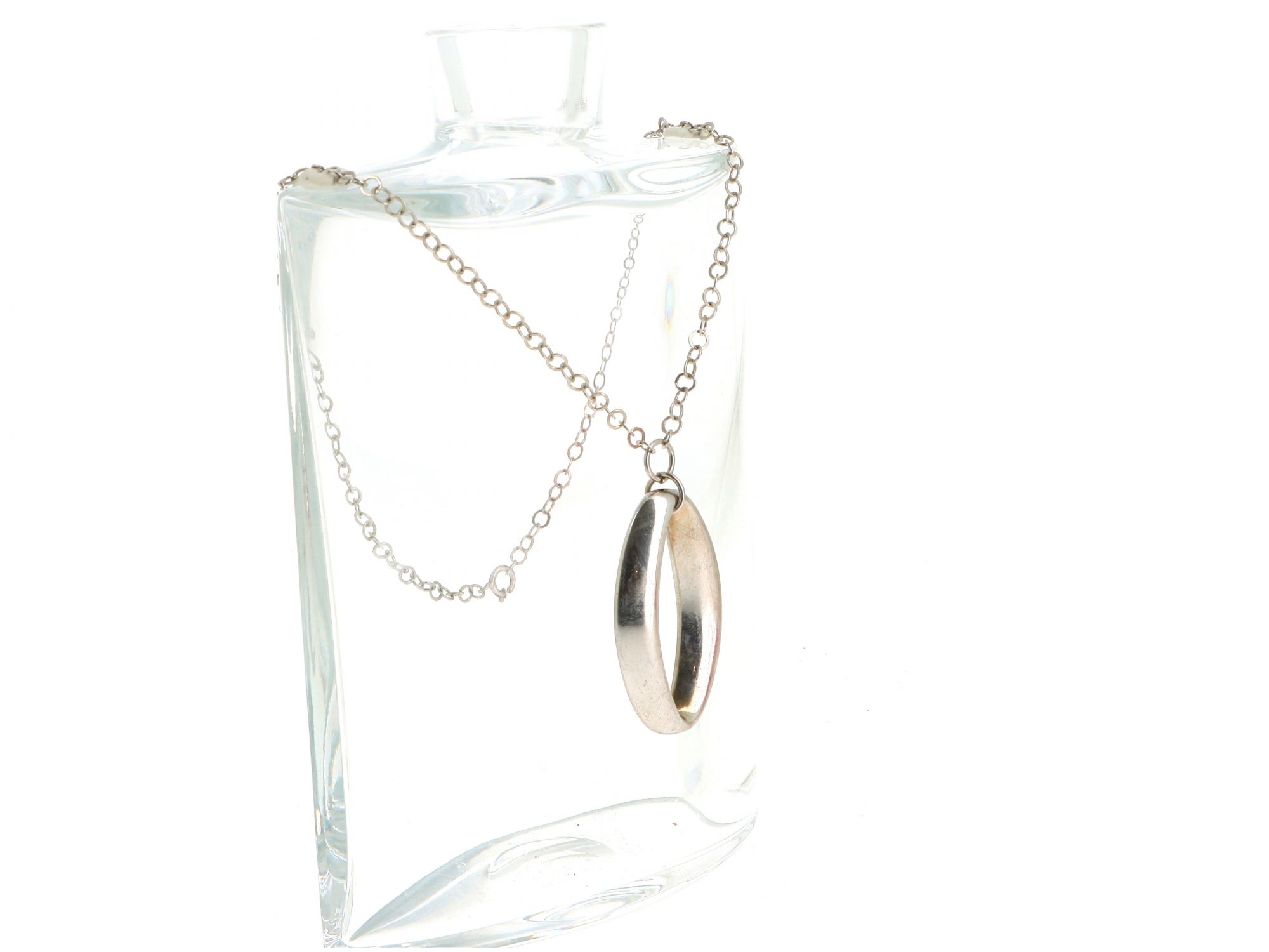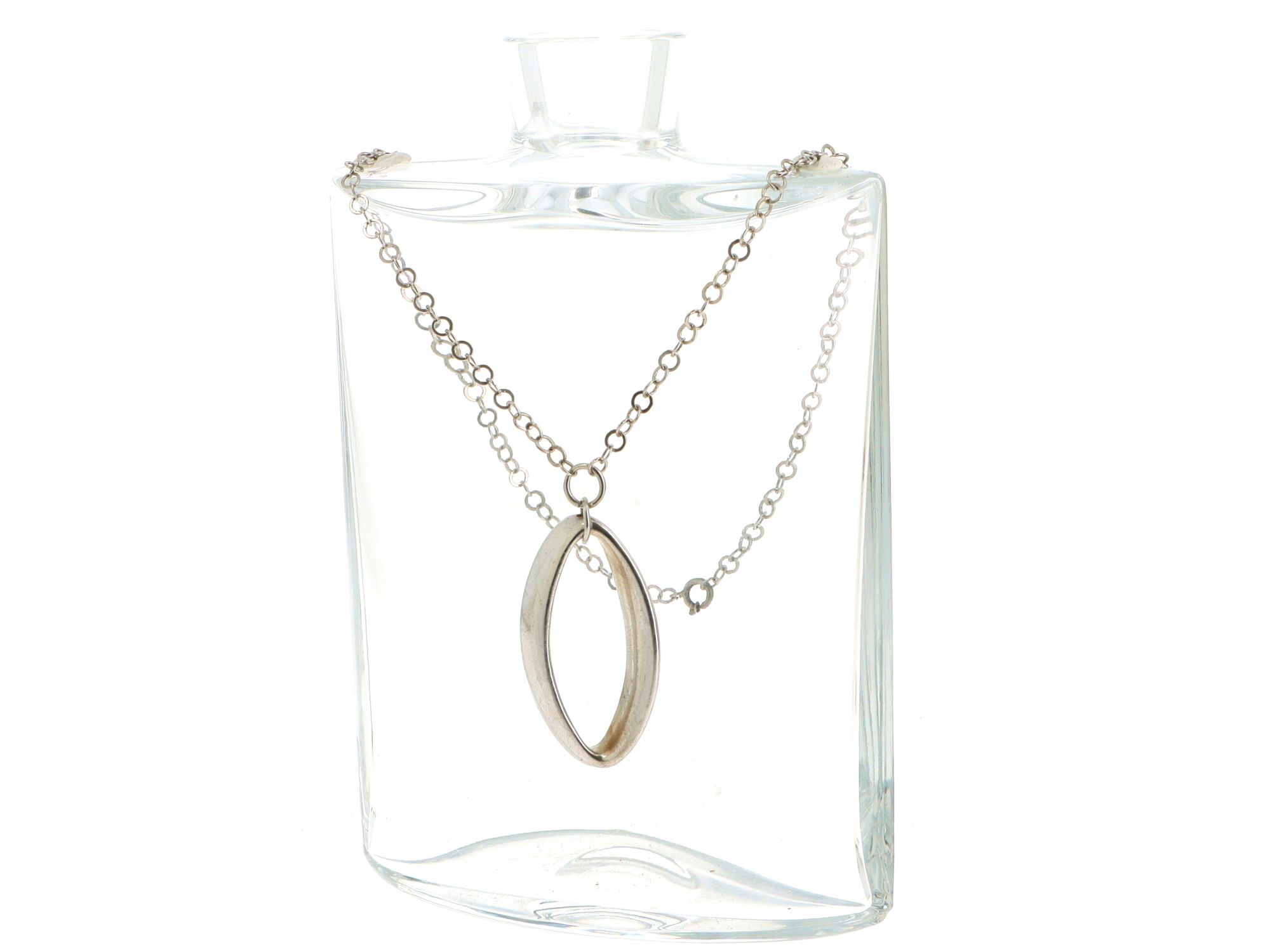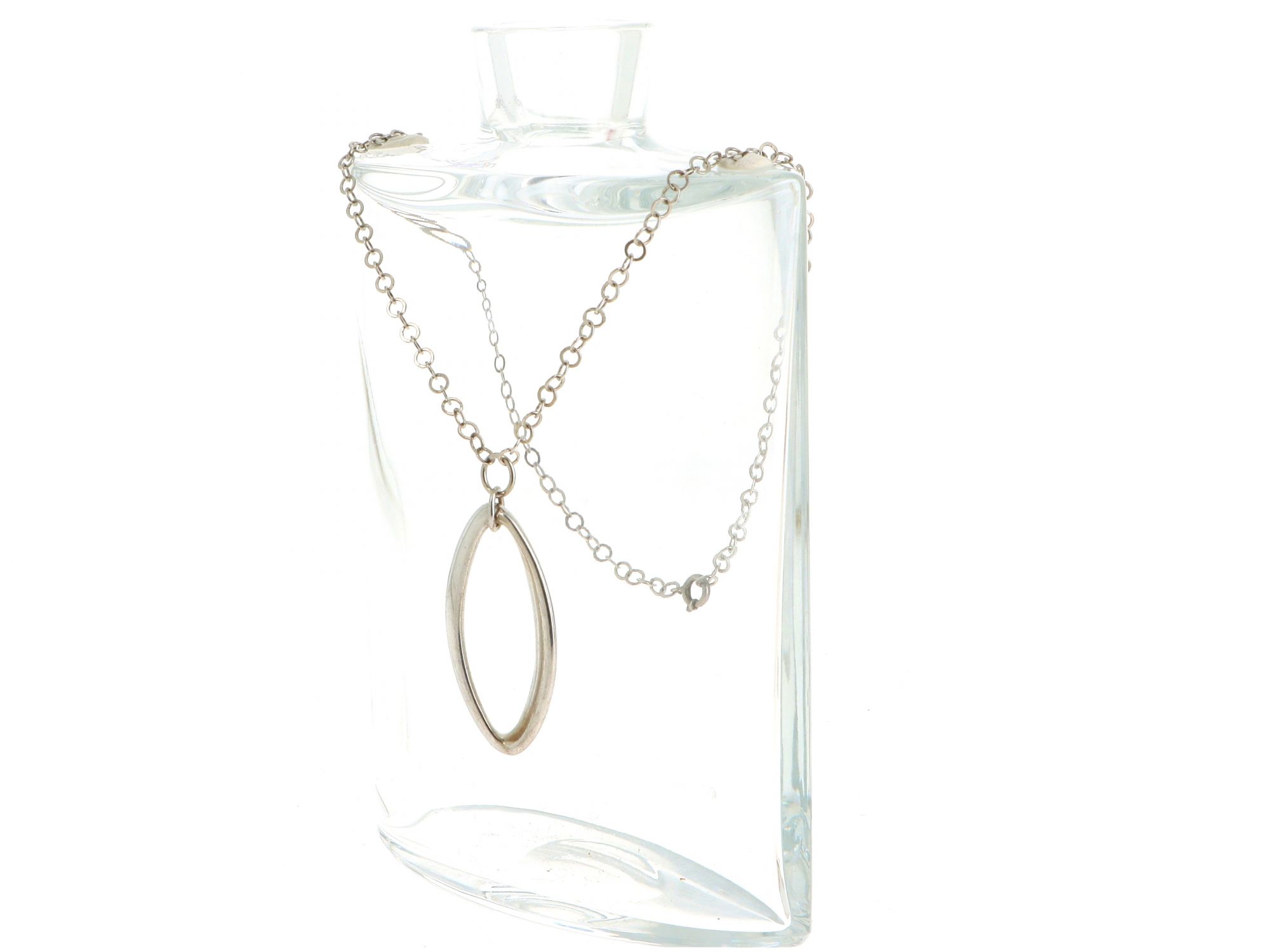 Lote 041 - Fio malha elos com medalha em oval polida, elaborada em PRATA 925. Estado de Conservação: Bom, sinais de uso. Contraste: Cabeça de Águia virada à esquerda 925 (1985-2020 - ao abrigo do Decreto Lei 120/2017, artigo 3.º, alínea y). Medidas (CxL): 43,7*2,9cm. Peso Total: 12,32g.
