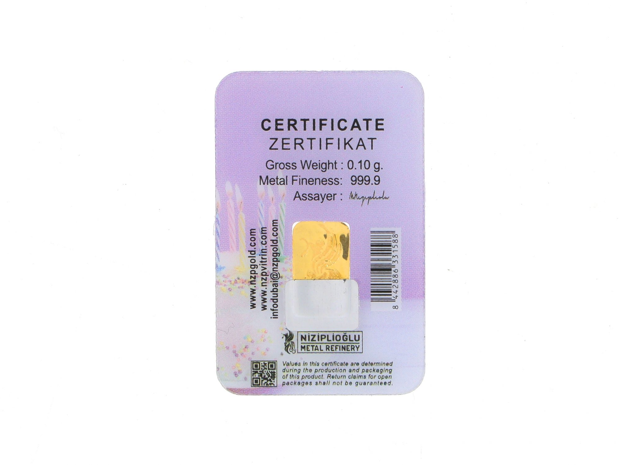 Lingote em OURO Fino 999,9 de 0,1g NZP