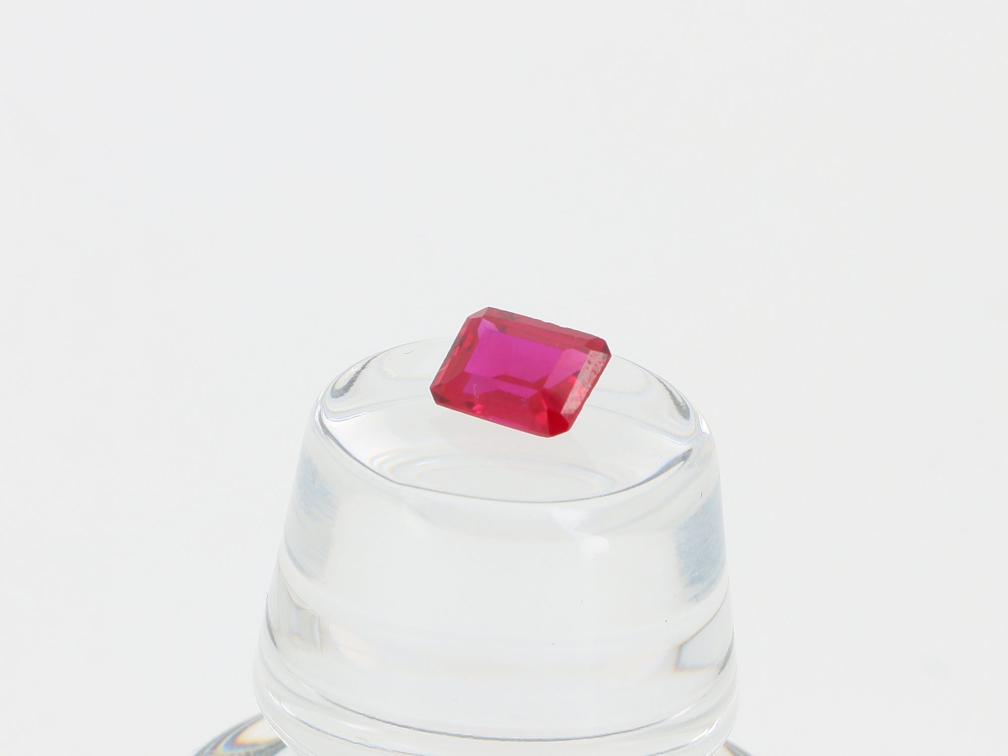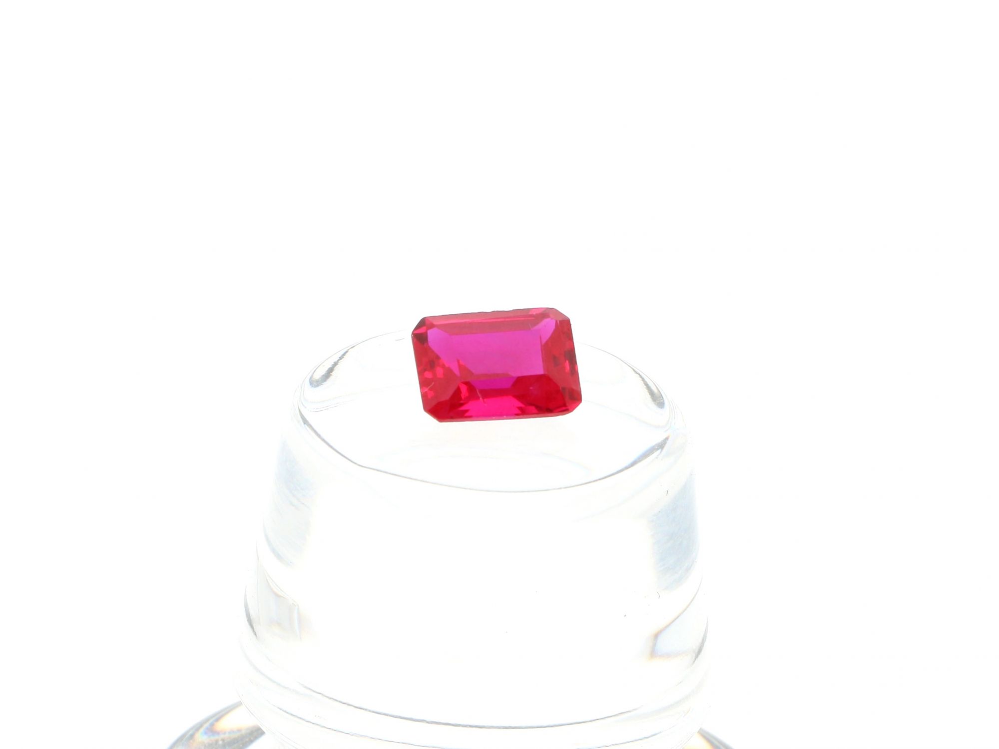 Lote 005 - Pedra RUBI em talhe retangular com 1,75CT, testada por máquina Presidium Duo Tester II. Estado de Conservação: Bom. Medidas (CxL): 0,8*0,6cm. Peso Total: 1,35.