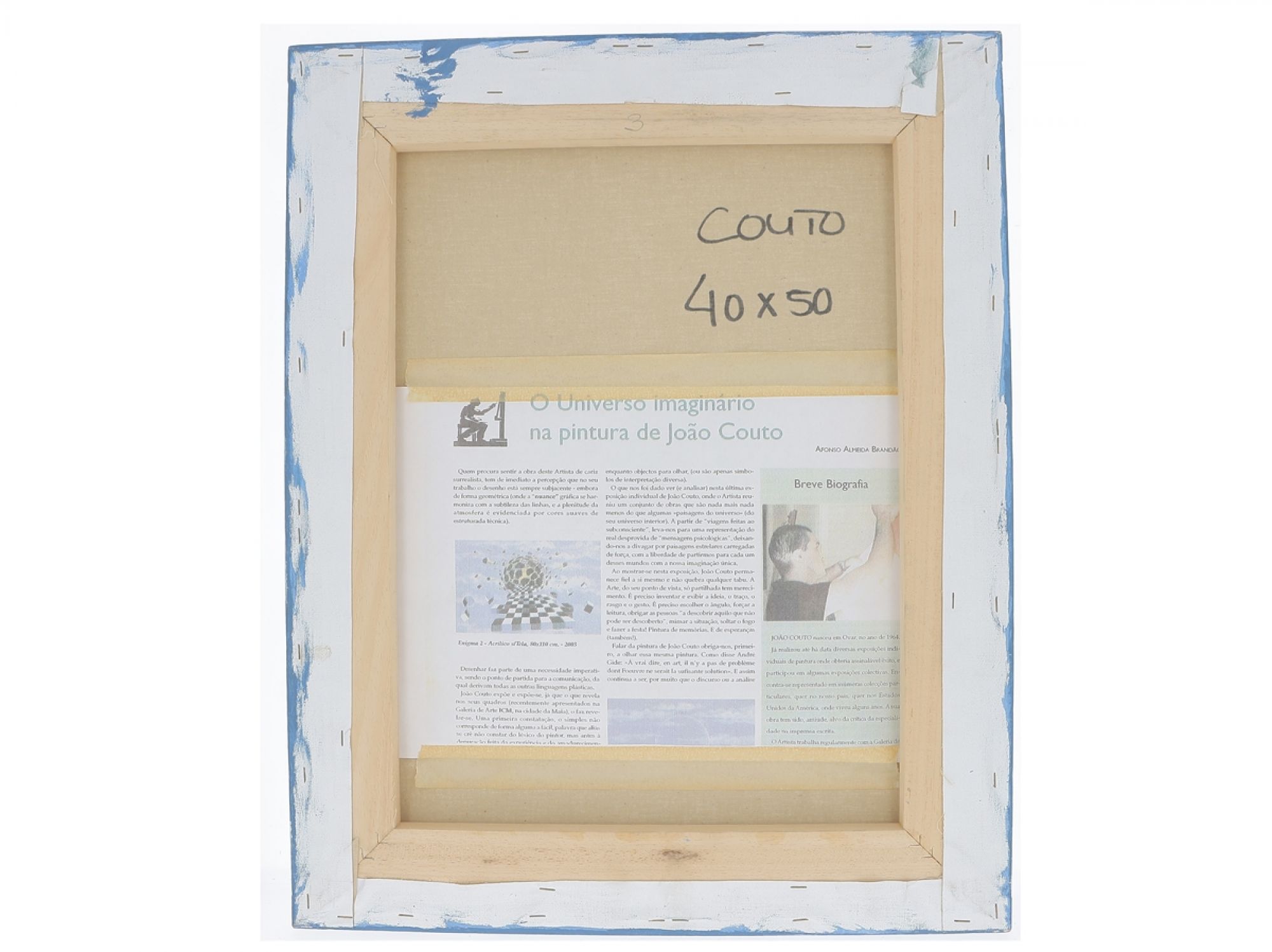 Lote 037 - JOÃO COUTO ( n. 1964 ), Original,Óleo sobre tela, assinado. Não Emoldurado. NOTA: Antologiada: "RAÍZES DO AMANHÃ" " PAG. ARTES PLÁSTICAS". Obra acompanhada de curriculum e cotação de autor. P.V.P em galeria a partir de 500€.Estado de Conservação: Excelente. Medidas (LxA): 40x50cm. Peso Total: 1000g.