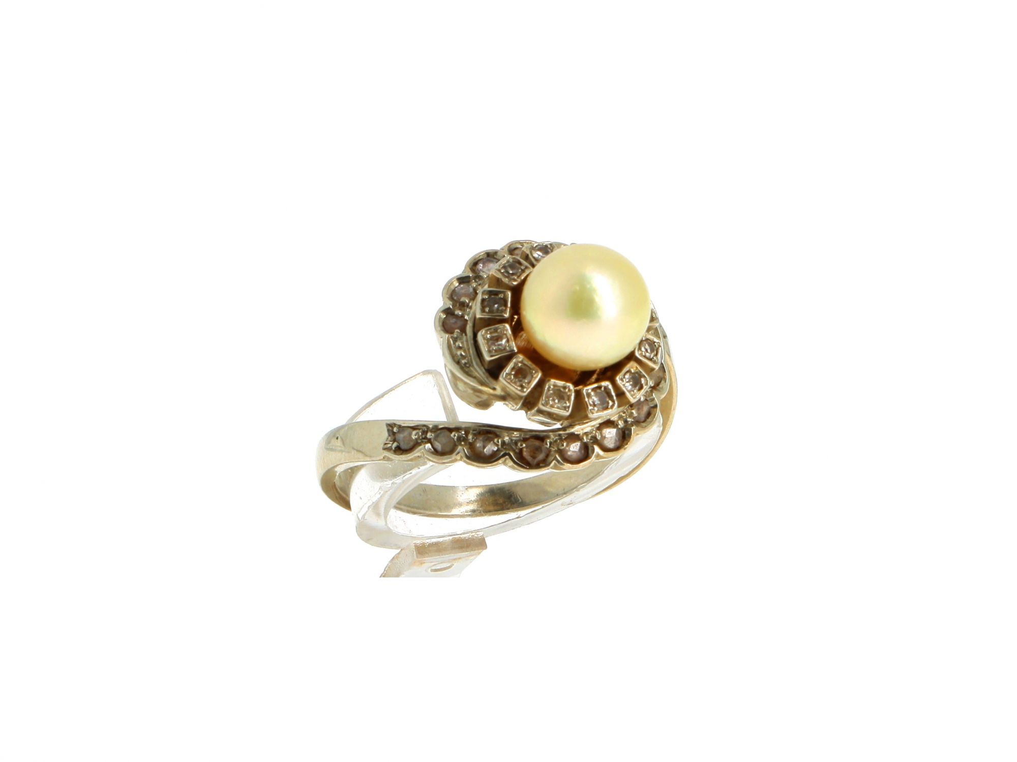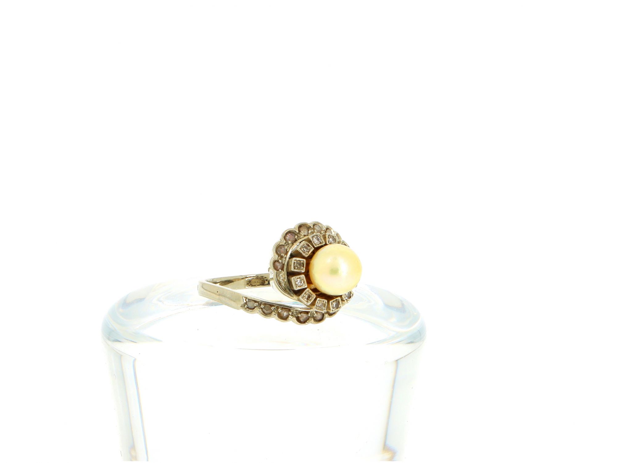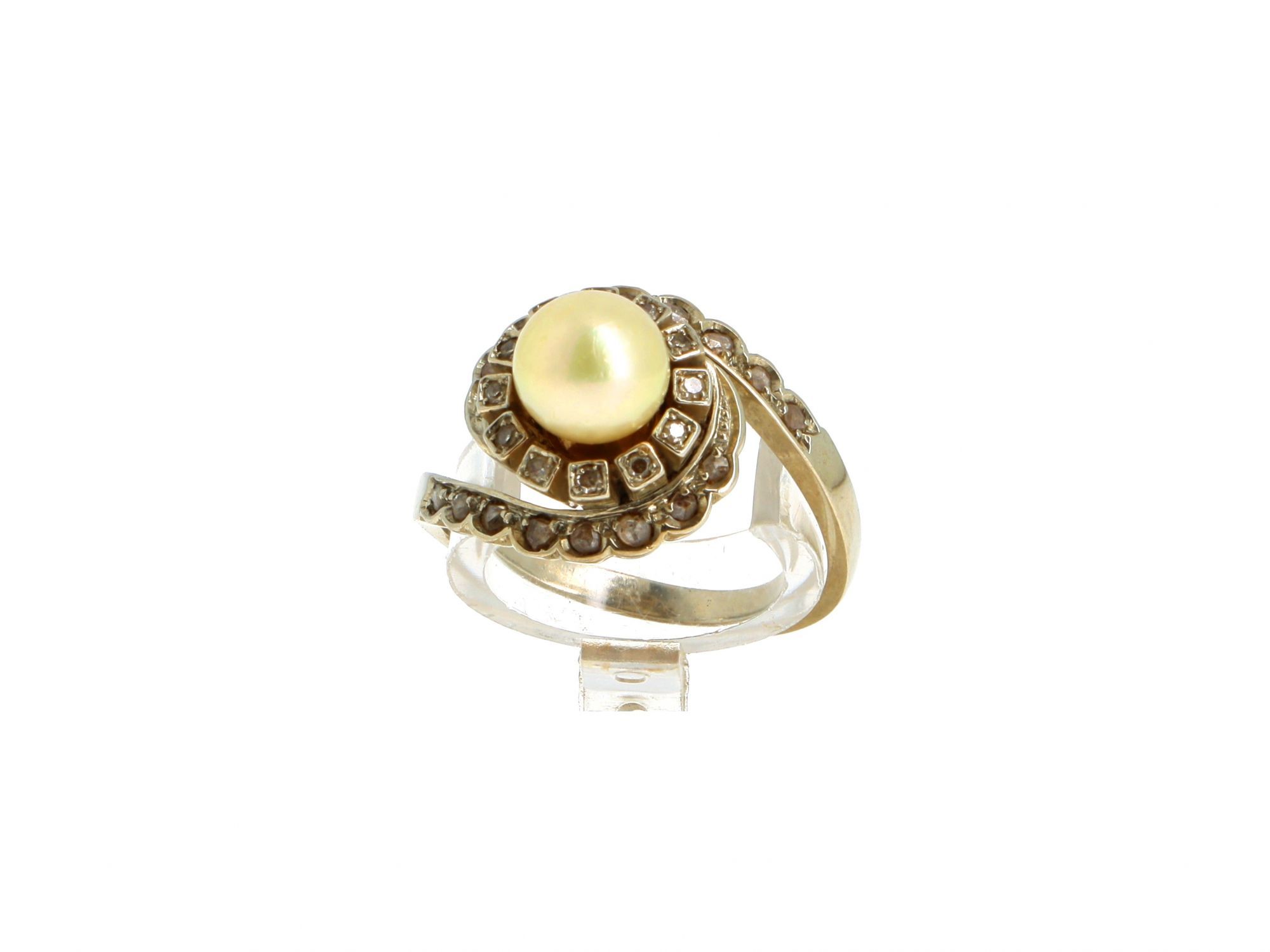 Anel com 28 DIAMANTES e 1 Pérola em OURO 19,2 kl