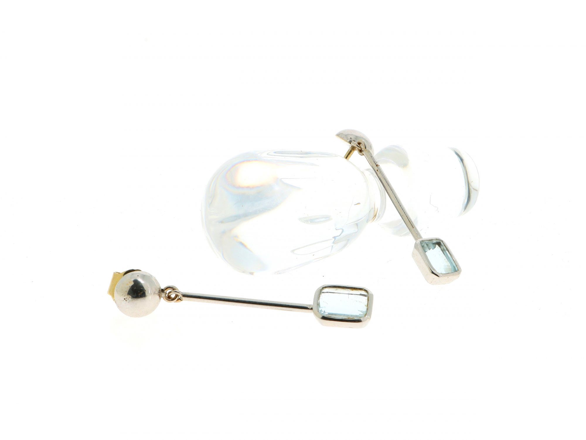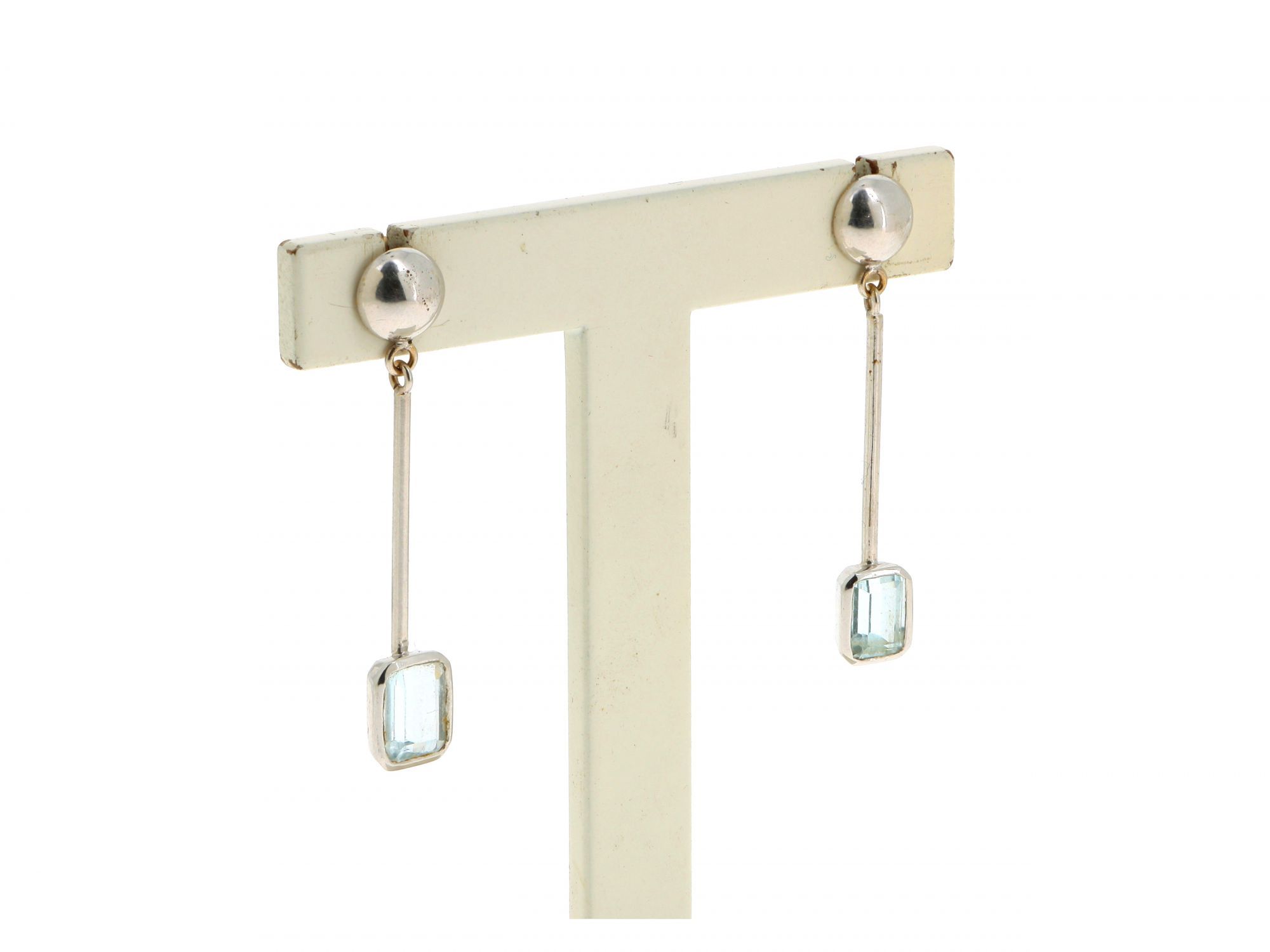 Lote 020 - Brincos em Ouro Branco de pendente com 1 TOPÁZIO cada na parte inferior, elaborado em OURO 19,2 QUILATES. Estado de Conservação: Bom. Contraste: Cabeça de Veado 800 (OURO - 1985-2020, ao abrigo do Decreto Lei 120/2017, artigo 3.º, alínea y). Me
